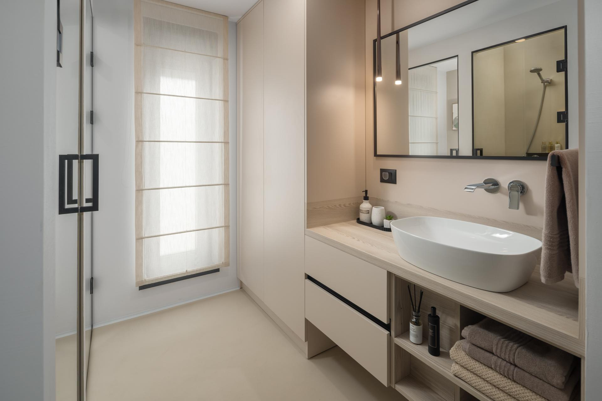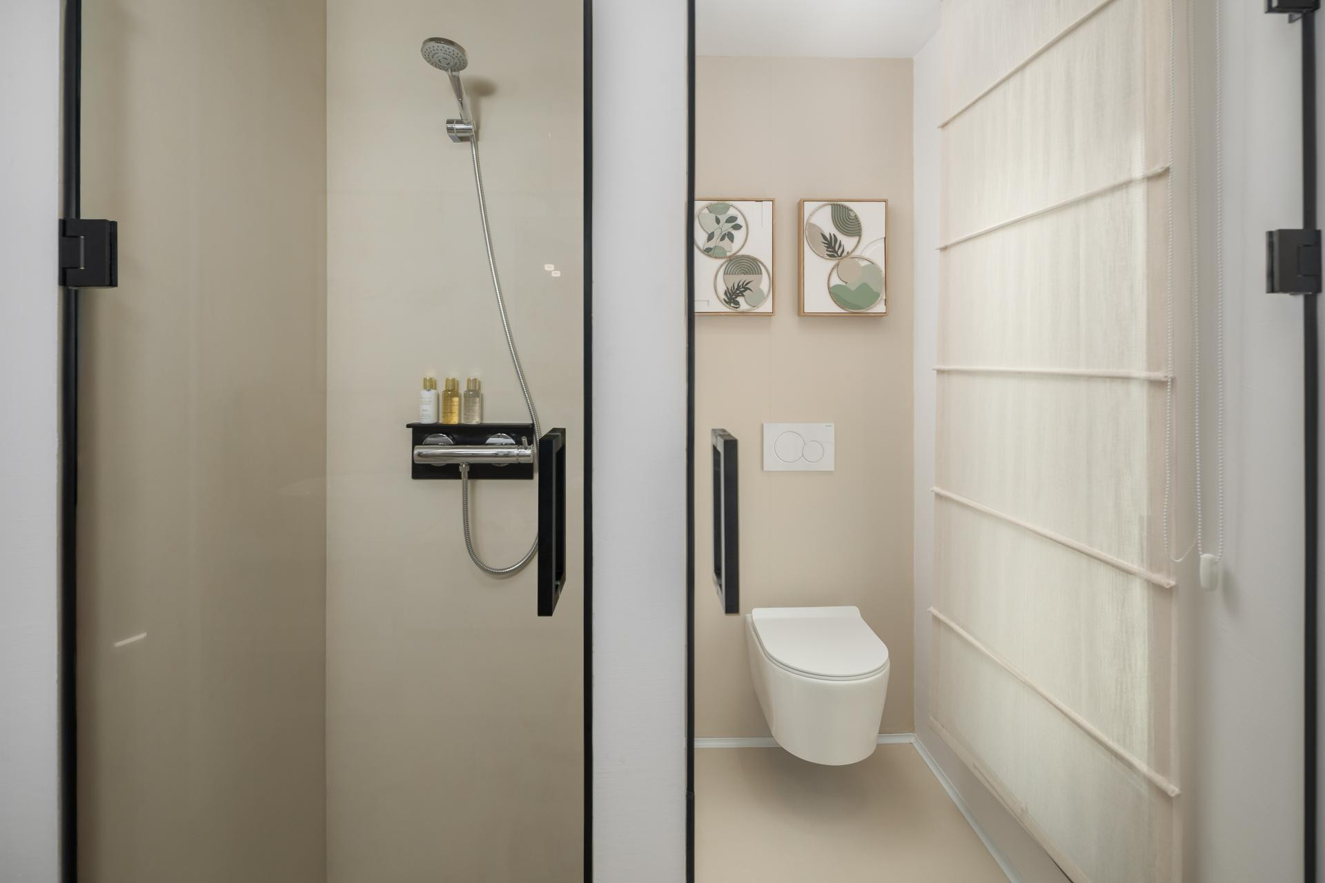 Sanitarni prostor je ostakljen, ali u trenu postaje skriven na dodir zahvaljujući pametnoj rolo zavjesi