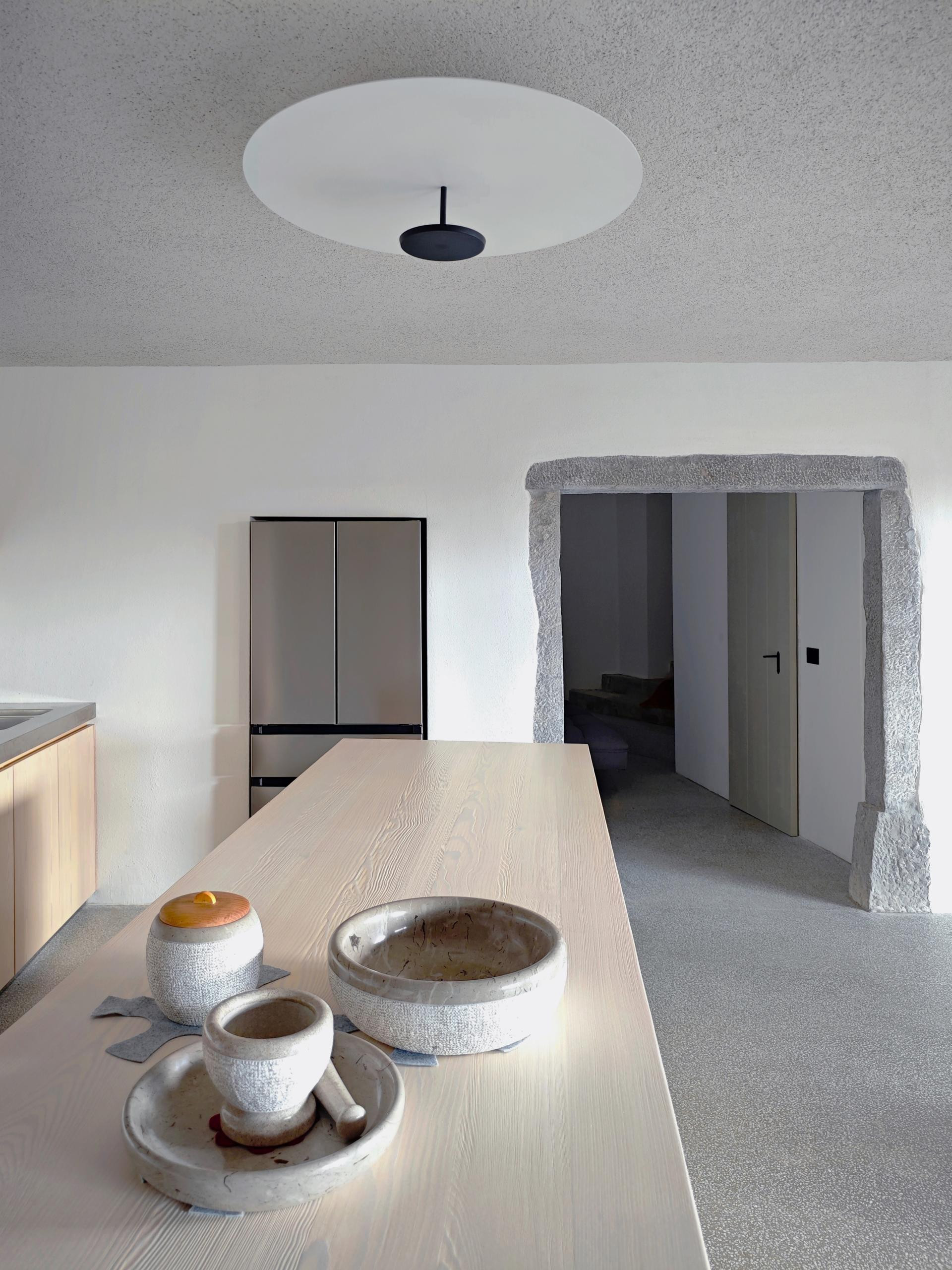 Život u Kući Avber odvija se između izloženih kamenih zidova i pažljivo redefiniranih prostora. Obnova, koju je studio OFIS vodio s naglaskom na materijale, dopušta da zidovi ostanu vidljivi, noseći tragove vremena i korištenja.