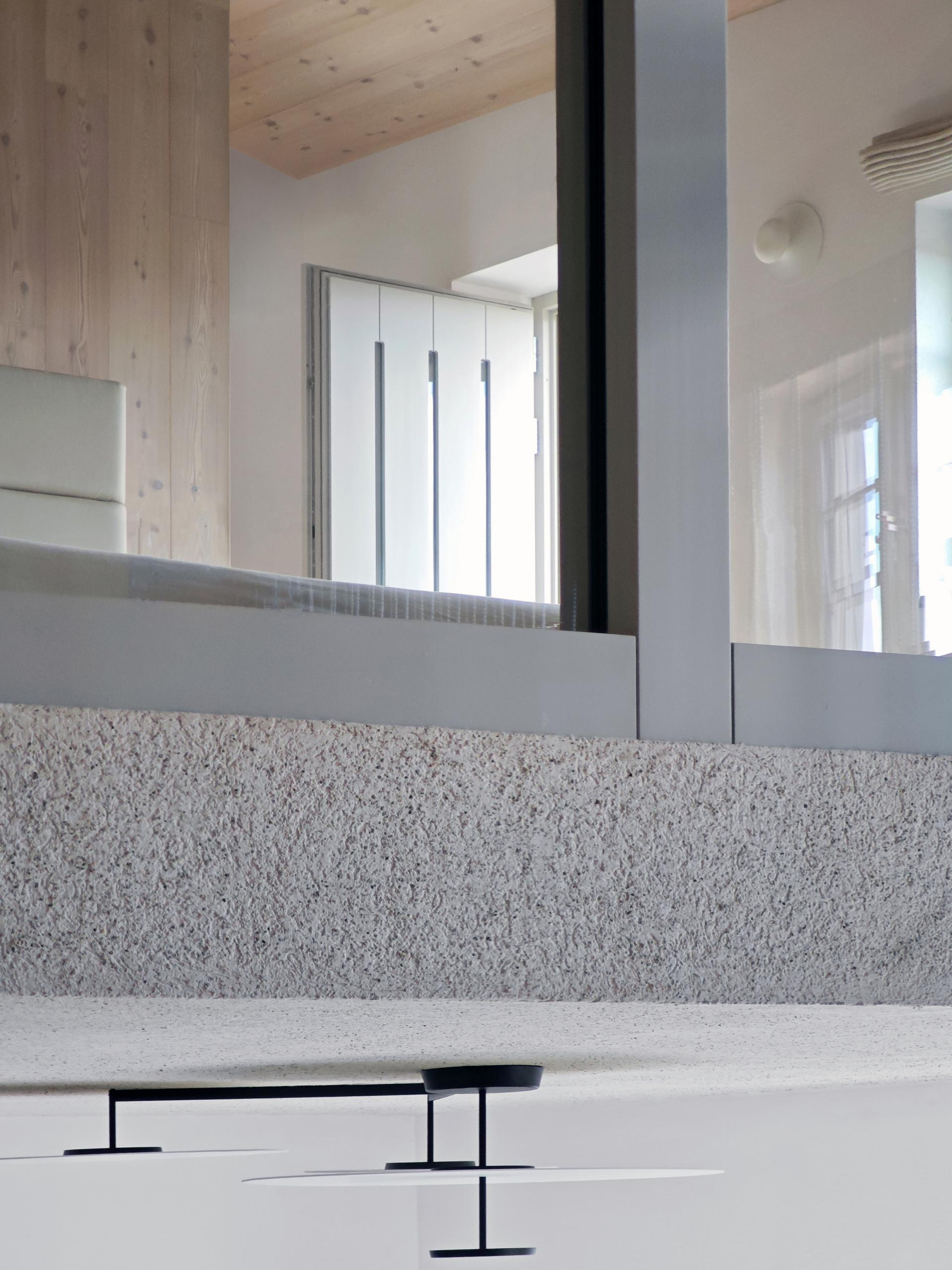 Obnova, koju je studio OFIS vodio s naglaskom na materijale, dopušta da zidovi ostanu vidljivi, noseći tragove vremena i korištenja.