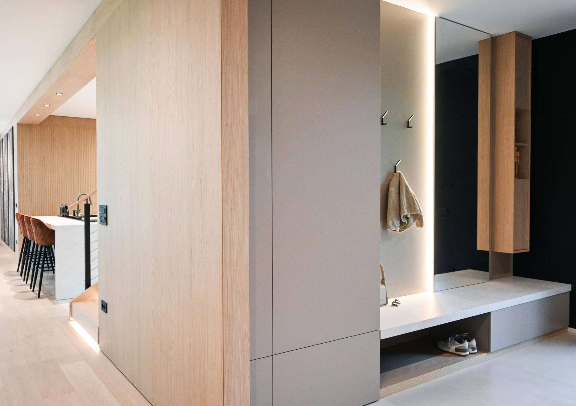 - Želja vlasnika bila je da prostor ostane funkcionalan, ali da se sačuva osjećaj prostranosti. Zato su svi elementi dizajnirani kao prostori za pohranu sa skrivenim policama i ladicama, prilagođeni načinu života i estetskim preferencijama obitelji - objašnjavaju arhitekti i dodaju kako su se cijelo vrijeme fokusirali na stvaranje prostora koji je ugodan za život, lak za održavanje i odiše toplinom i elegancijom bez suvišnih detalja.