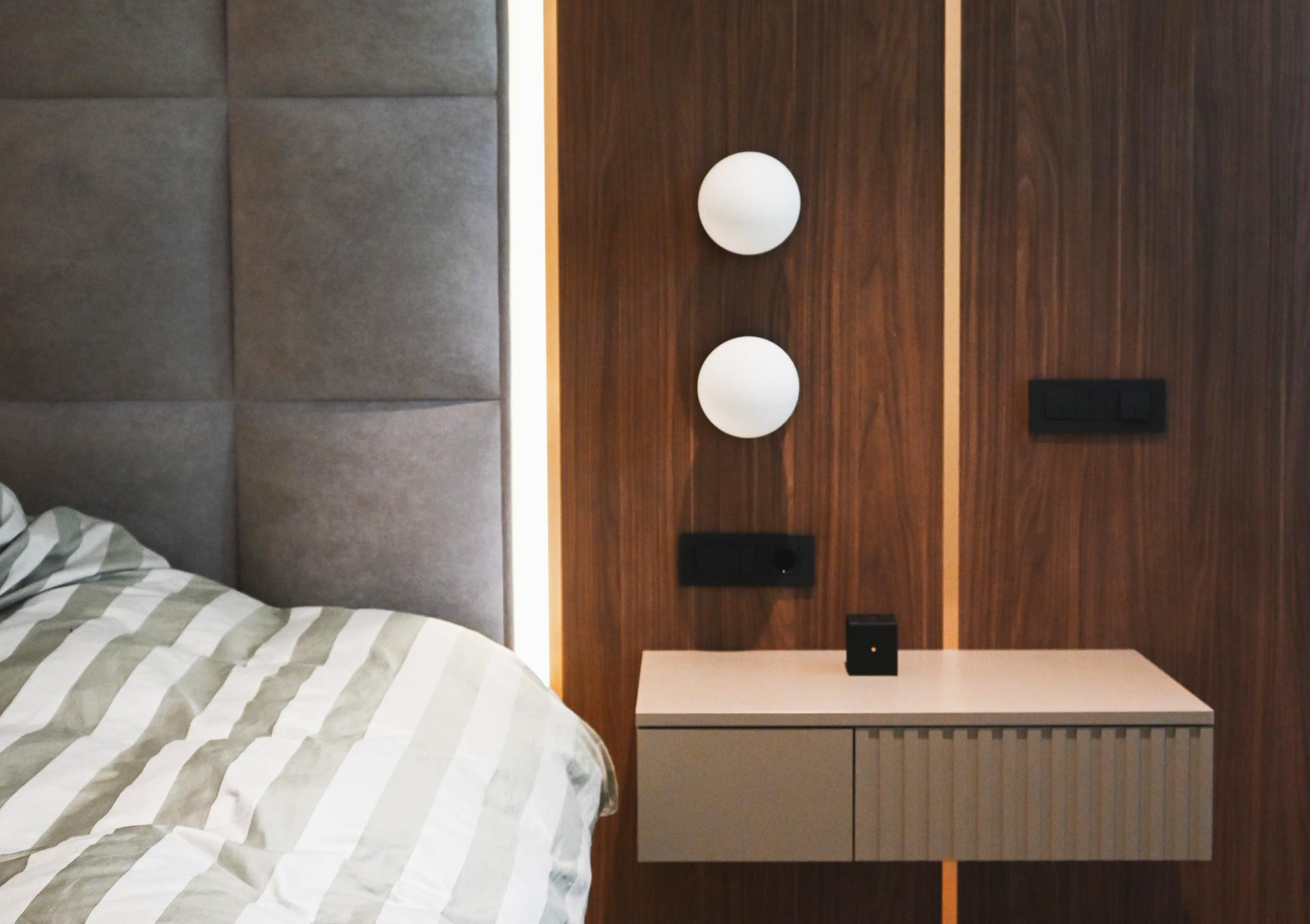 - Riječ je o novogradnji pa nije bilo potrebe za strukturnim prilagodbama. Zatečeno stanje projektirano je u skladu sa željama i potrebama klijenata, bez promjena u strukturi prostora. Umjesto toga, zoniranje je postignuto unutarnjim rješenjima, na primjer gredom koja vizualno odvaja kuhinju od ostatka dnevnog boravka. Također, neki su elementi istaknuti, poput TV zida u dnevnom boravku, koji zauzima dvostruku visinu poda i postaje središnja točka prostora - objašnjavaju arhitekti Isidora i Stefan iz Studija Doda i dodaju kako je vlasnicima bio prioritet funkcionalan dom sa što više prostora za pohranu, ali istovremeno jednostavan za svakodnevno održavanje. Estetski su željeli čist dizajn suptilnih, mirnih tonova. Arhitekti naglašavaju da su posebno vodili računa o spavaćem bloku jer je vlasnicima bilo važno postići atmosferu hotelske sobe, a tamnije boje i ambijentalna LED rasvjeta pridonose intimnijoj i opuštajućoj atmosferi.