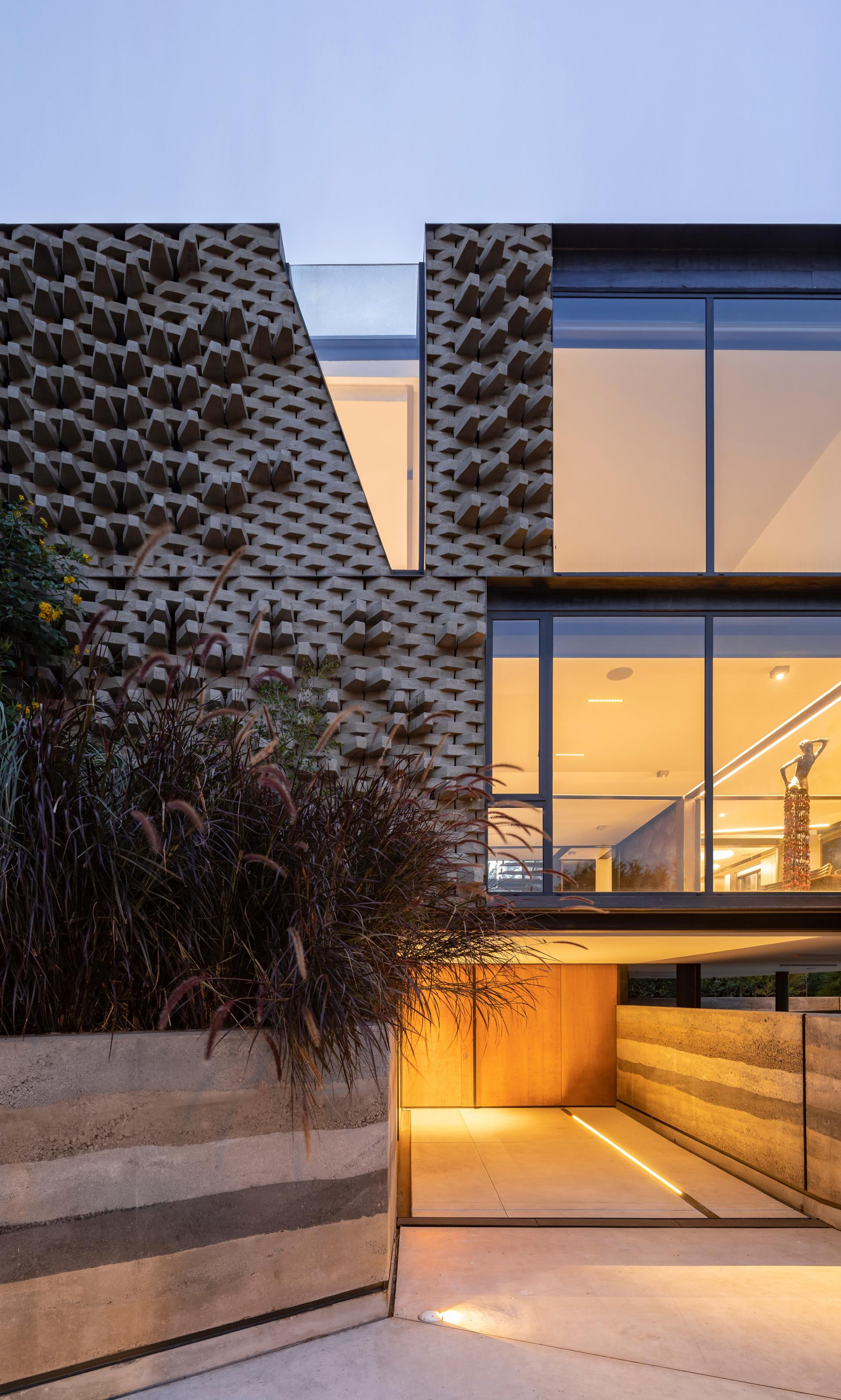 Porozna i prozračna fasada pomaže u regulaciji temperature, dok način na koji filtrira svjetlost stvara dinamične sjene tijekom dana i nježno svjetlo noću.