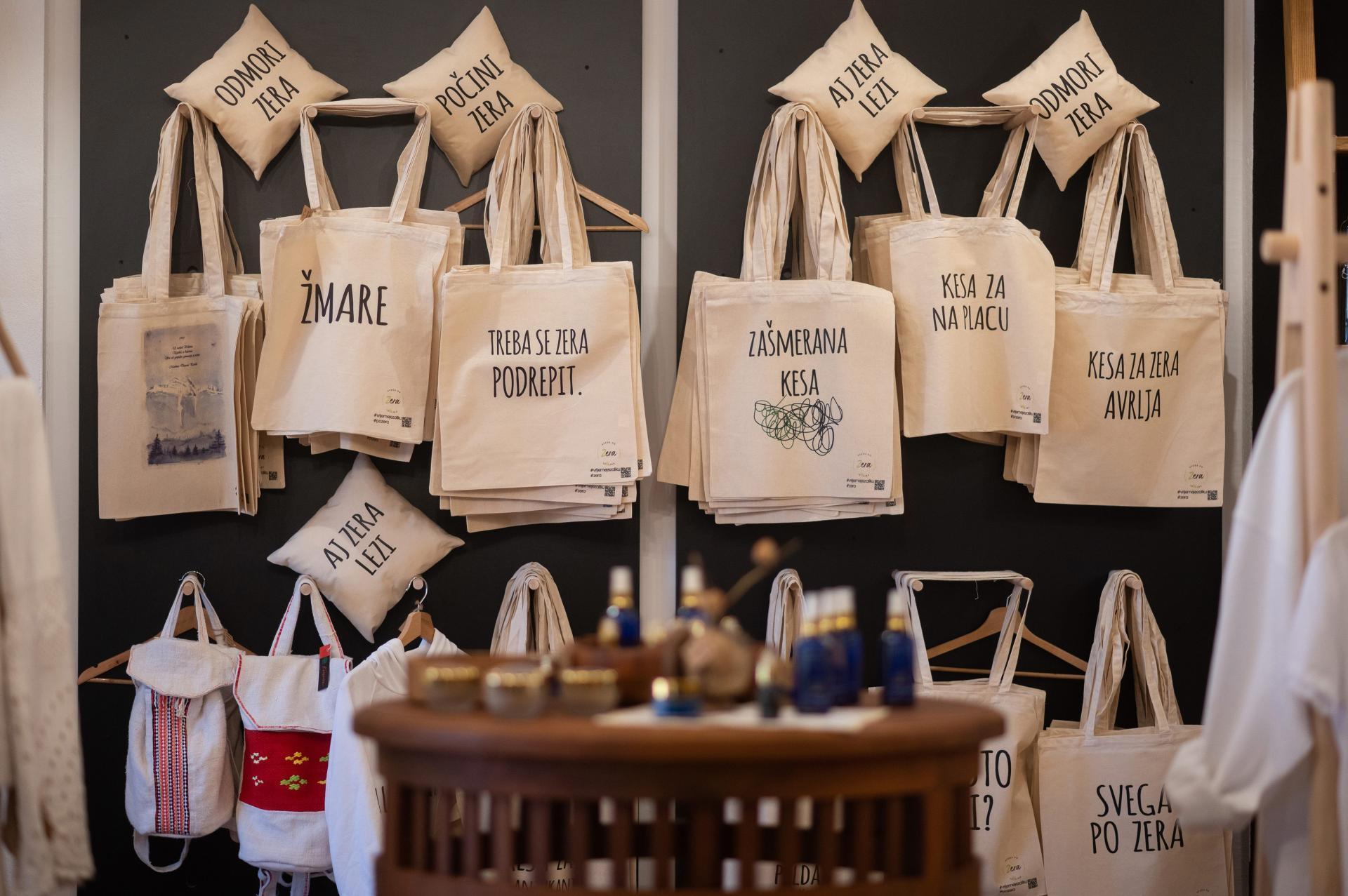 "Zera" promiče i ekologiju jer u trgovini nema plastike, celofana i najlonskih vrećica. No, zato se mogu naći originalni proizvodi s duhovitim natpisima koje osmišljava Antonija. Na platnenim torbama, na primjer, piše "'esi što jaki?" što znači "Kako si?", zatim "Rači li se štogod" i "Nebi nedilja", na ukrasnim jastučićima "Lončić za zera varenike", "Volim te do Velebita i nazad", a na majicama "Maja za balanzukanje", što bi značilo besciljno hodanje u kojem se istinski uživa.