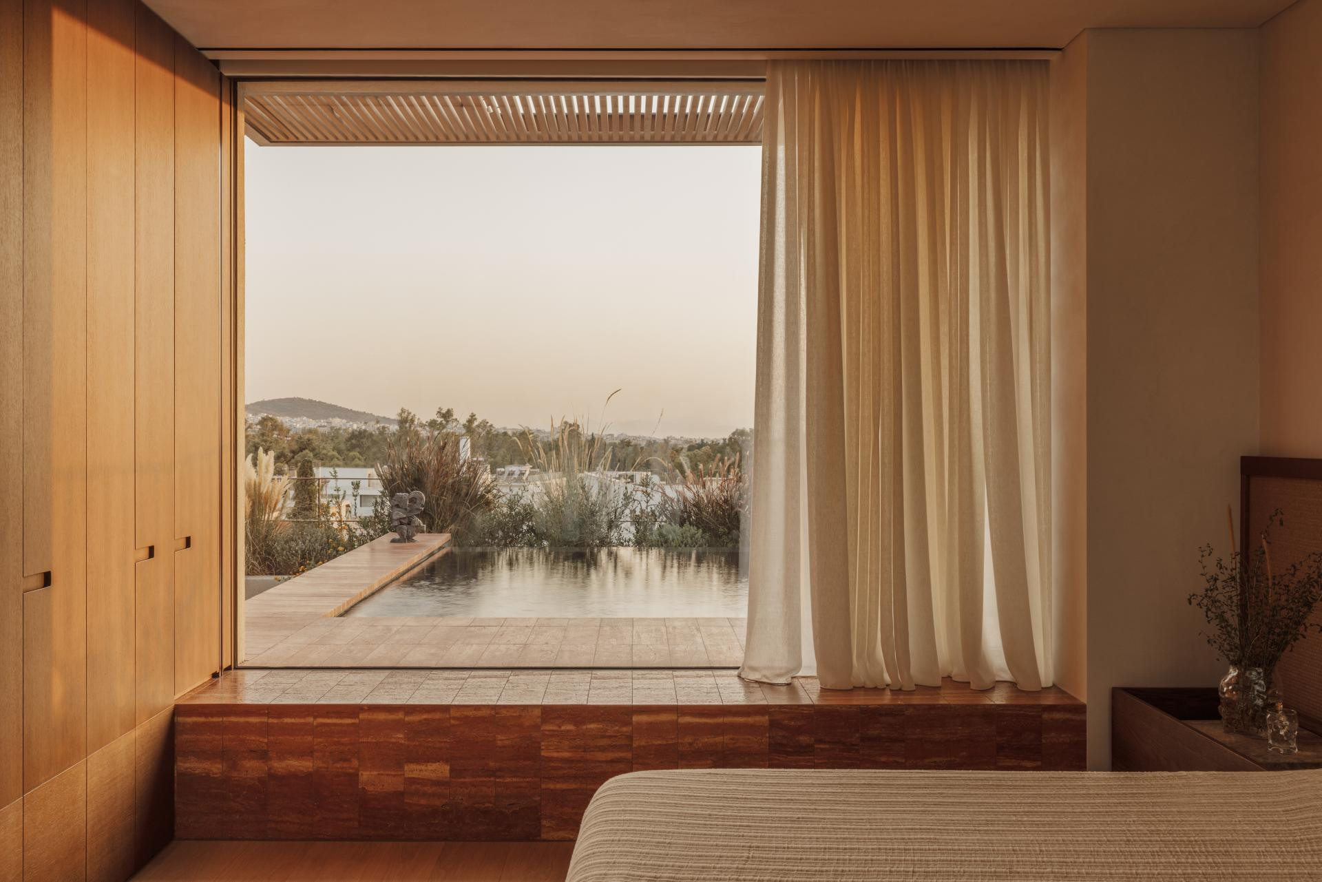 Na gornjoj etaži smješten je intimni roditeljski prostor, glavna spavaća soba s vlastitom terasom, bazenom, deckom i čak polovičnim košarkaškim igralištem. Pogledi su pažljivo uokvireni tako da ističu zelenilo i vizure grada. Atmosfera apelira na osjećaj privatnog utočišta, gotovo poput obiteljske kuće izdvojene visoko iznad grada.