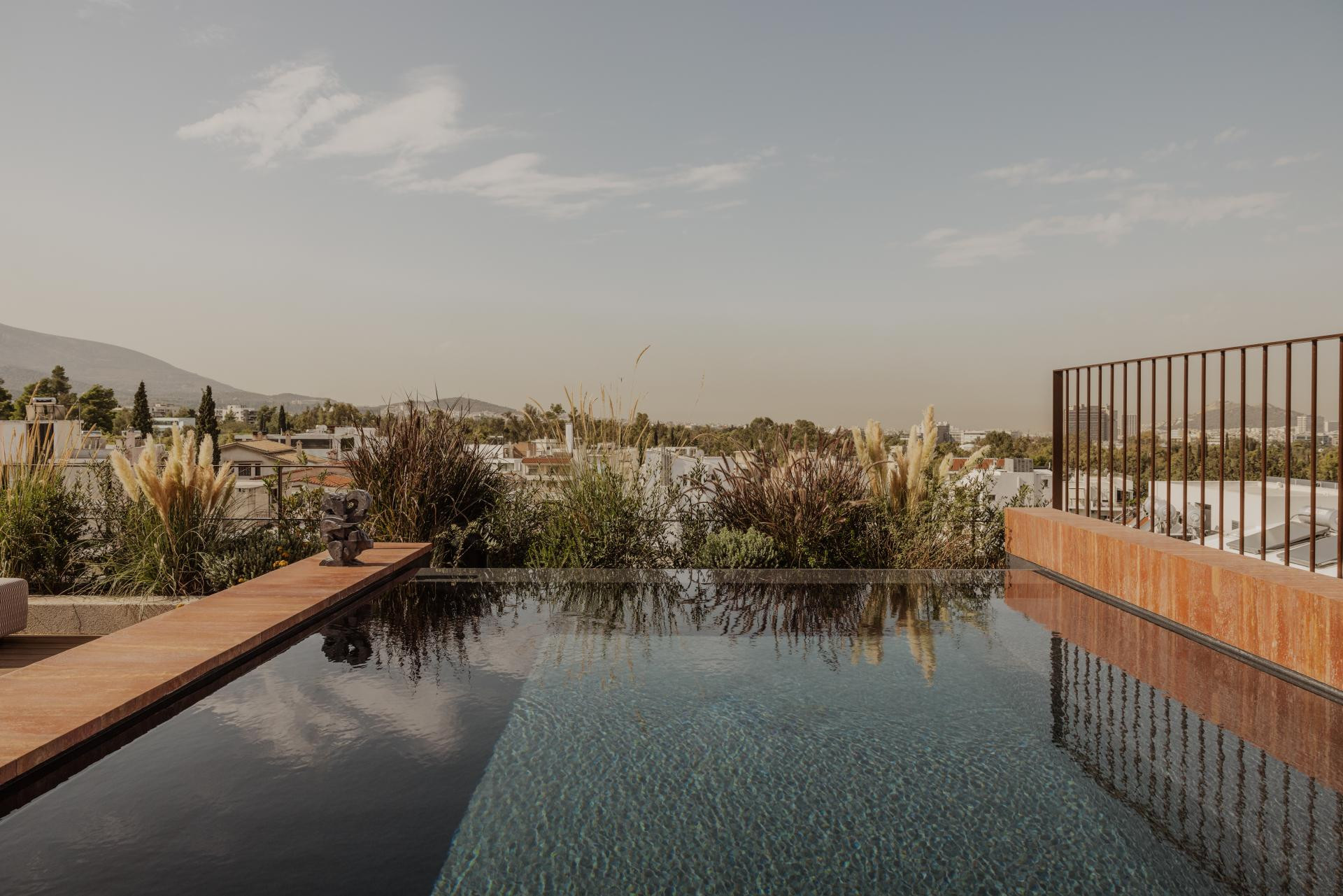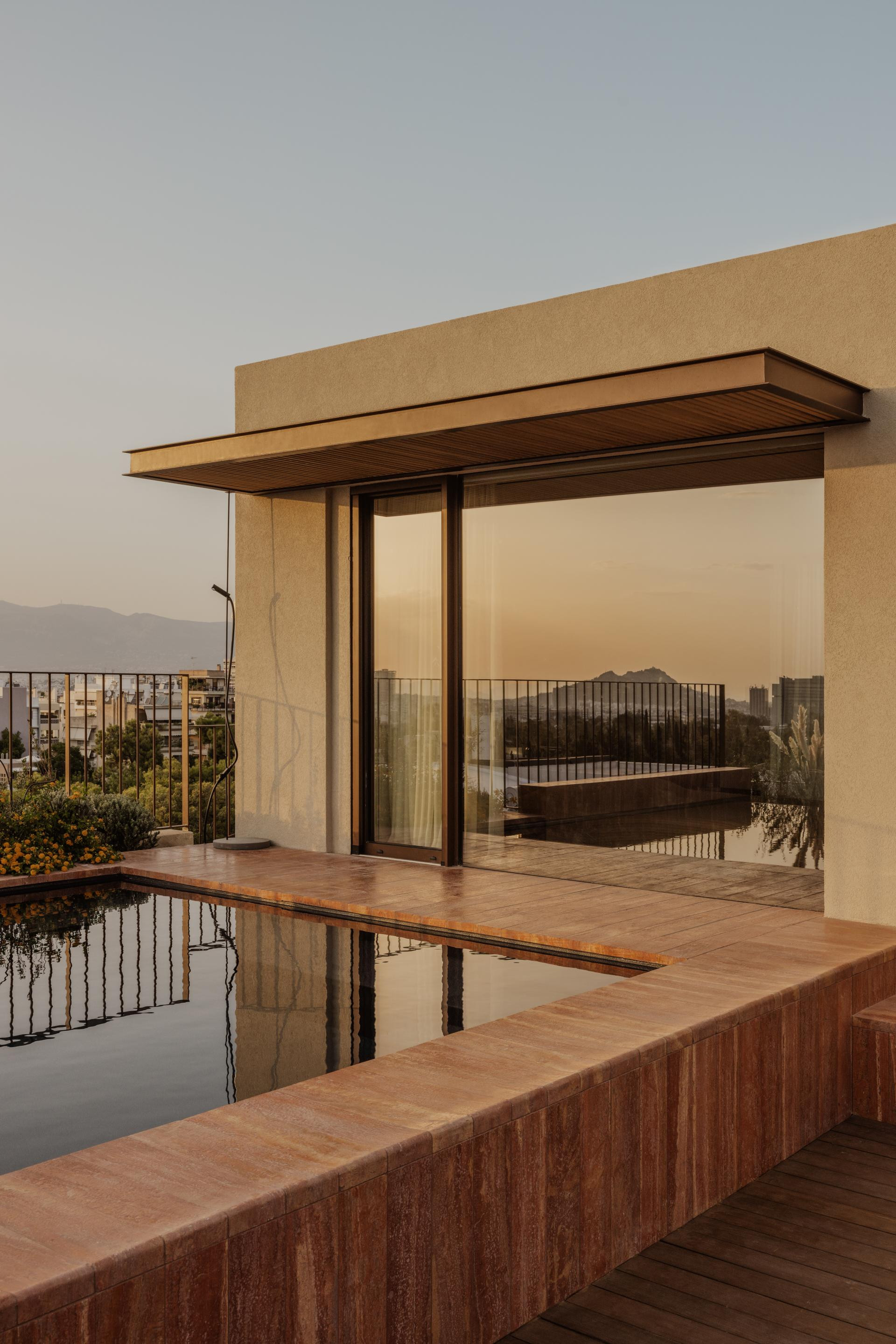 Potraga za idealnim domom započela je željom da ostanu u Papagouu, četvrti gdje već žive i koja je poznata po miru, zelenilu i ugodnom obiteljskom okruženju. Rješenje su pronašli u južno orijentiranoj uglovnoj parceli koja se prema stražnjoj strani otvara prema šumi. U suradnji s lokalnim izvođačem Thekla Construction osmislili su boutique stambeni projekt s pet stanova, pri čemu su za sebe rezervirali dvije gornje etaže. Tako su istovremeno kreirali arhitekturu cijele zgrade i detaljne interijer dizajn smjernice za svoj dom.