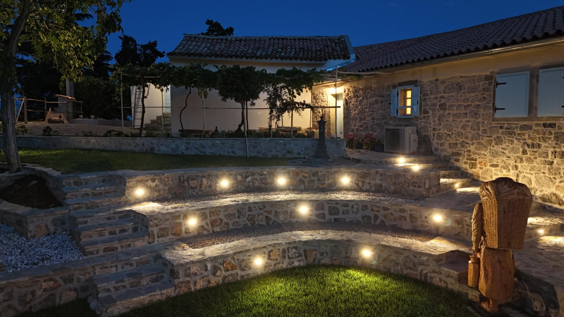 Vrt je oaza mediteranskog bilja - lavanda, ružmarin, masline. Na mjestu nekadašnjeg kokošinjca danas je ljetna kuhinja i prostor za druženja s pogledom na more i planine. U hladu stare brajde nalazi se kameni stol, a samo nekoliko koraka dalje amfiteatar - dom domaćeg jezika i tradicije.