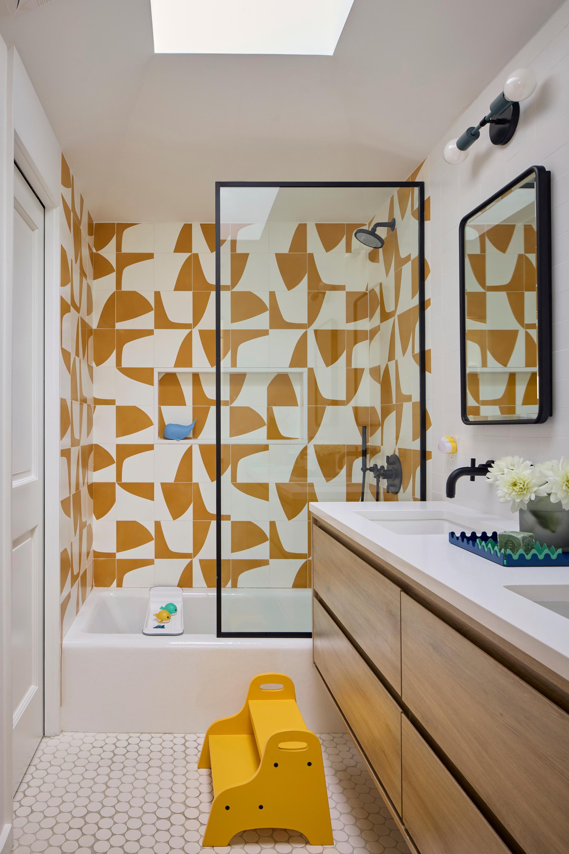 Ulazni prostor dočekuje vas s pločicama u plavo-bijelom uzorku i funkcionalnim elementima po mjeri – klupa i ormarić savršeni su za dječja kolica i svakodnevne potrebe obitelji u pokretu. Prvi kat ostaje otvoren kako bi roditelji lakše mogli nadzirati djecu, dok pažljivo dizajniran namještaj unosi red i eleganciju.