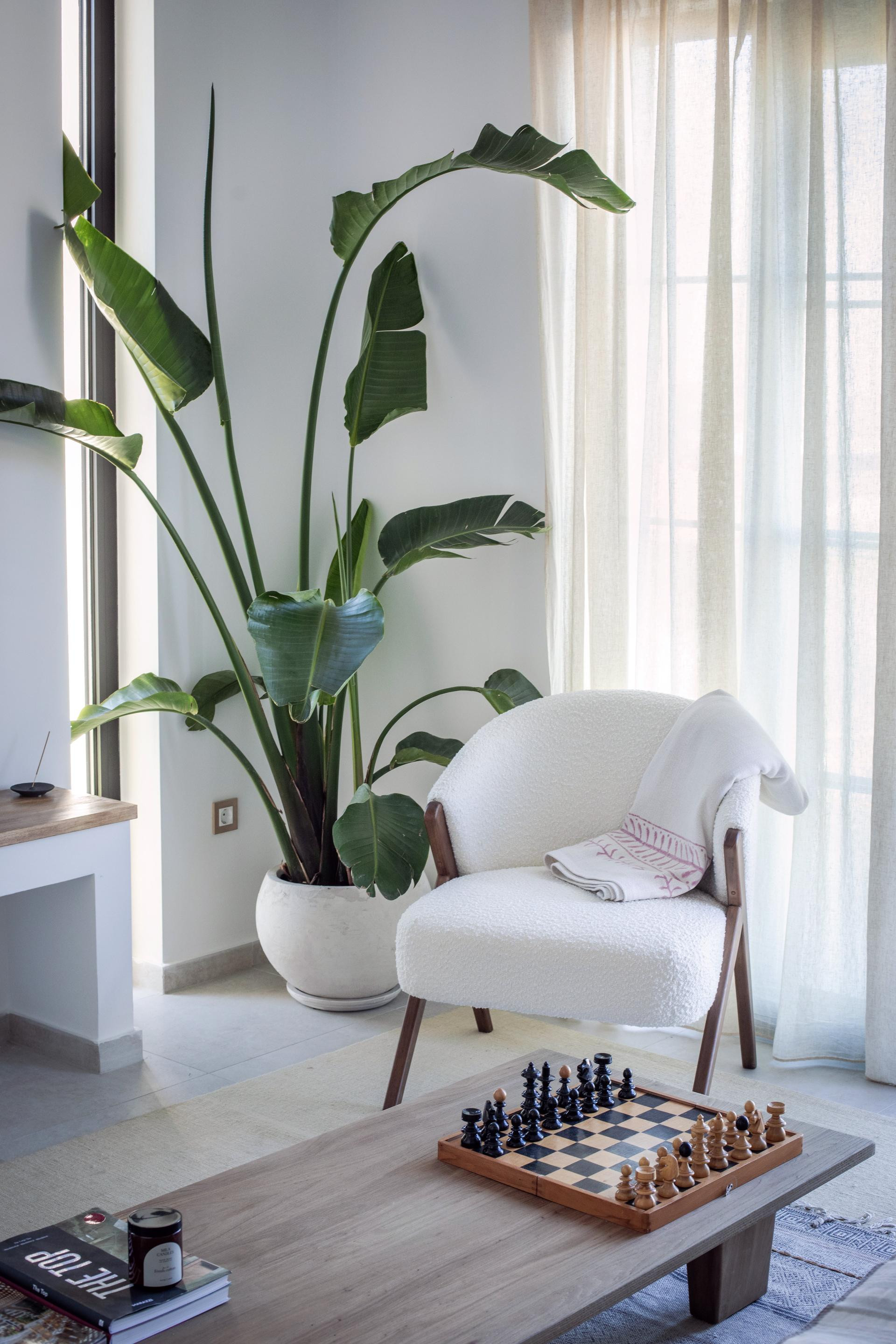 A pomno su birali i materijale, među kojima prevladavaju oni prirodni - drvo, kamen, lan i pamuk, čije neutralne tonove jasno vizualno presijecaju oni tamni, kao što su prozorski i okviri kliznih stijena, klavir i stolci. Kad je riječ o prirodnim motivima, dnevnim boravkom dominira velika strelicija jer su željeli unijeti opuštajuću atmosferu zelenila i u zatvoreni dio prostora.