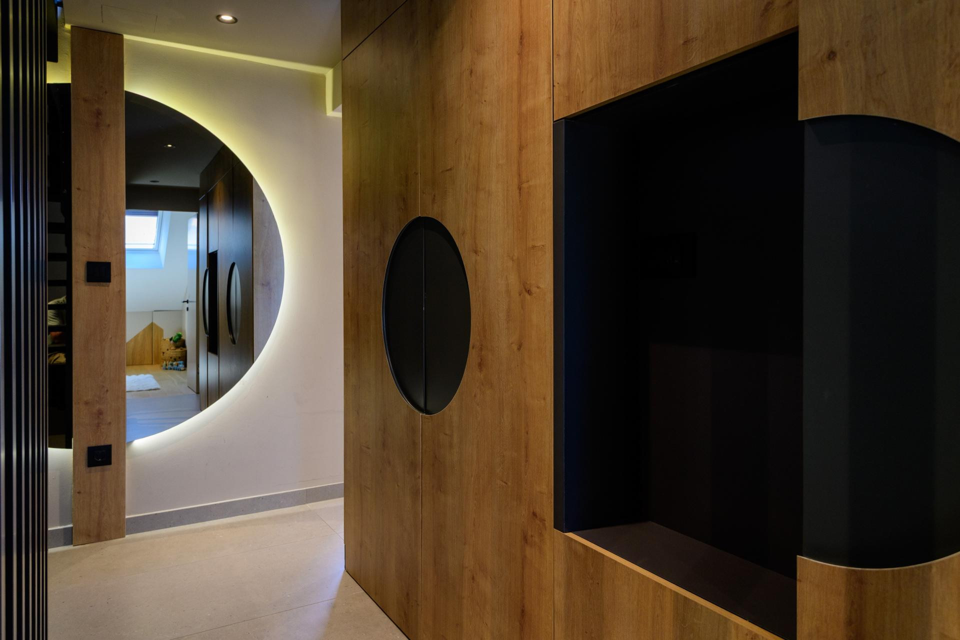 - U jednoj od kupaonica vrata su izvedena kao dio niza ugradbenih ormara u hodniku, čime se očuvao kontinuitet dizajna i postigao skriveni efekt - otkriva arhitektica kako su rješavali pojedinačne prostorne izazove.