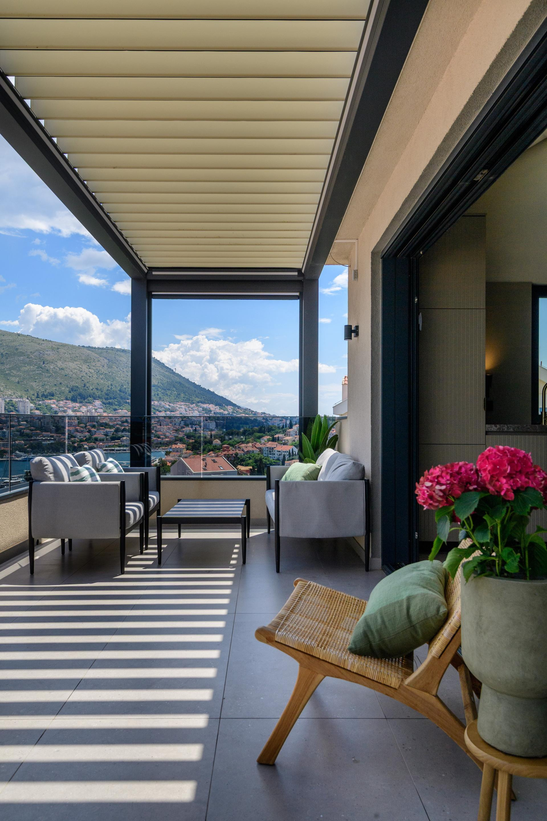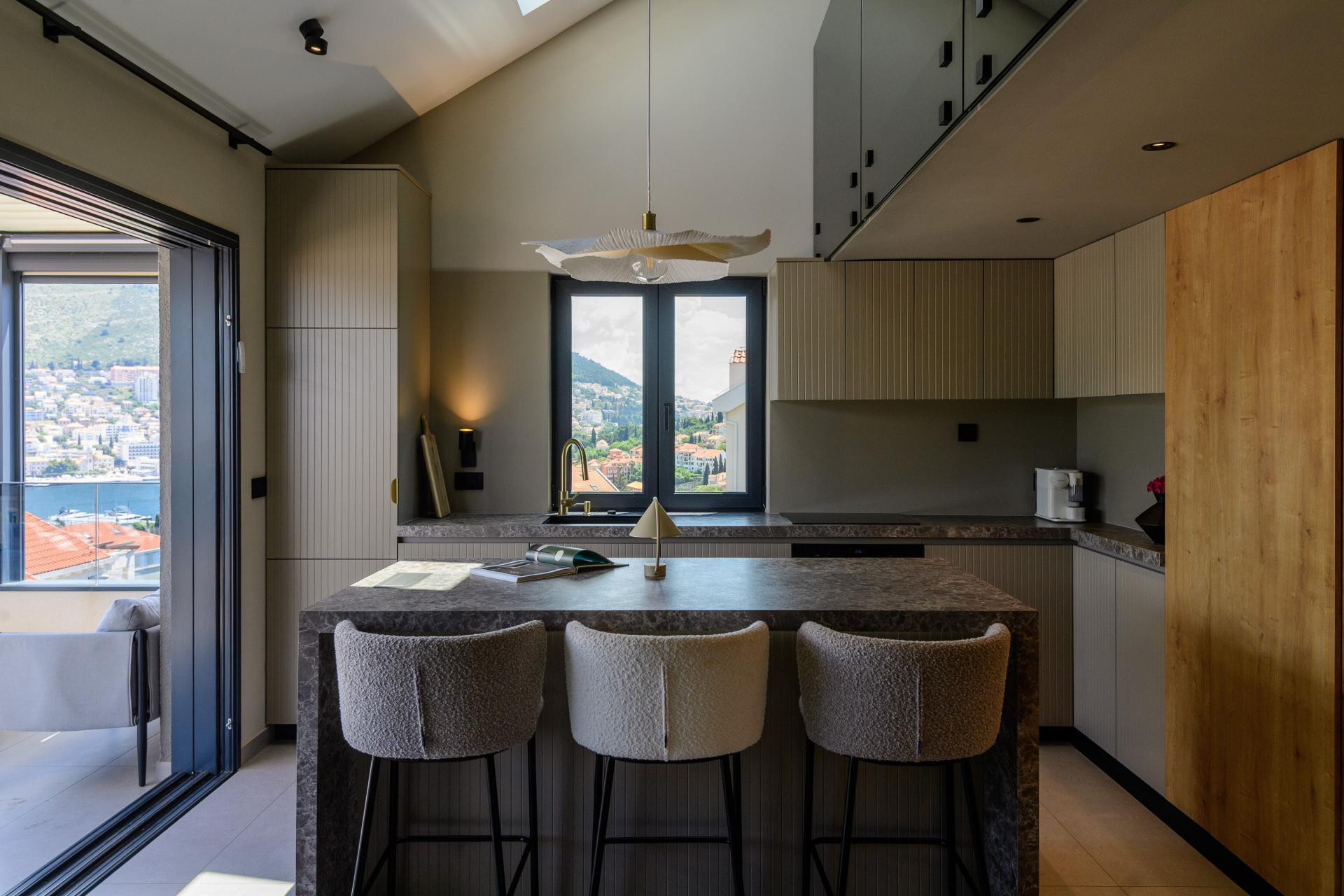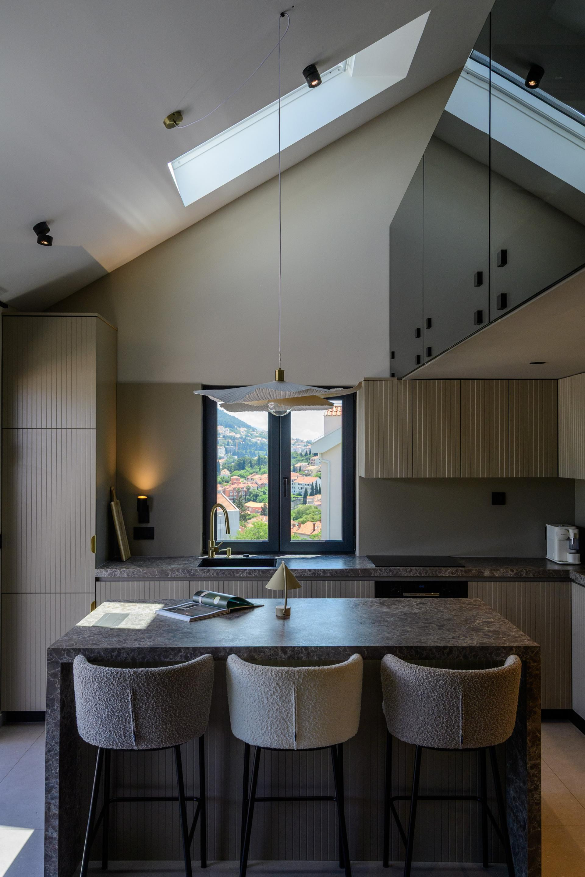 Na sunčanim padinama Babina kuka, dubrovačkog naselja poznatog po panoramskim pogledima i na more i na planinu Srđ, smjestio se stan B. Tako je nazvan ovaj nedavno uređeni obiteljski dom u potkrovlju novijeg objekta. Projekt je potpisala arhitektica Mihaela Goluža Besjedica iz dubrovačkog studija MI Arhitekti, a rezultat je interijer koji spaja suvremeni dizajn, funkcionalnost i duh mediteranskog življenja.