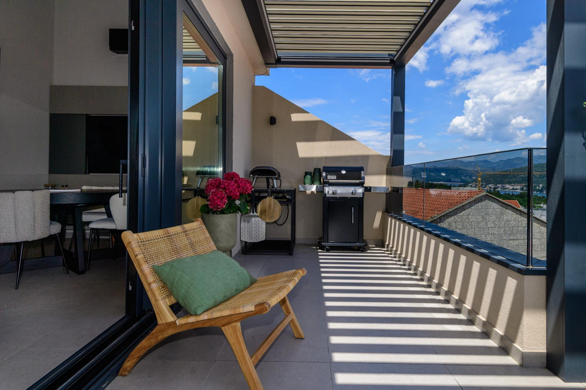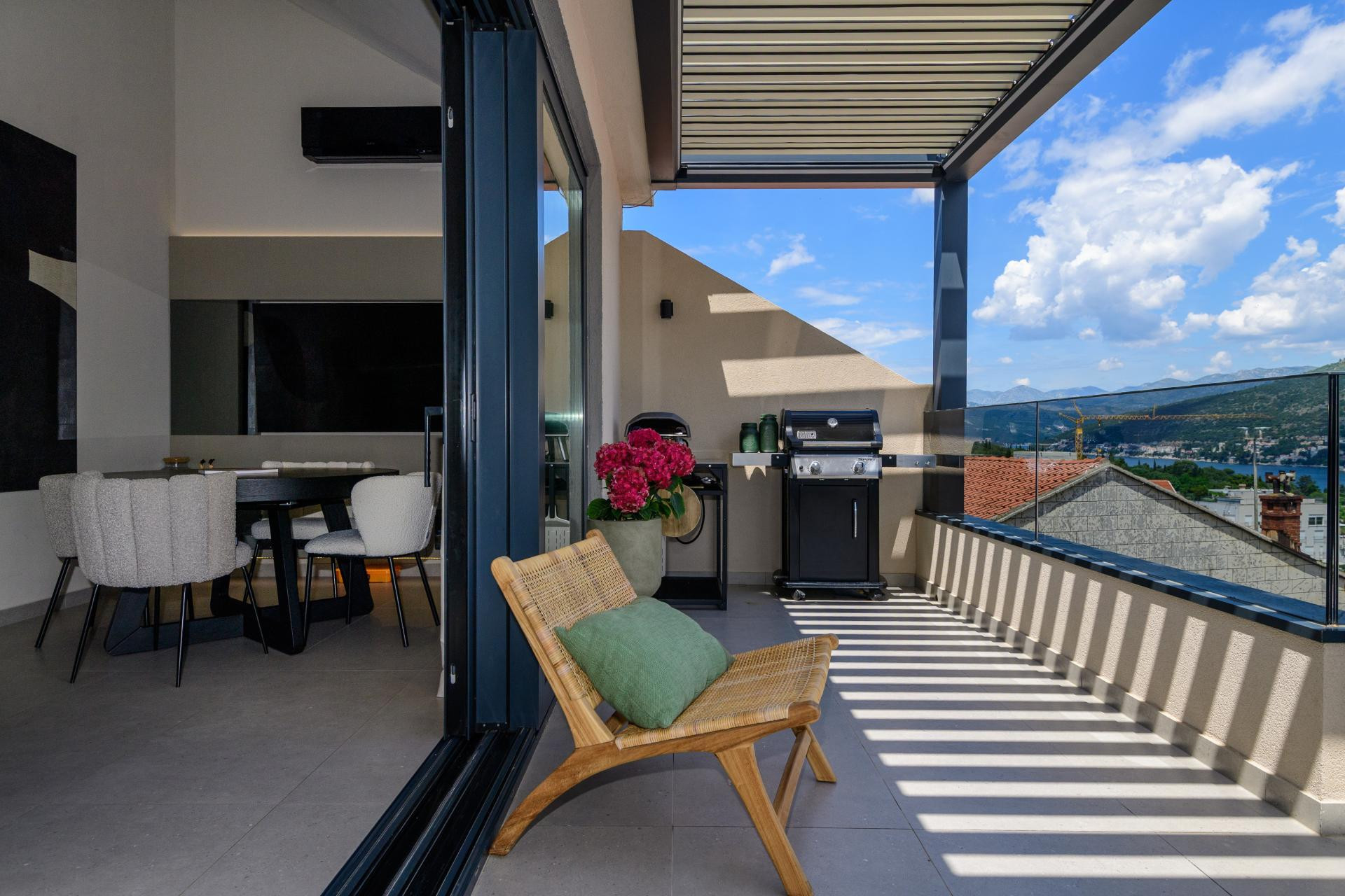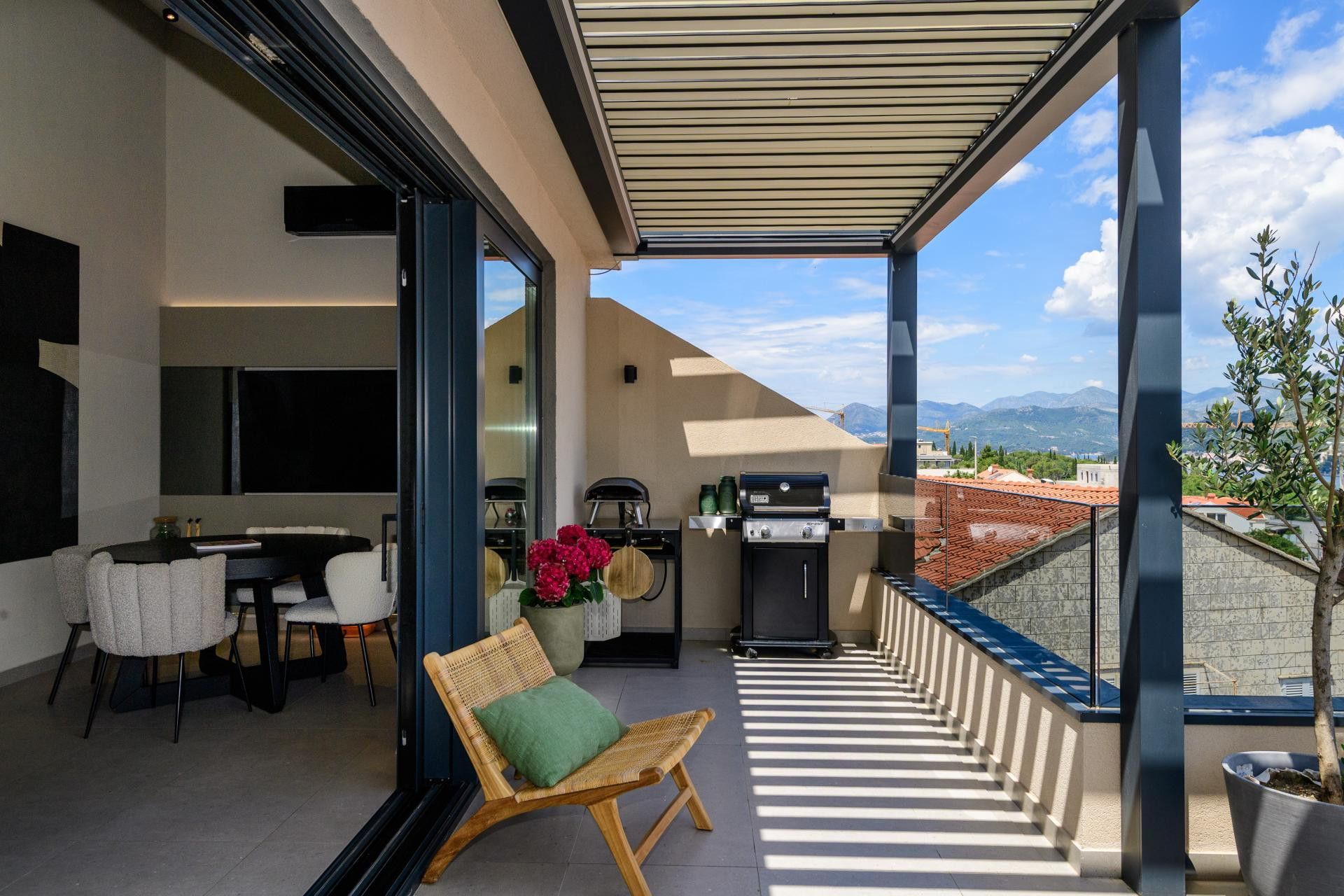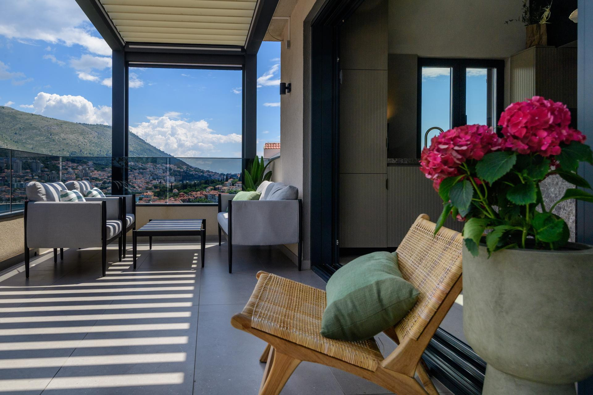 Na sunčanim padinama Babina kuka, dubrovačkog naselja poznatog po panoramskim pogledima i na more i na planinu Srđ, smjestio se stan B. Tako je nazvan ovaj nedavno uređeni obiteljski dom u potkrovlju novijeg objekta. Projekt je potpisala arhitektica Mihaela Goluža Besjedica iz dubrovačkog studija MI Arhitekti, a rezultat je interijer koji spaja suvremeni dizajn, funkcionalnost i duh mediteranskog življenja.