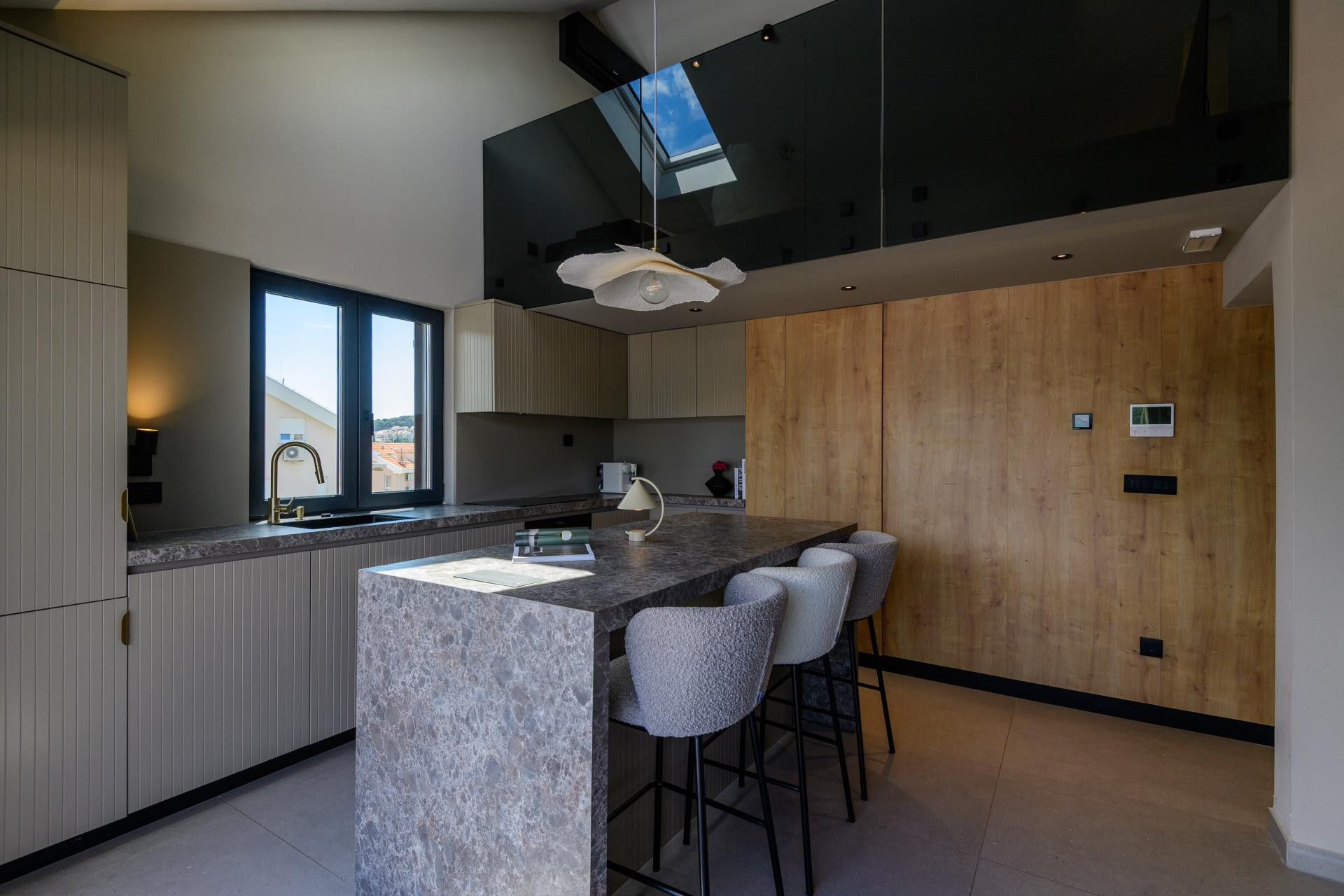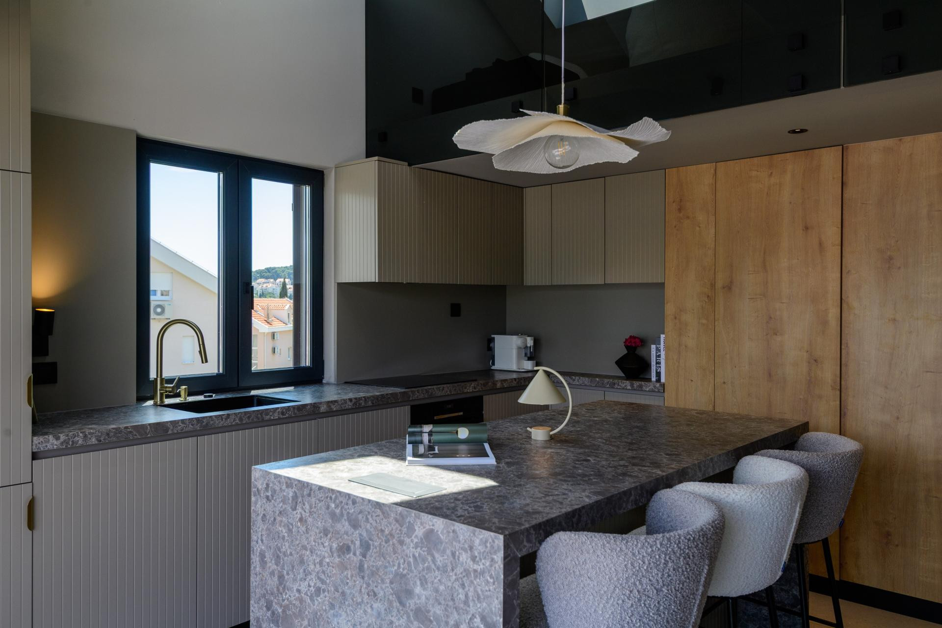 - Posebno mjesto u stanu zauzima kuhinjski otok, središnji komad oko kojega se okupljaju obitelj i gosti. Iako je tijekom montaže djelovao pomalo glomazno, u konačnici se savršeno uklopio i postao središnje mjesto svakodnevice - kaže Mihaela Goluža Besjedica.