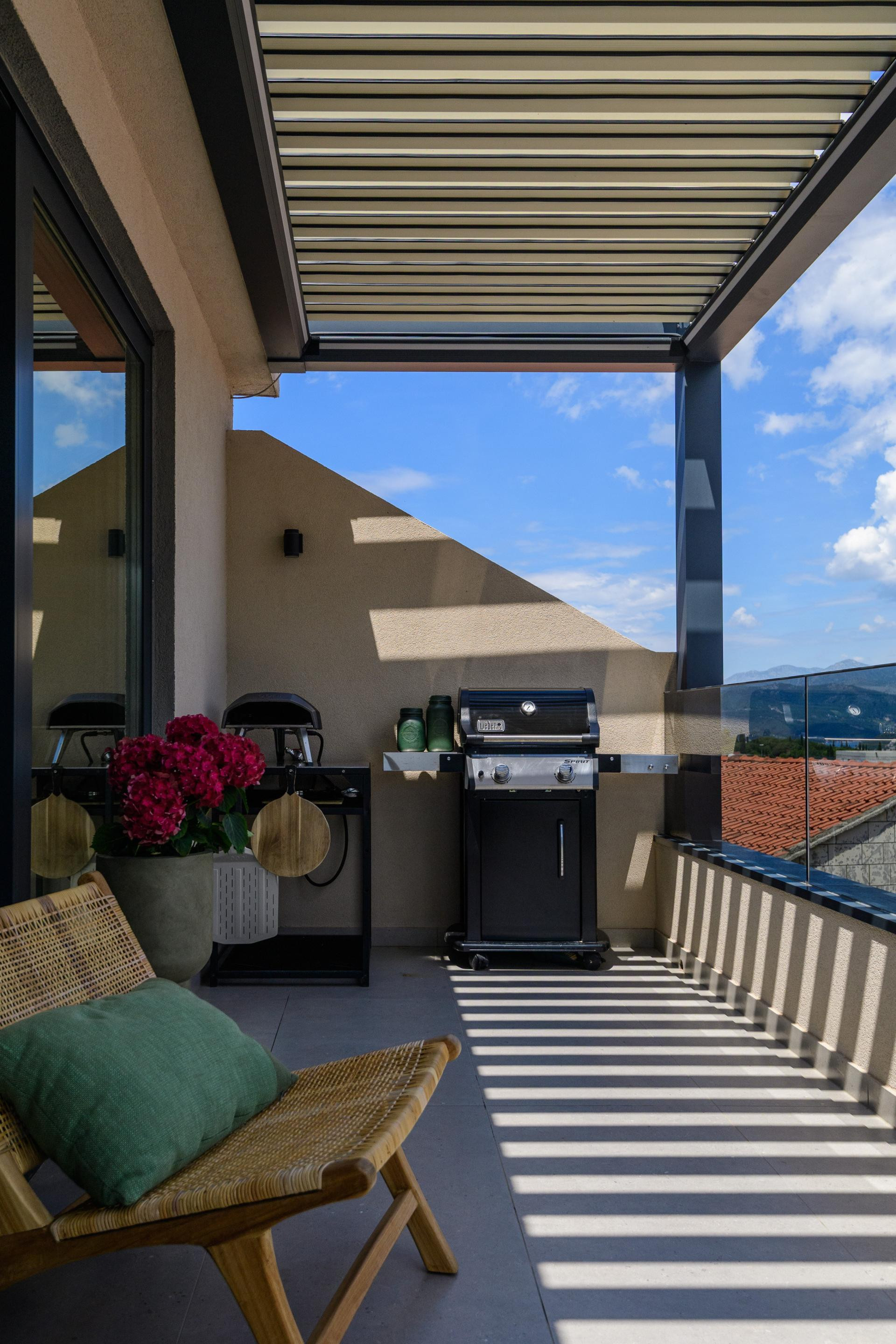 - Ista keramika korištena je za unutarnji i vanjski pod, čime se dodatno naglašava fluidnost između prostora. Na terasu je postavljena bioklimatska pergola koja štiti od vremenskih prilika i omogućava boravak na otvorenom tijekom većeg dijela godine - napominje arhitektica.