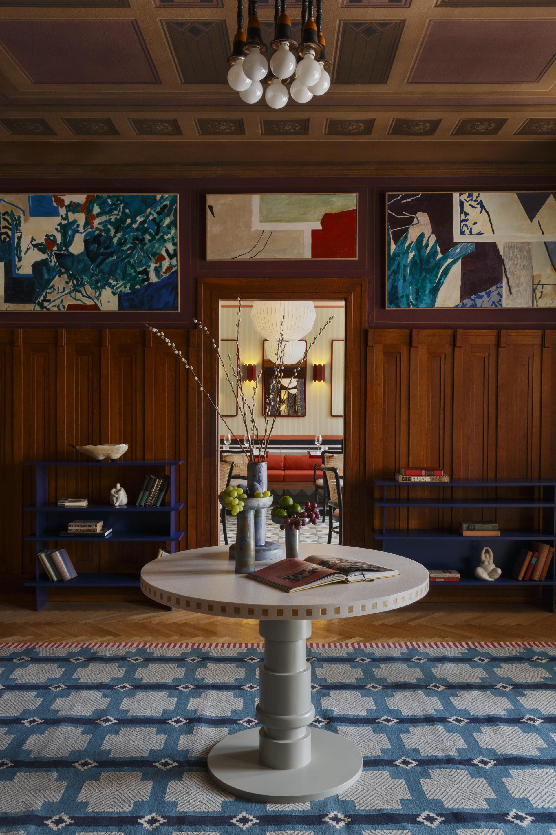Svaki detalj, od odabira materijala do kolorističke palete, promišljeno je dizajniran kako bi se uspostavio dijalog prošlosti i sadašnjosti. Posebnu pažnju dobili su stolarski elementi, koji se stapaju s izvornom arhitekturom, ali istovremeno unose suptilan suvremeni kontrast. Restaurirane su i raskošne rozete na stropu, djelo učenika Tončićeve likovne škole od prije stotinu godina.