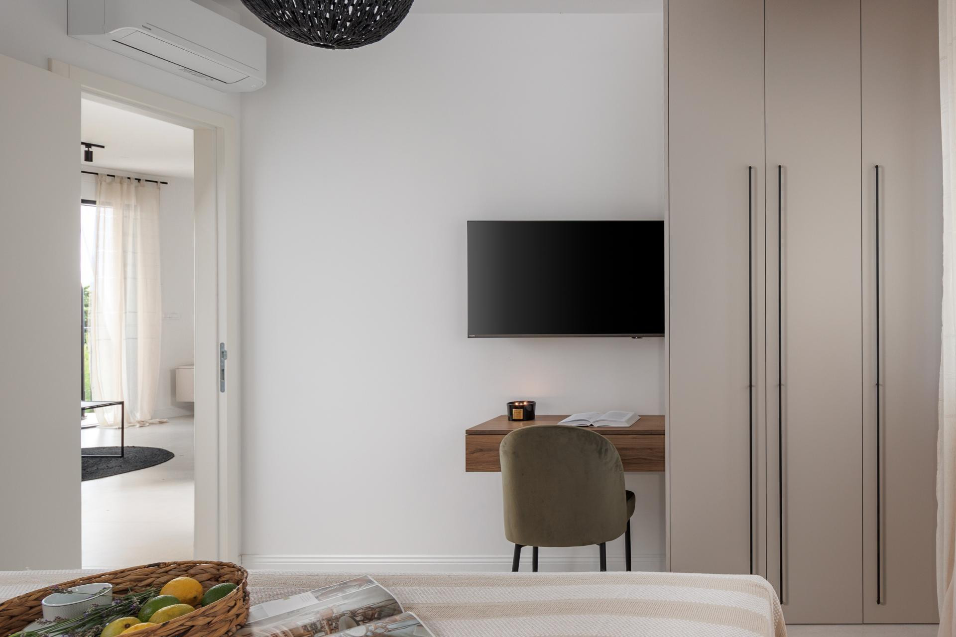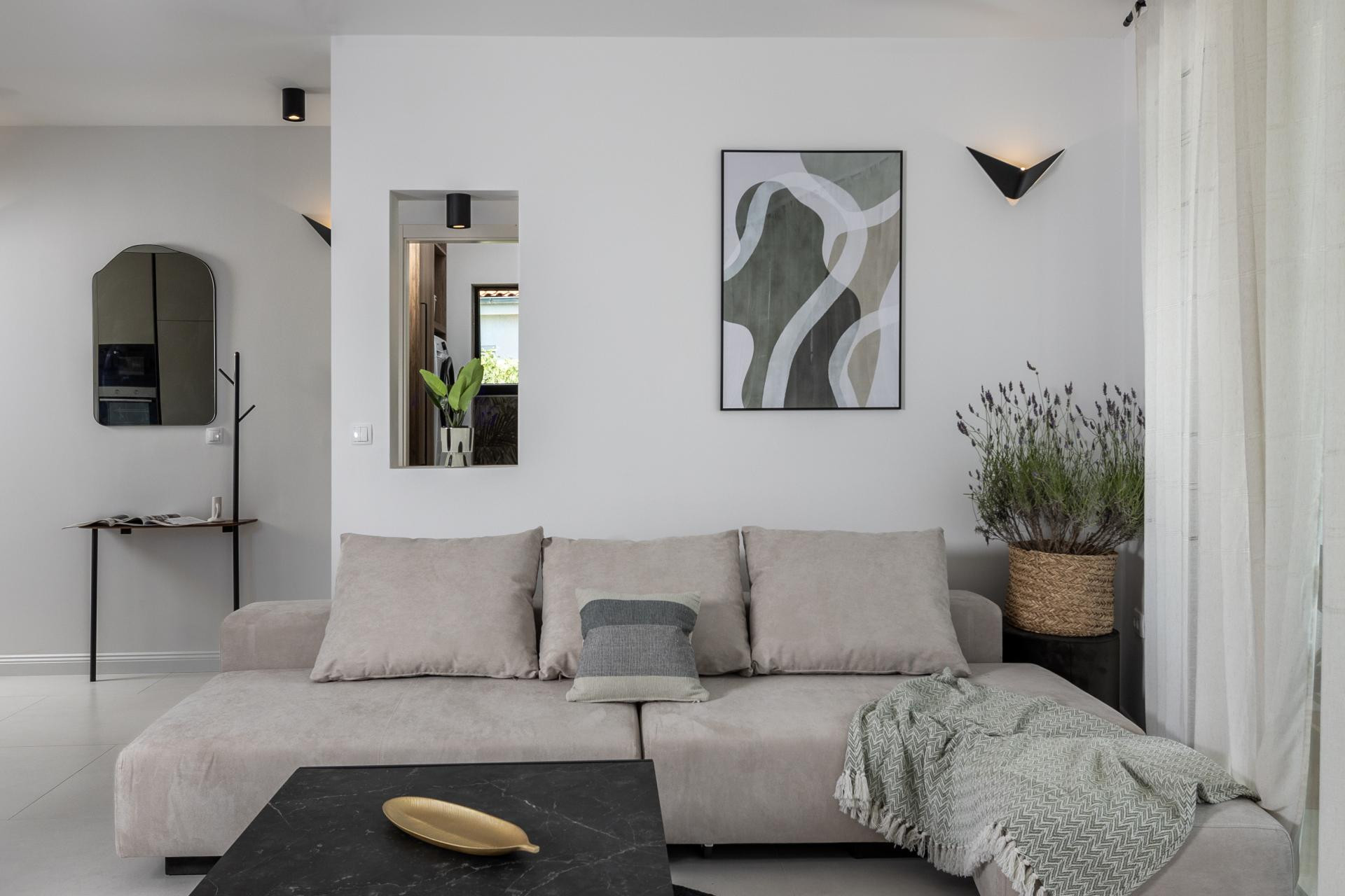 Unutarnji i vanjski dio kuće čine jedinstvenu cjelinu prvenstveno zahvaljujući odabiru boja - svevremenska bijela i siva kreiraju suvremeni izričaj u dizajnu. Izvođači su također zaslužni za stolariju koja se prilagođava tom dizajnu i koja dolazi iz njihove proizvodnje, a radi se o drveno- aluminijskim okvirima prozora i vrata koji su također poznati po svojoj izvrsnosti. Iako većina ljudi na samom početku želi doznati koliki se iznos morao odvojiti za kuću i koliko vremena je trebalo proći da se ona dovrši, mit pitanje ostavljamo za kraj. Aida nam otkriva kako je ova kuća bila gotova za pet mjeseci, nekoliko dana gore – dolje, te ja vlasnik morao za nju odvojiti oko 200 000 eura, što je još jedan dokaz o prednostima koje montažne kuće mogu donijeti bilo kome tko se odluči za njih.
