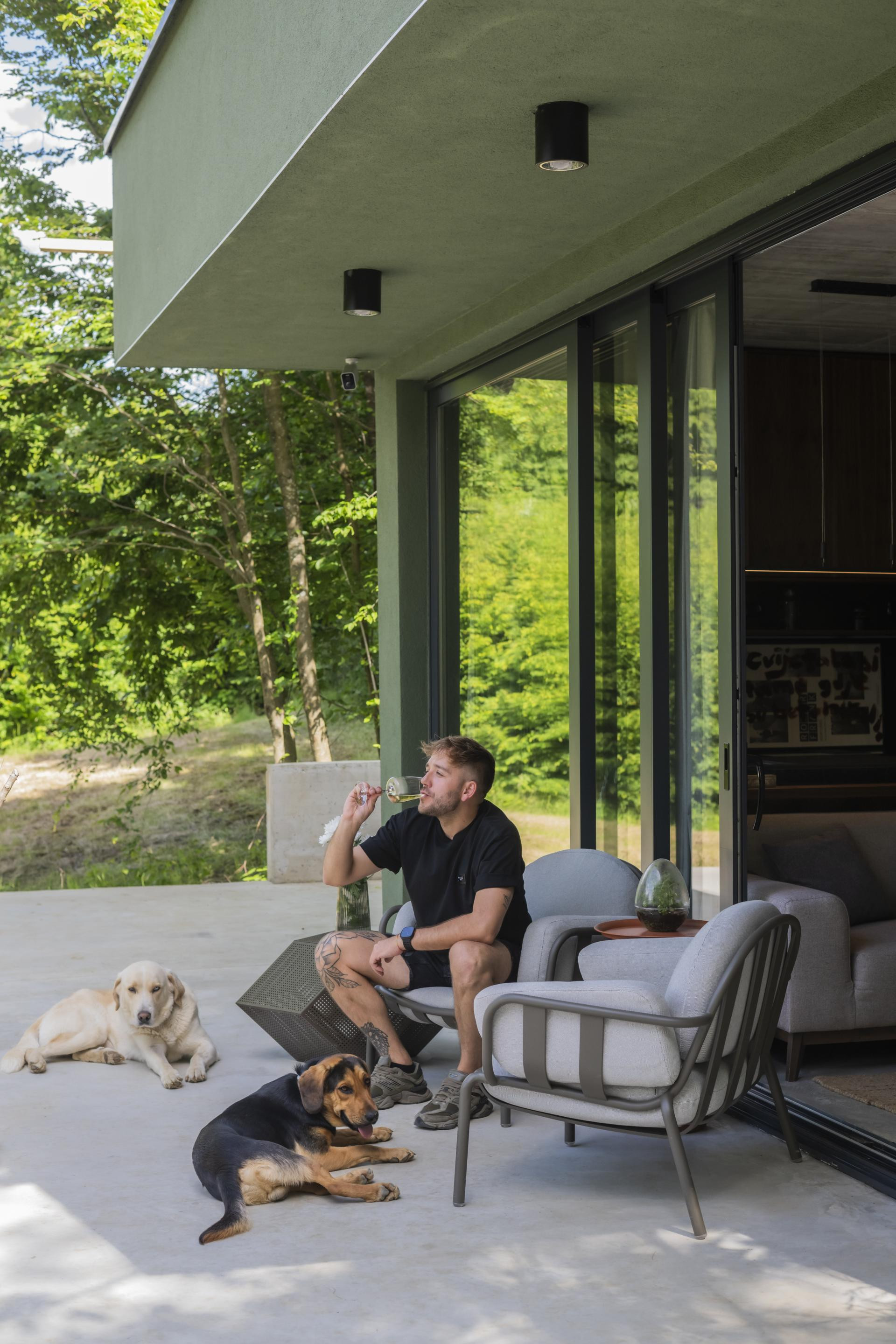 Velika terasa s kuhinjom na otvorenom i masivnim betonskim stolom postala je srce doma, mjesto okupljanja, druženja i stvaranja uspomena. Renovacija i proces oblikovanja kuće, kaže Stanislav, postali su filozofija života – spor, promišljen i svjestan pristup, gdje je prisutnost važnija od kontrole, a priroda najveća inspiracija.