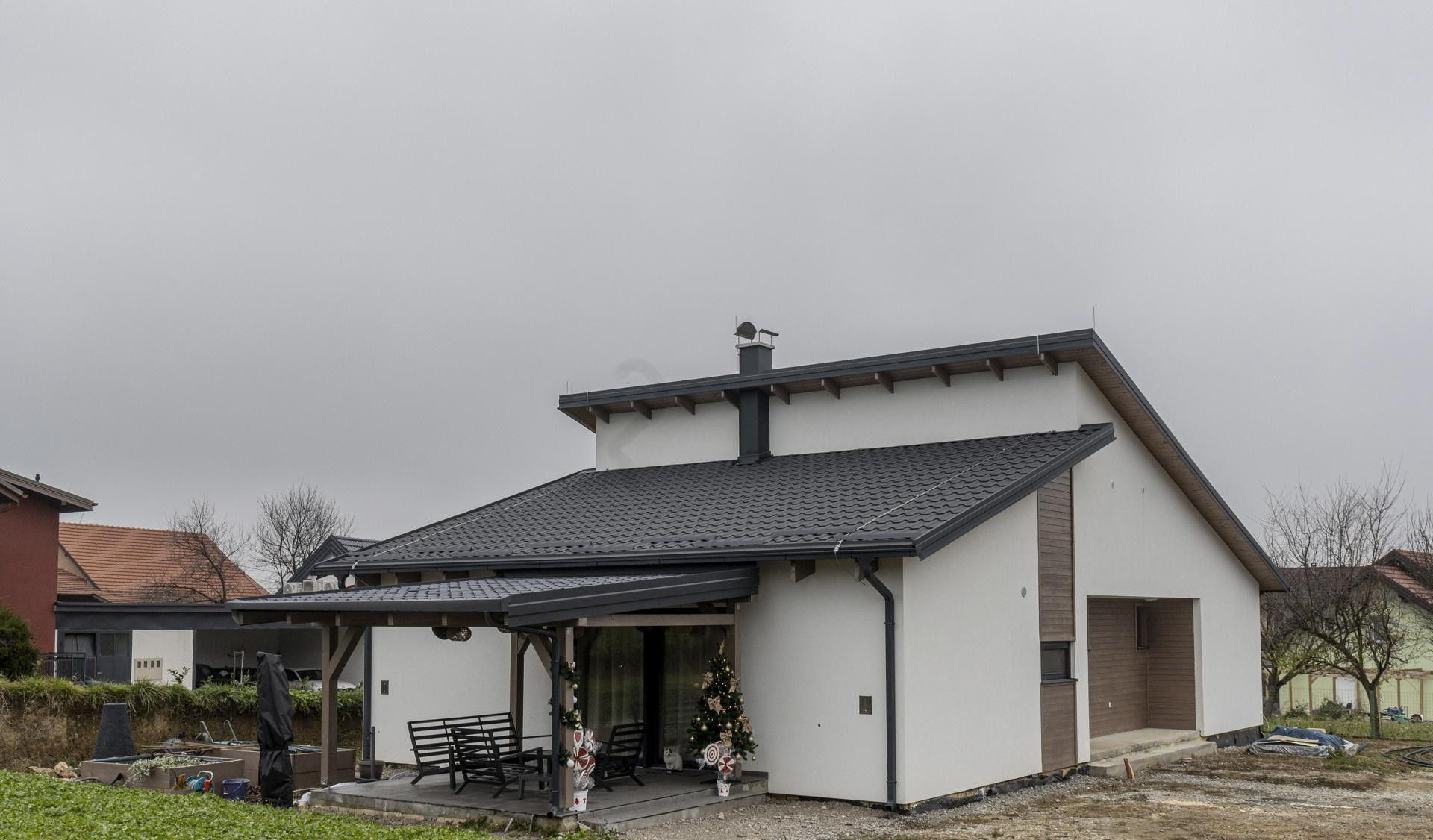 Doris i Alen Romić izgradili su montažnu kuću od 127 m² s terasom i tavanskim prostorom na okućnici od gotovo tisuću kvadrata u Svetoj Nedelji. Odabrali su, kažu, montažnu gradnju zbog brzine, dobre izolacije i otpornosti na potrese – gradnja je počela u listopadu 2023., a pola godine kasnije kuća je bila spremna za useljenje, pri čemu je sama montaža trajala samo 15 dana.