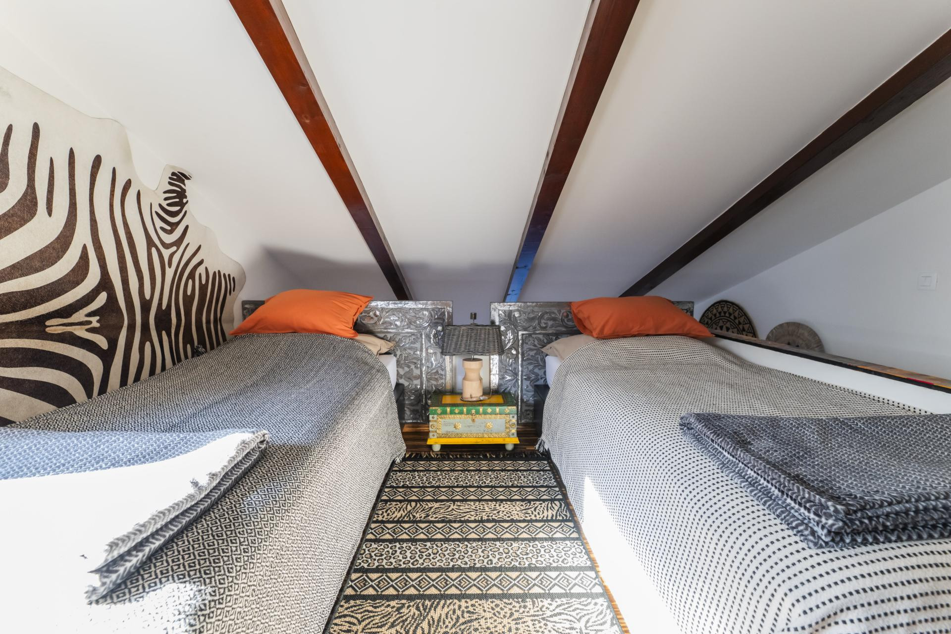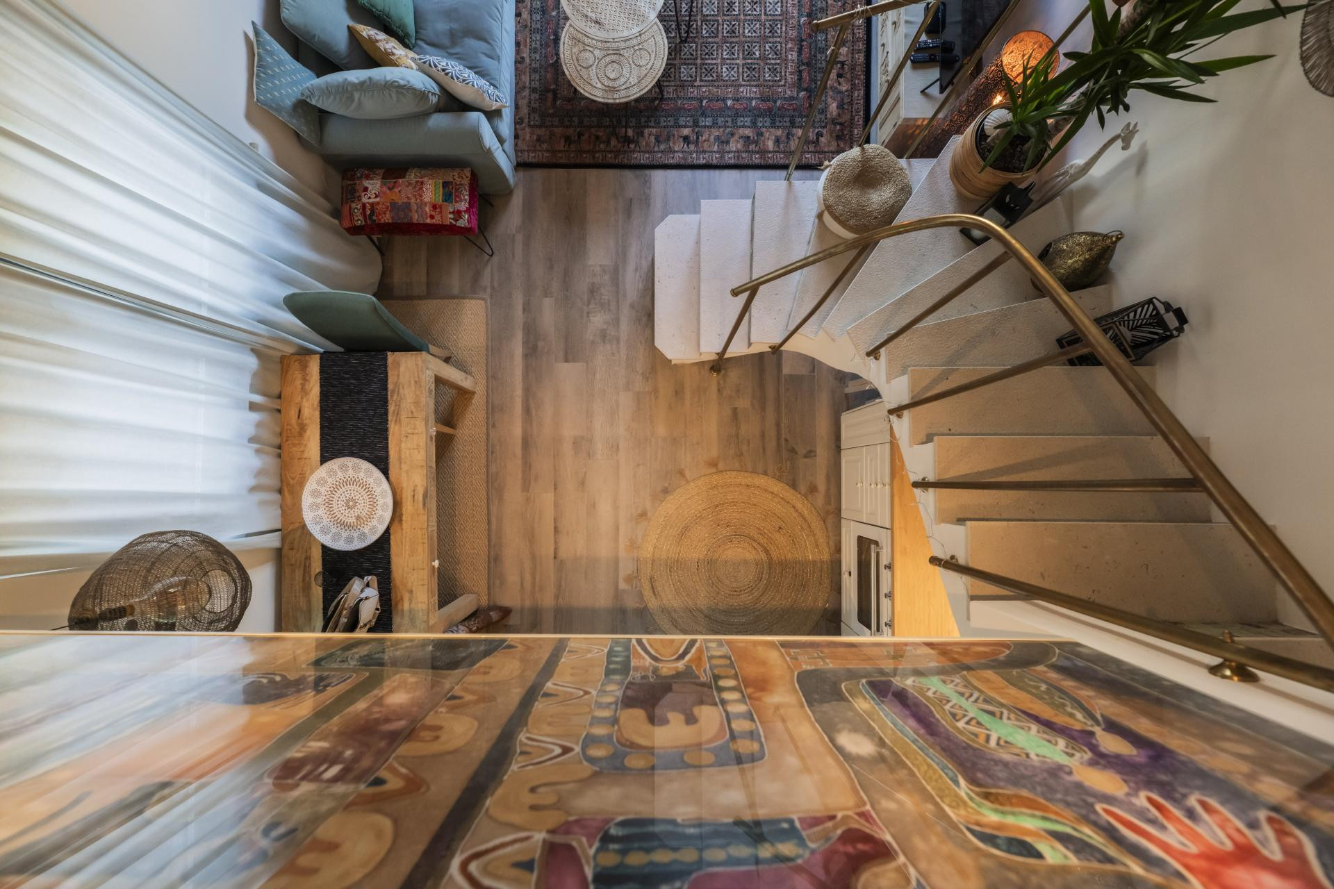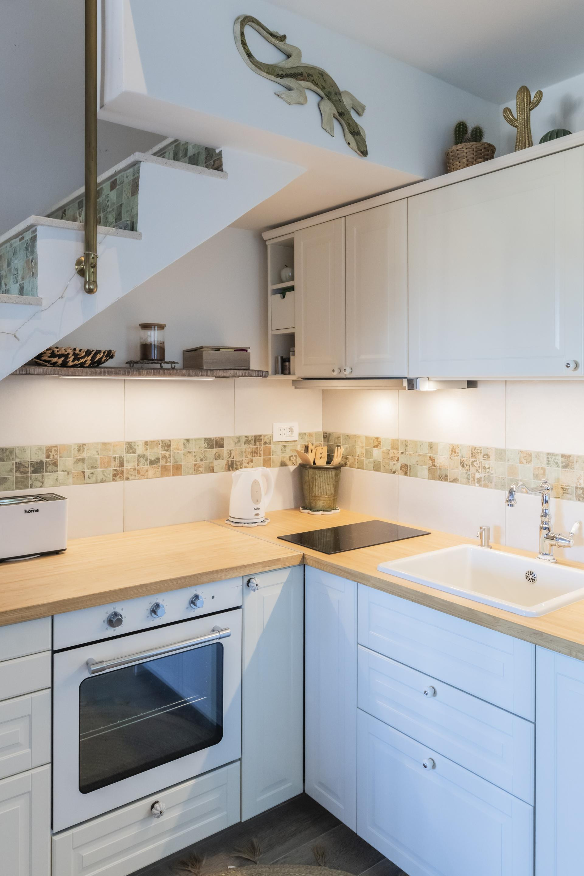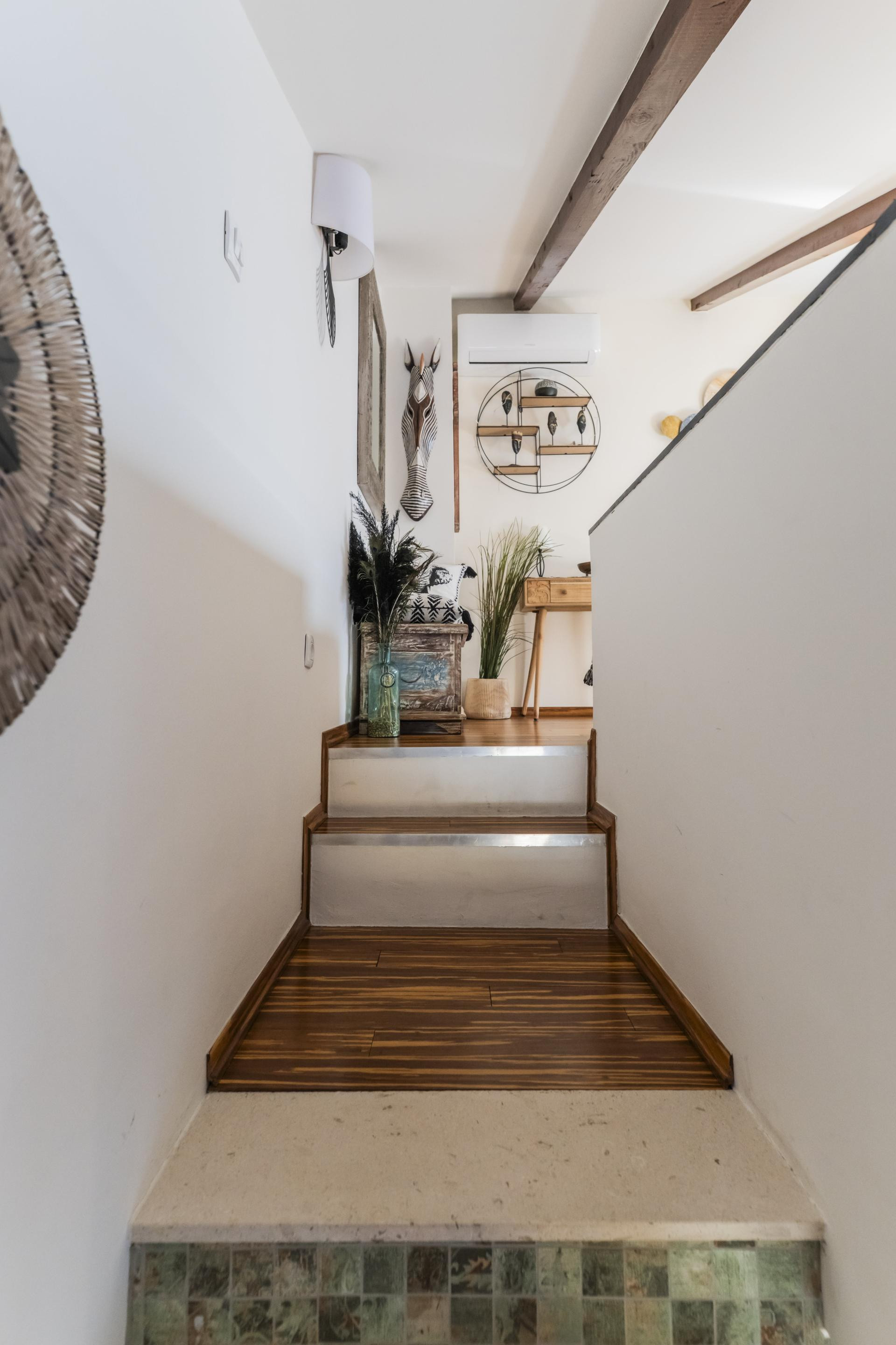 Primjerice, stepenište do galerije na kojoj je smješten spavaći dio pažljivo je oblikovano "u milimetar" kako bi funkcionalno podijelilo prostor da ispod njega stane kuhinja, a da ostane dovoljno prostora za dnevni dio. Zatim, iza ulaznih vrata nenametljivo je ugrađen veliki bijeli ormar od poda do stropa koji je, osim za pohranu stvari i obuće, odlično poslužio i za izmještanje bojlera iz kupaonice uređene u boho stilu u kojoj se, osim šarenih pločica, ističu drveni detalji, prozirno sedefasti umivaonik i ogledalo s orijentalnim okvirom i rasvjetom.