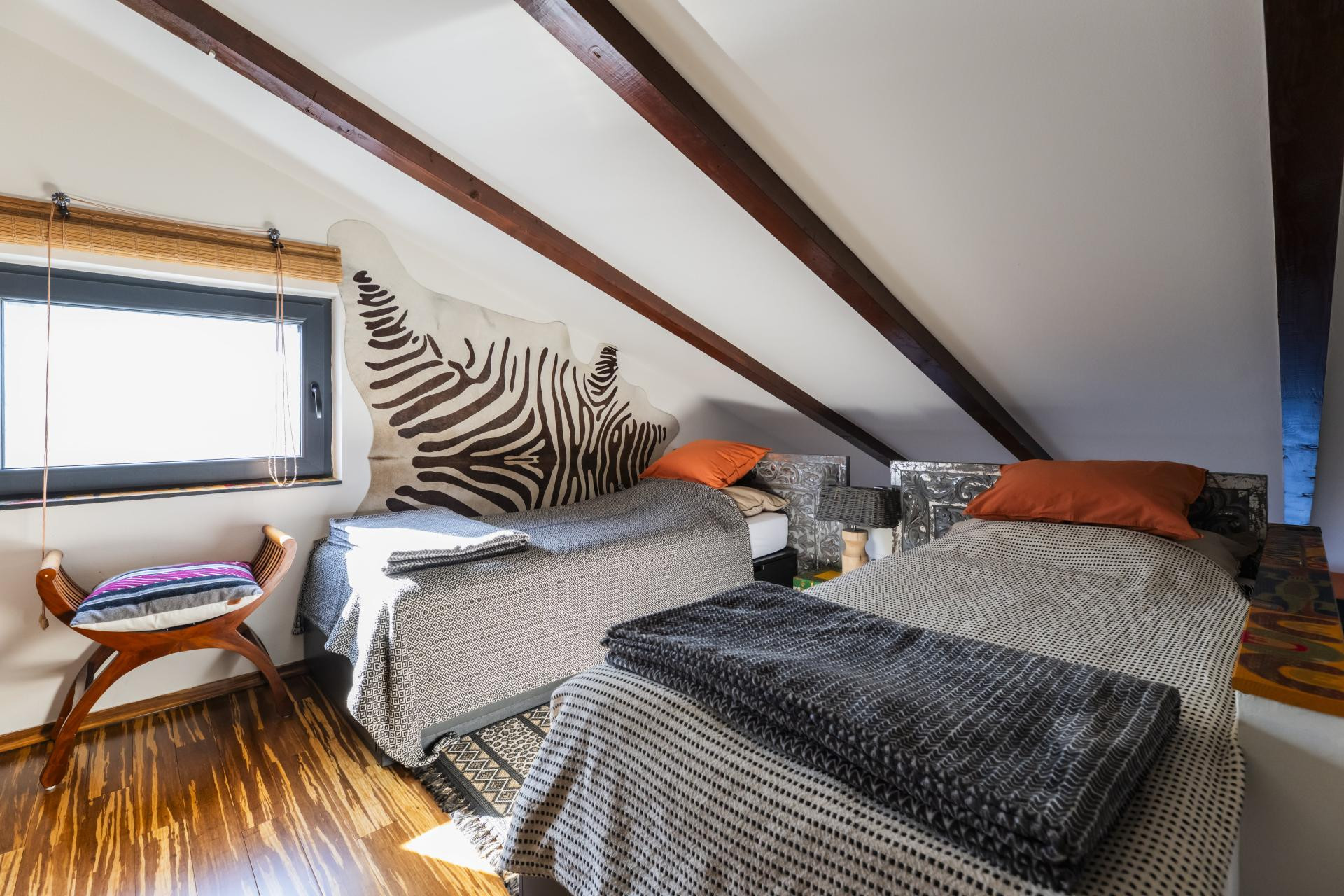 Na samoj galeriji još je smjestila ormar, komodu za TV i šarenu klupicu s pohranom iz Nepala, a iako na prvu djeluje u dekorativne svrhe, kravlja koža na zidu pokazala se, kaže nam, i kao dobra termoizolacija.