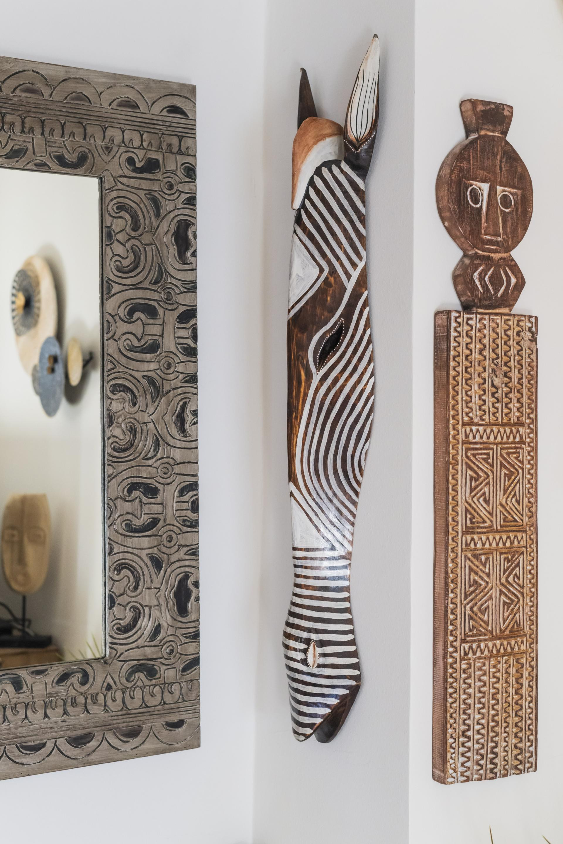 Osim prenamijenjenog komada drveta koji je stigao s drugog kontinenta, isti zid, na koji se naslanjaju spomenute stepenice, krasi još nekoliko upečatljivih suvenira. Drvena maska, orijentalne lampe, izdašna biljka, figure žirafa iz Kenije, velika okrugla tapiserija...
