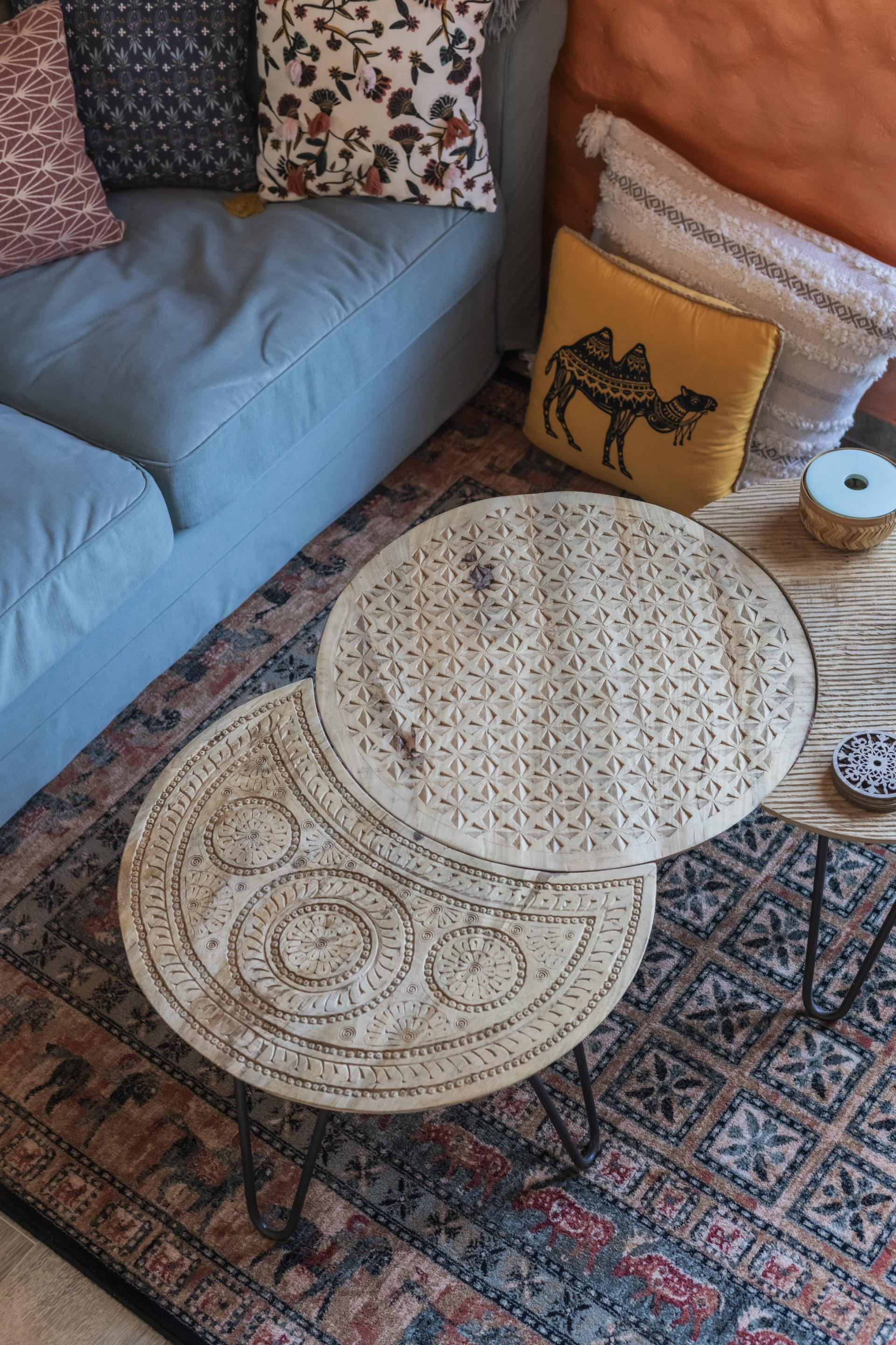 Klub stolić "prati" stil čitavog prostora, male rezbarotine podsjećaju na afrričku umjetnost