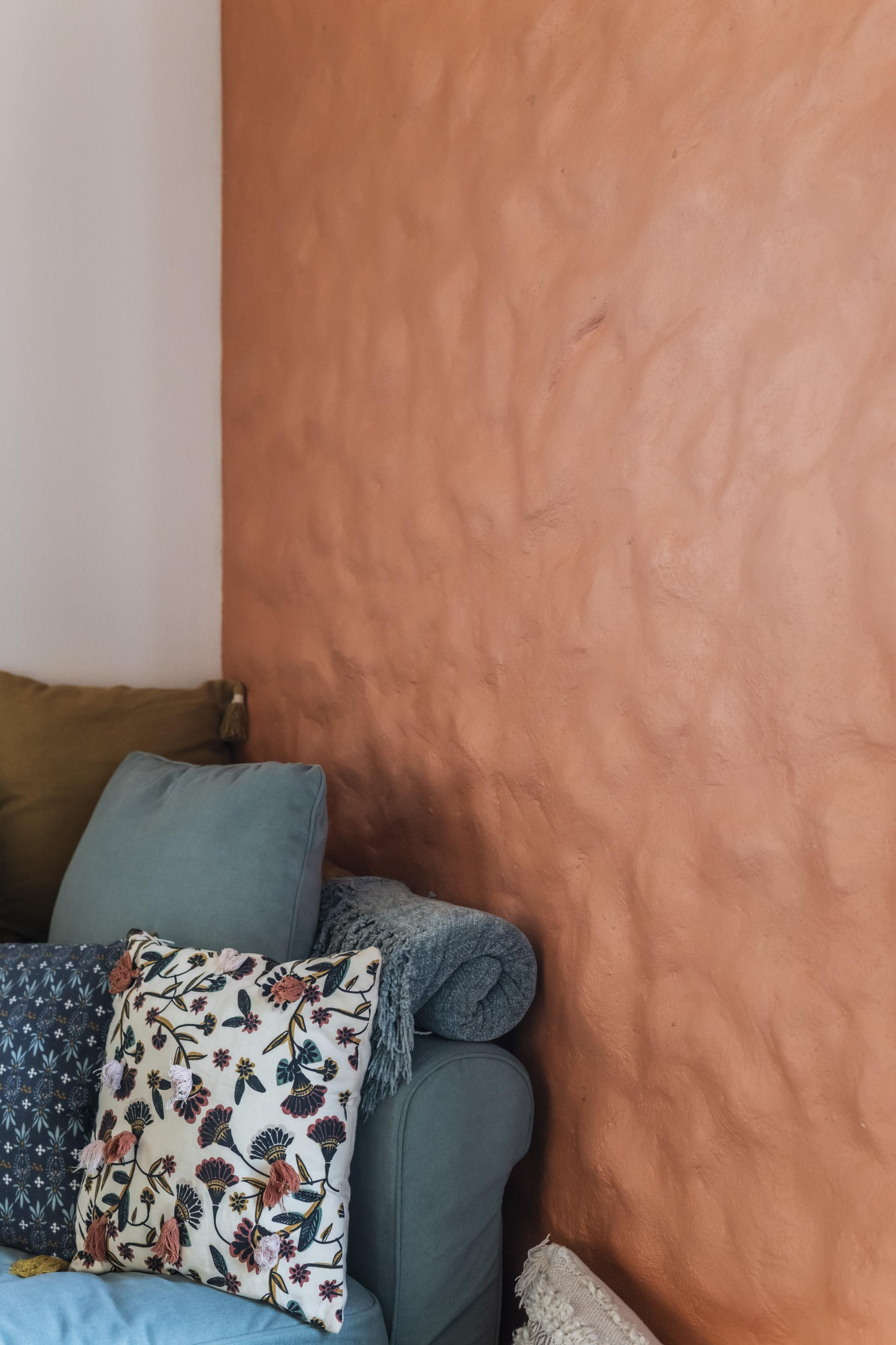 - Bilo je važno da ostanu neravnine, za razliku od trendova kod kojih je zapravo samo estetski ‘grubo‘ bojano, pa sam skupa s majstorima radila njegovu obradu da bismo došli do zadovoljavajućeg ‘reljefa‘ - pojašnjava nam Nives, čija slika krasi susjedni zid, iznad sofe.