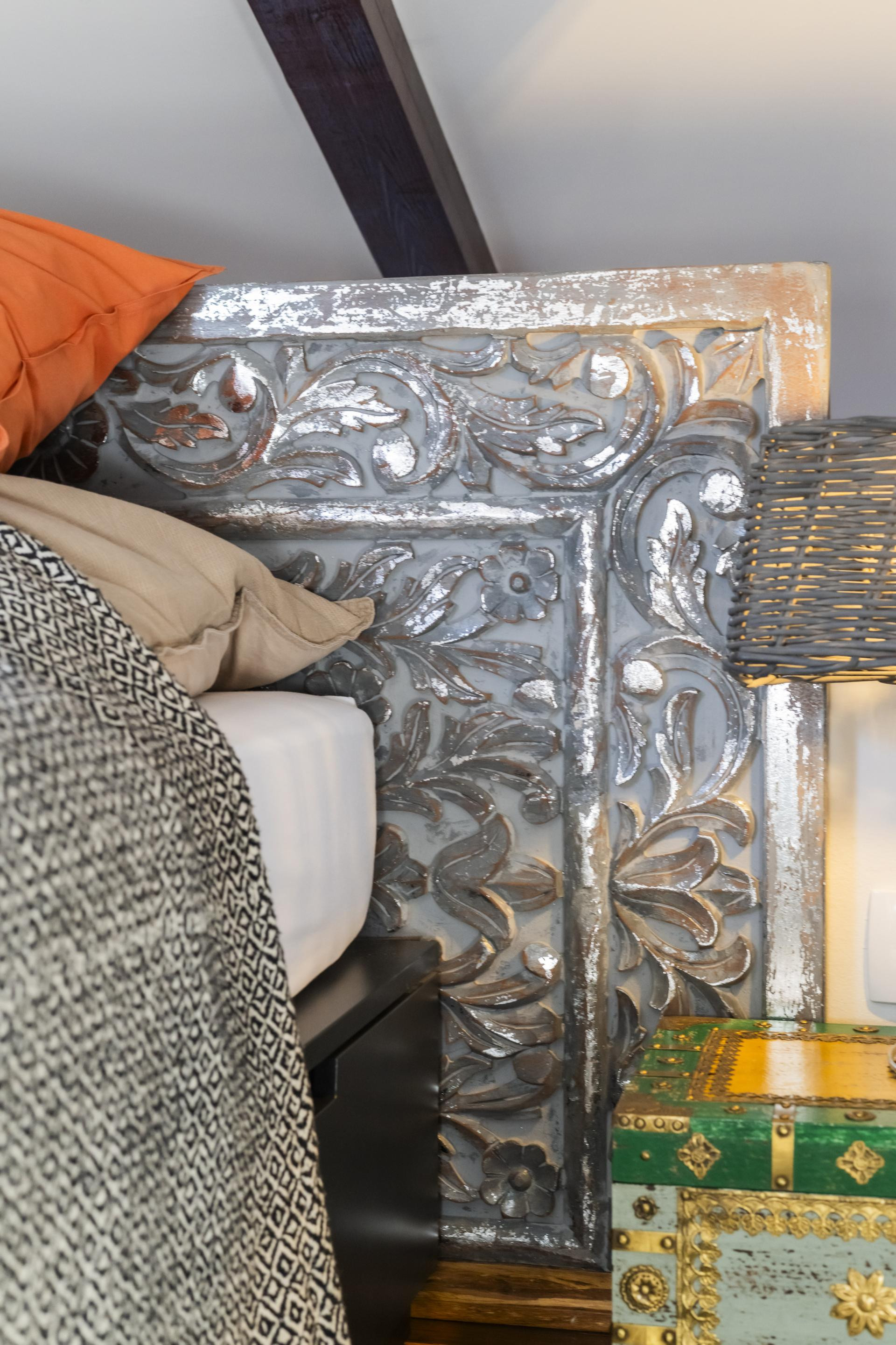 Uzglavlja su zapravo zidne dekoracije koje je vlasnica skratila i obojila u sivo-srebrnu nijansu