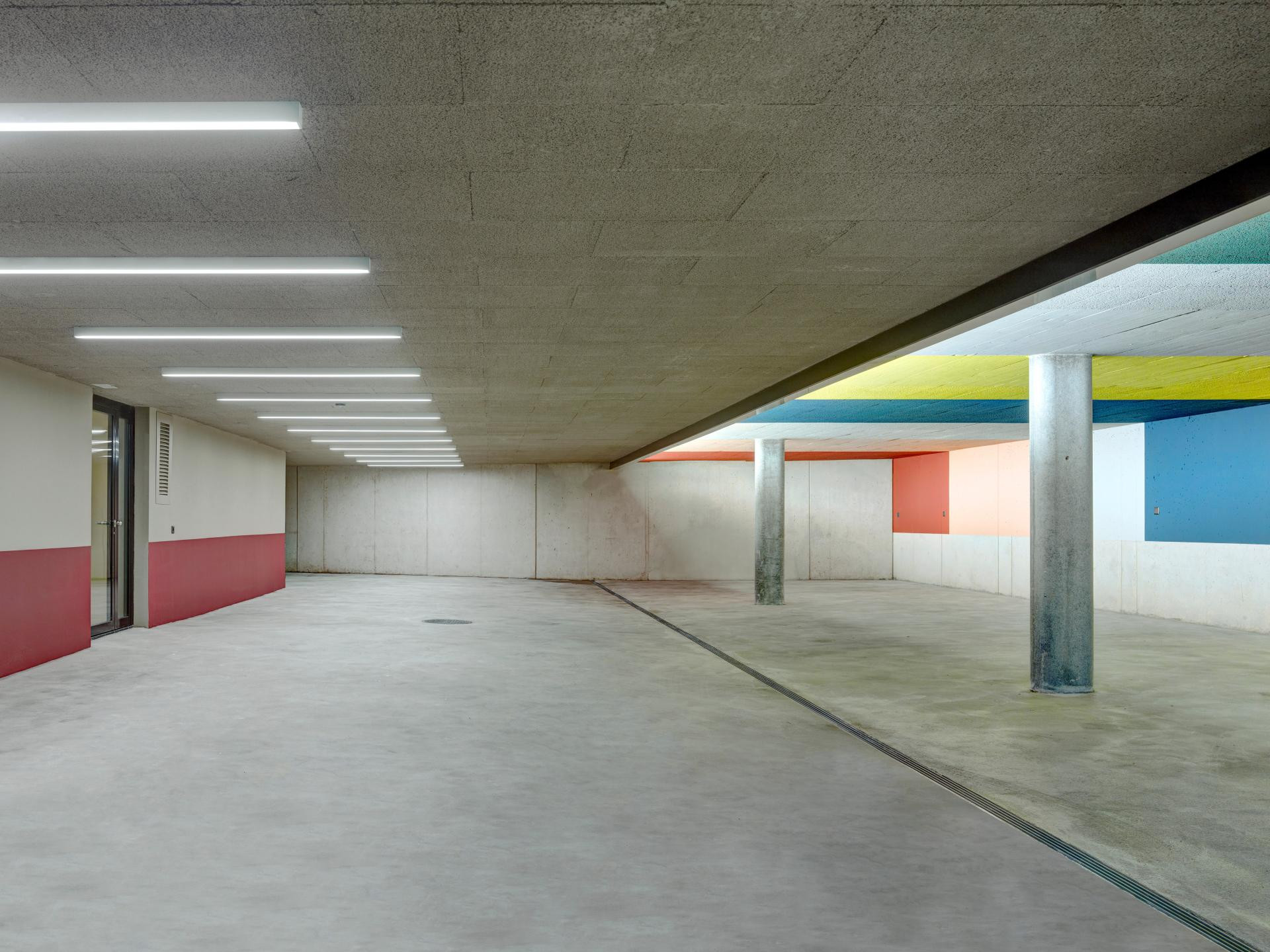 Arhitekti su se odlučili za suzdržan, ali rafiniran pristup, pročelja su razlomljena blagim savijanjem krajeva, čime se volumen vizualno smekšava i prilagođava okolnim zgradama. Kosi krov dodatno naglašava poštovanje prema kontekstu, dok je pažljivo oblikovano uklapanje u teren osiguralo prirodan prijelaz prema zelenim površinama. Time je ostvarena arhitektura koja se ne nameće, već stvara skladan dijalog s okolinom.