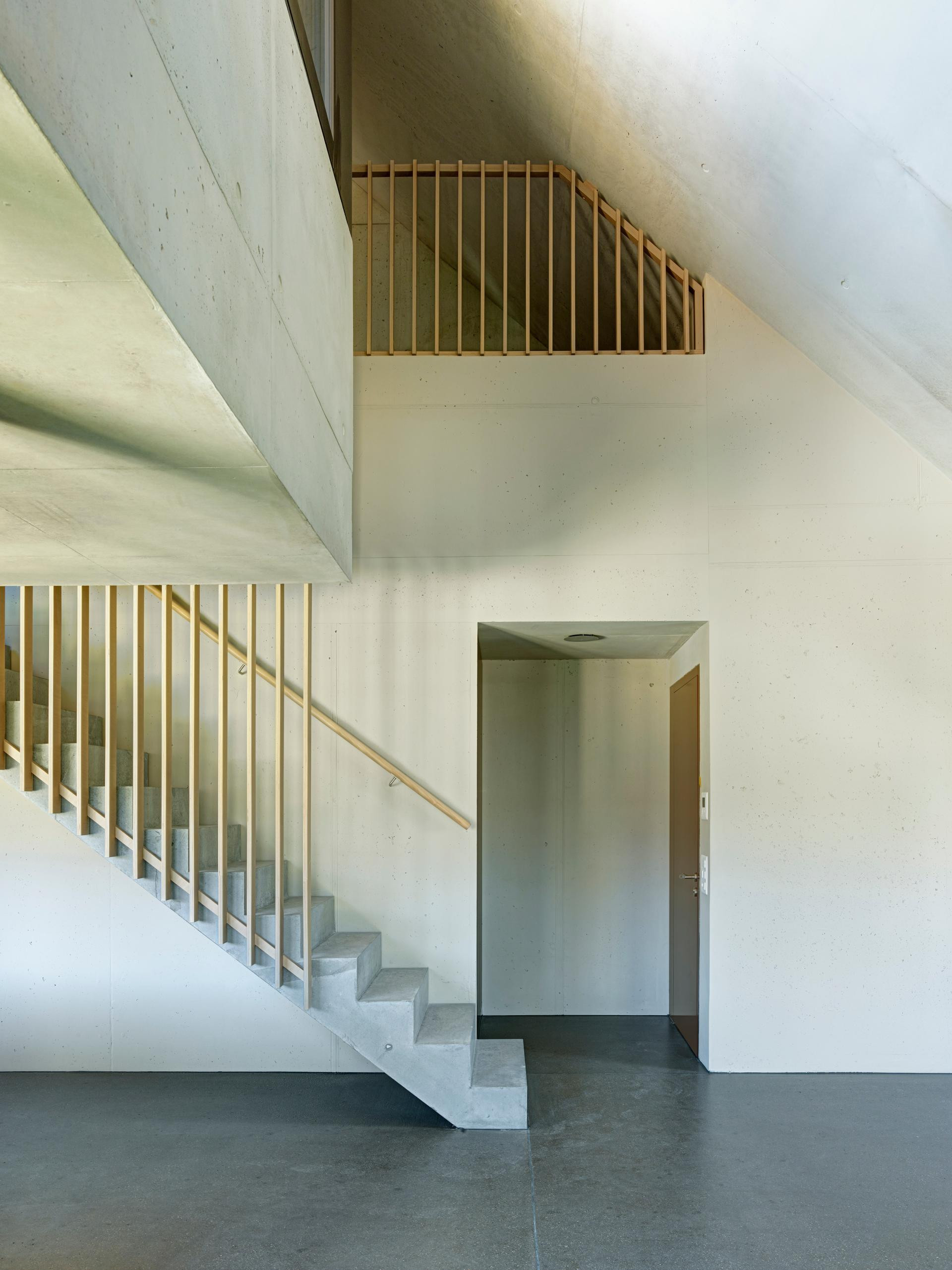 Lođe su pažljivo uklopljene u geometriju objekta, dok su konzolni elementi poput balkona i erker prozora izostali, sve u cilju stvaranja smirenog i čistog arhitektonskog dojma. Krovne plohe prate isti princip: iako izvedene od fotonaponskih i vlaknocementnih panela, zadržavaju monolitnu i smirenu pojavnost, s dva diskretna tornjića usmjerena prema jugu.