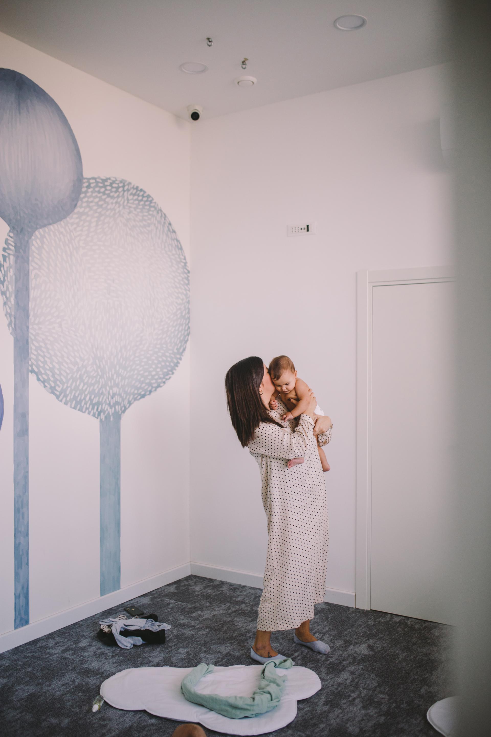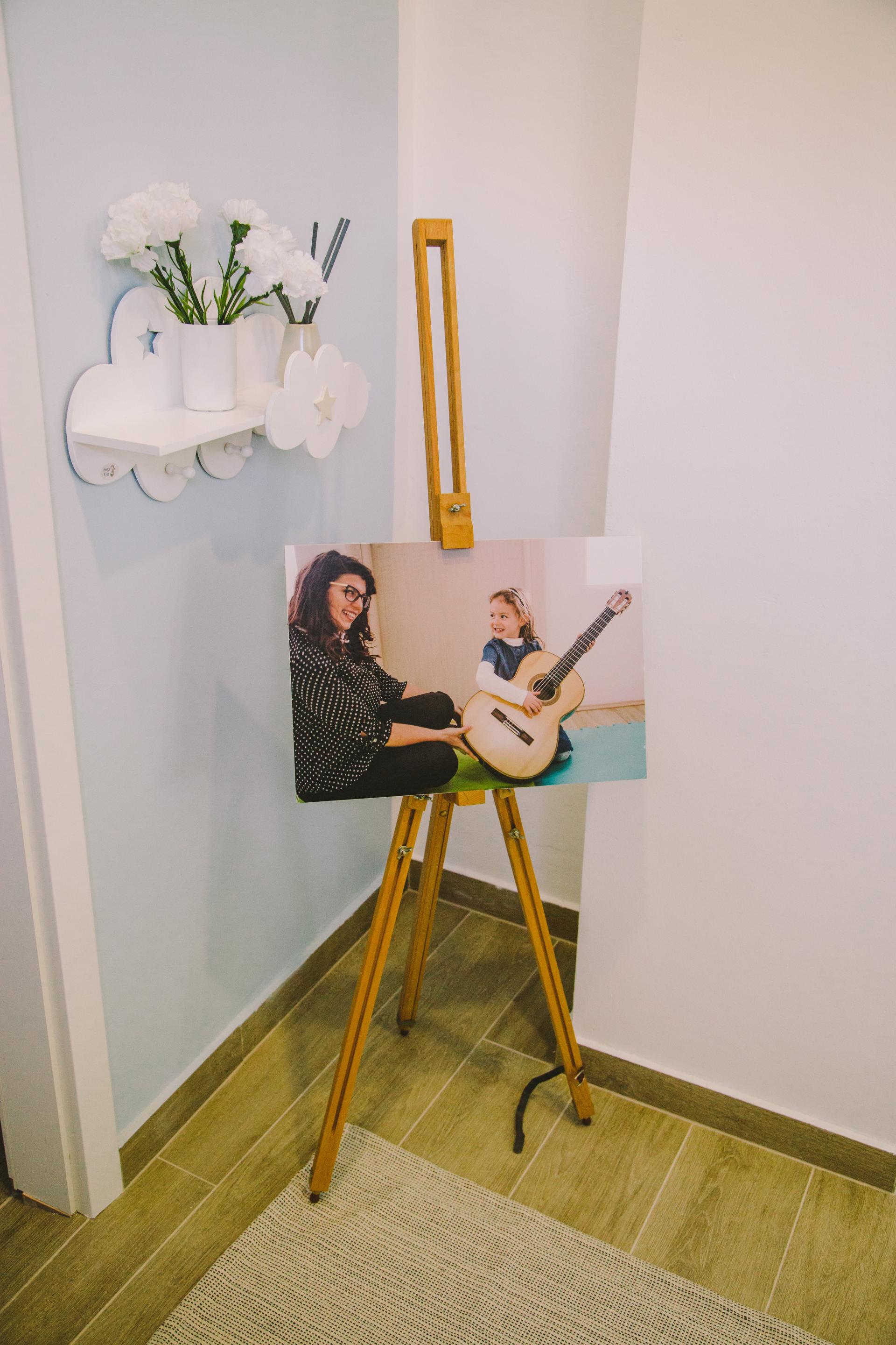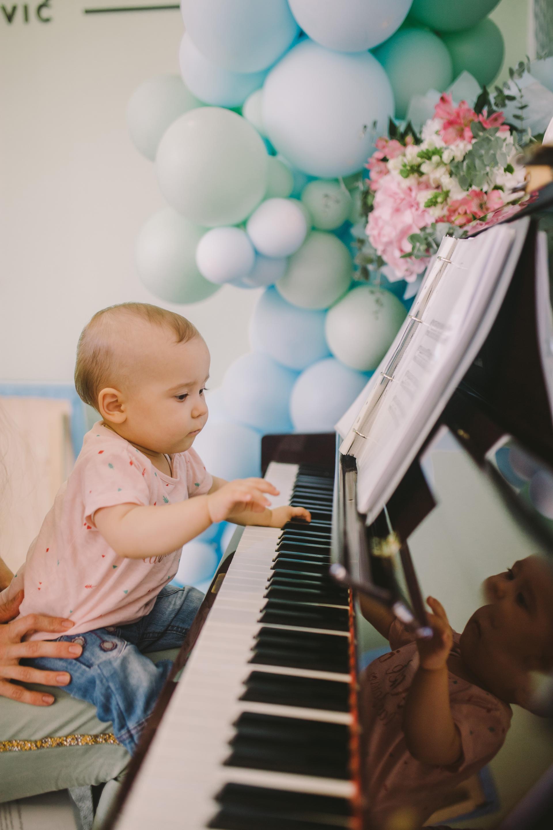 - Na podu nemamo drugih materijala ili komada namještaja osim klavira, jer nam je važno da prostor bude čist i slobodan za dječji pokret uz glazbu. U kutu je intimno mjesto za hranjenje djece, obogaćeno prozračnim baldahinima koji daju dozu luksuza te policom brenda Pinky Kiky na kojoj su pelene i Paluu nepropusne podloge za presvlačenje djece - nabraja. Ističe i instalaciju akademske slikarice Ivone Mustapić Jelavić.