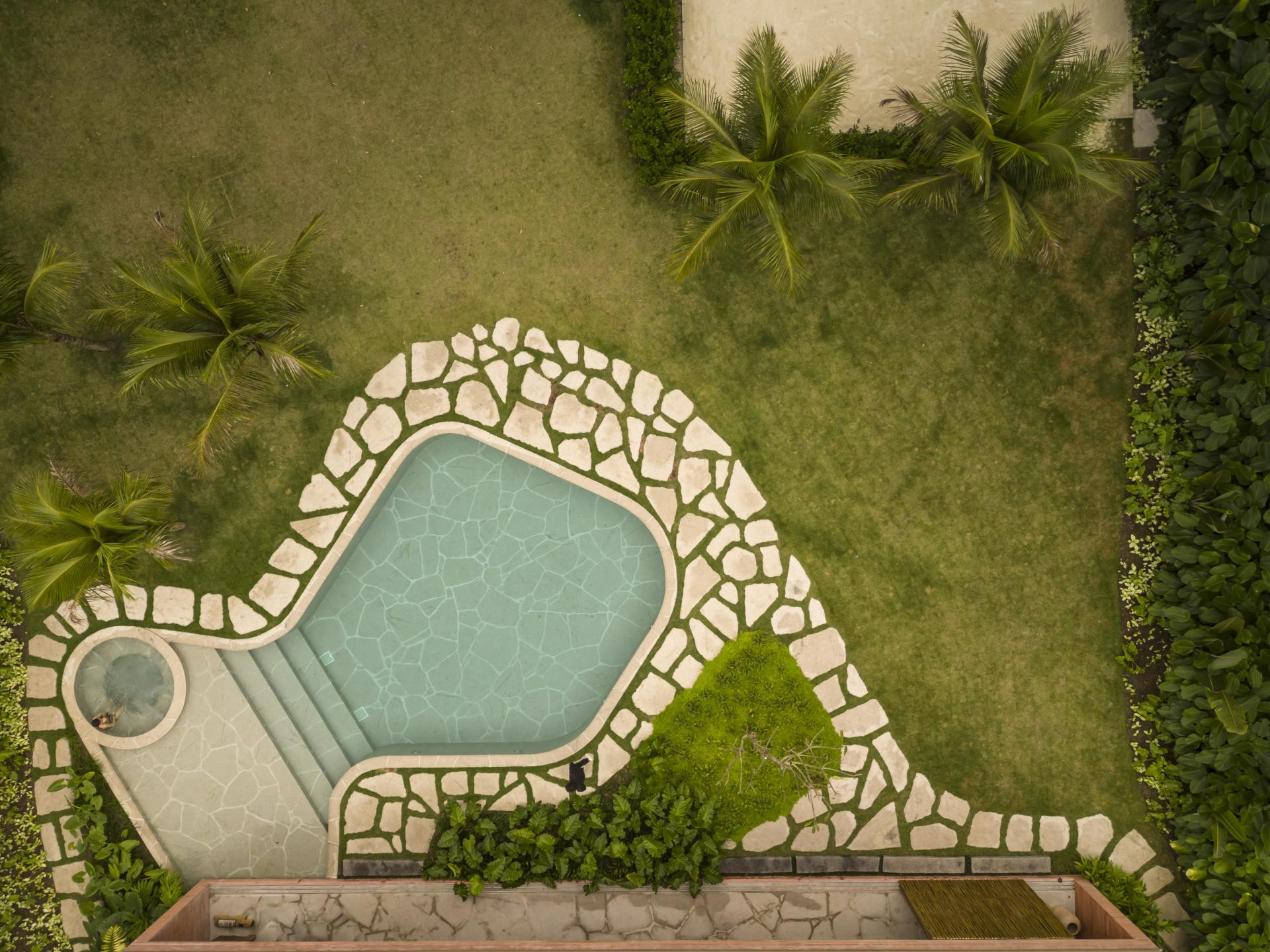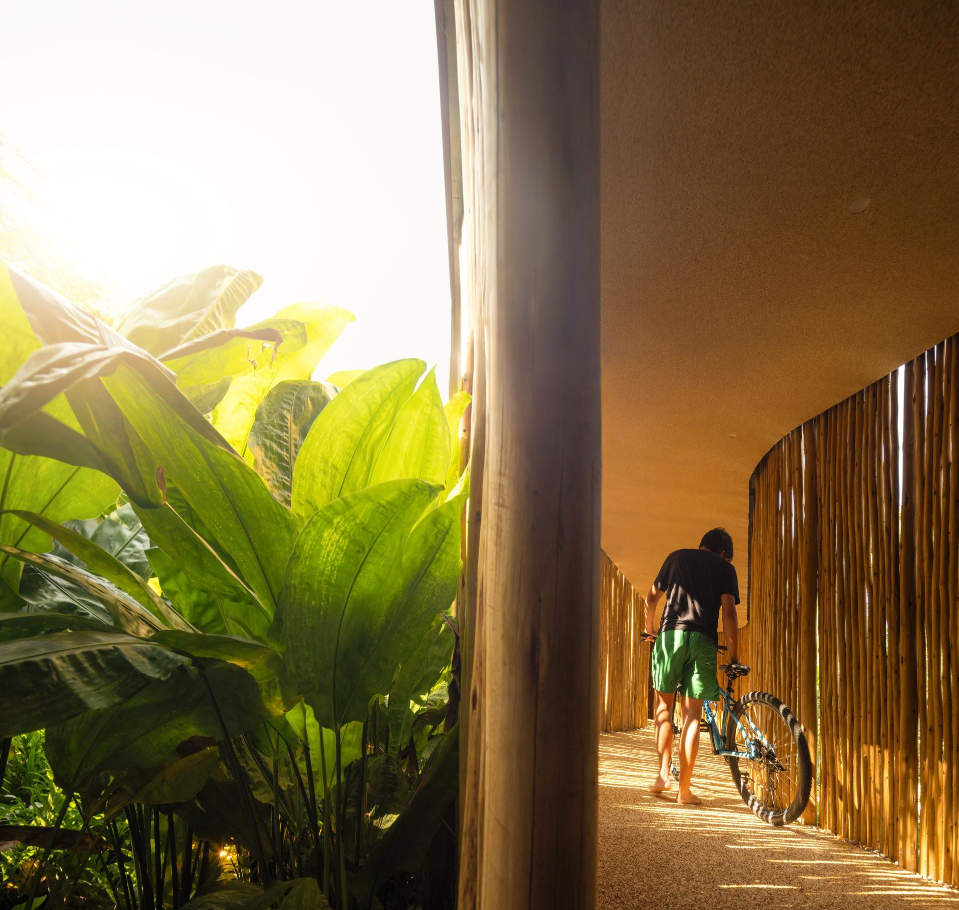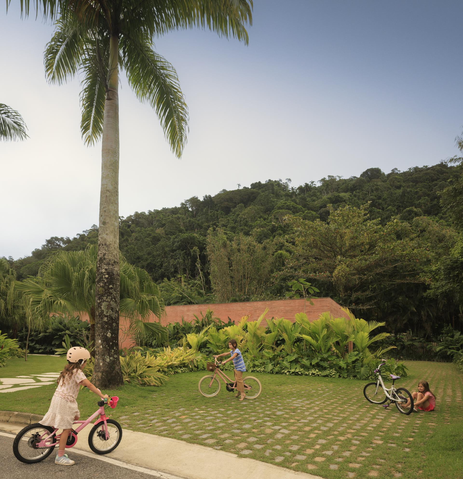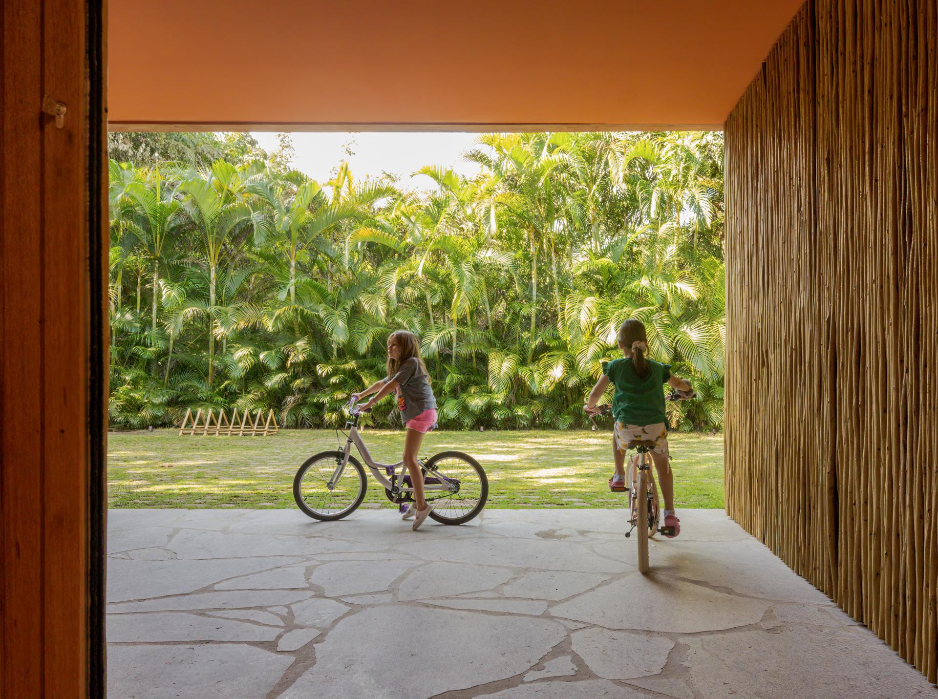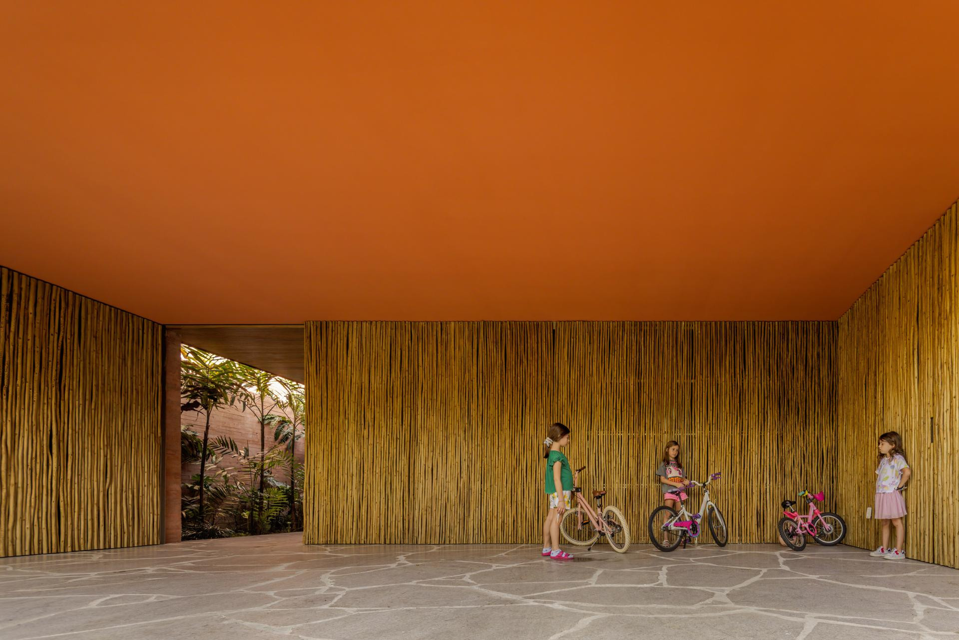 - Okružena Atlantskom šumom, kuća se ističe svojom integracijom s okolinom, nudeći iskustvo uranjanja u tropski krajolik. Ali doslovno. Arhitektonski dizajn slijedi minimalistički pristup, s jednostavnim i geometrijskim volumenima. Veliki otvori povezuju unutarnje prostore s vanjskim, promičući fuziju između interijera i eksterijera, dopuštajući unakrsno provjetravanje i obilan ulaz prirodnog svjetla. Prijelaz između blokova izveden je kroz šetnicu organskog oblika obloženu biriba drvom, materijalom koji pojačava prirodnu estetiku i integraciju s okolinom. Ova staza, osim što je funkcionalna, pruža vizualnu i osjetilnu vezu s prirodom, proširujući osjećaj kontinuiteta s okolnim krajolikom. Materijali su odabrani kako bi ojačali integraciju s mjestom. Suhi ružičasti beton, prirodno drvo i kamenje harmonično su u dijalogu sa zelenilom šume. Paleta boja i tekstura pridonosi tome da se kuća nježno kamuflira u prirodnom okruženju, naglašavajući arhitekturu koja poštuje i cijeni okoliš - opisali su arhitekti.