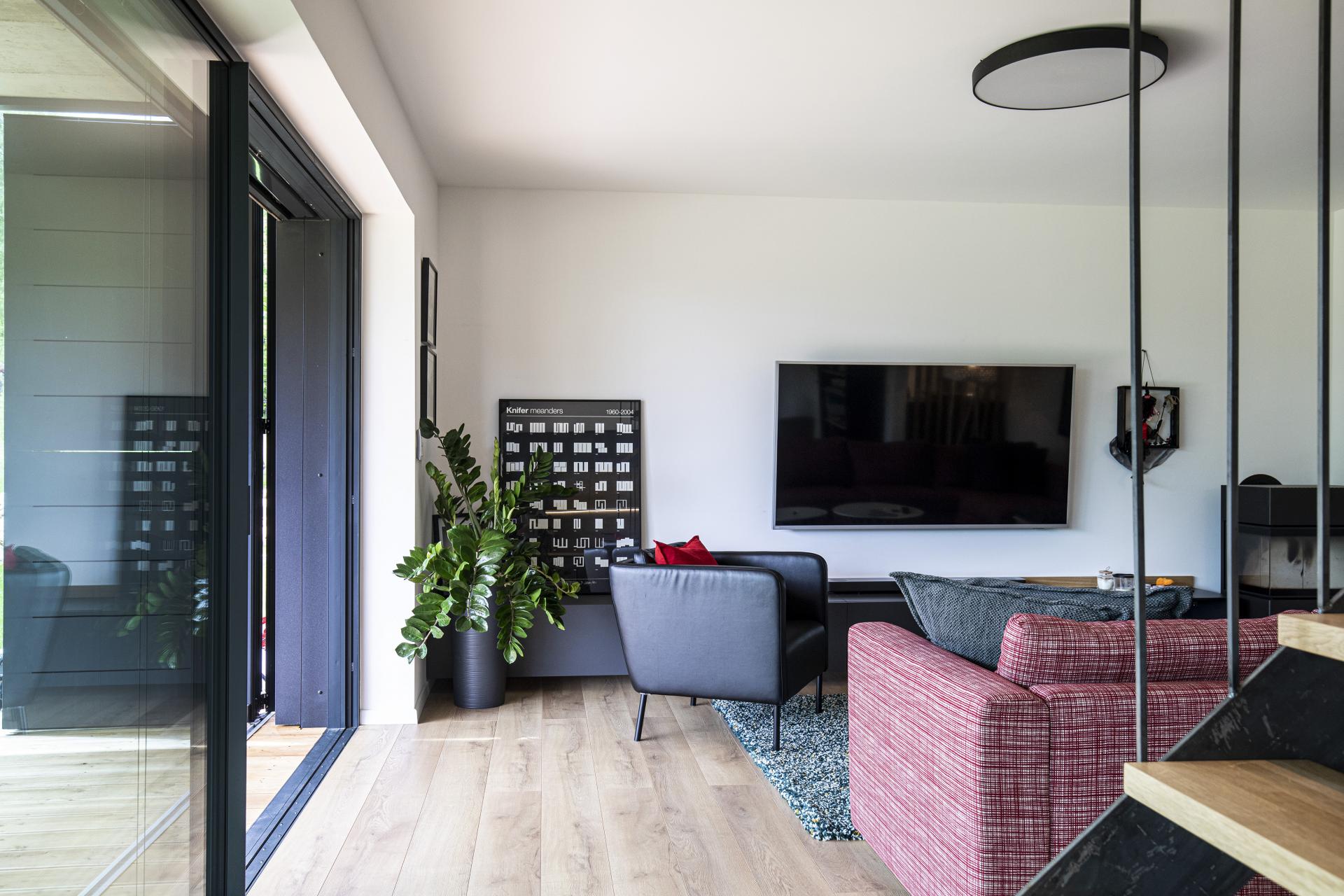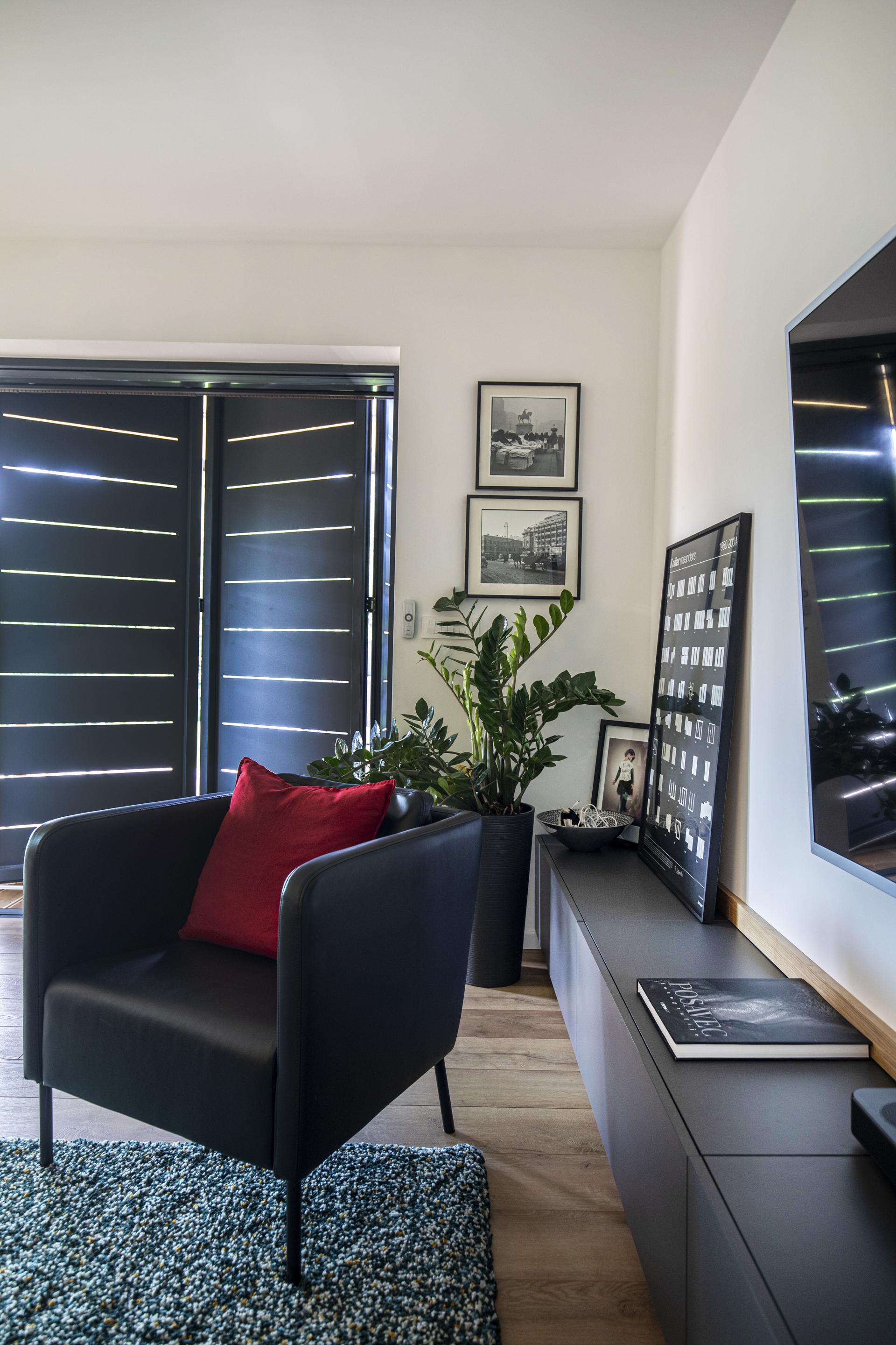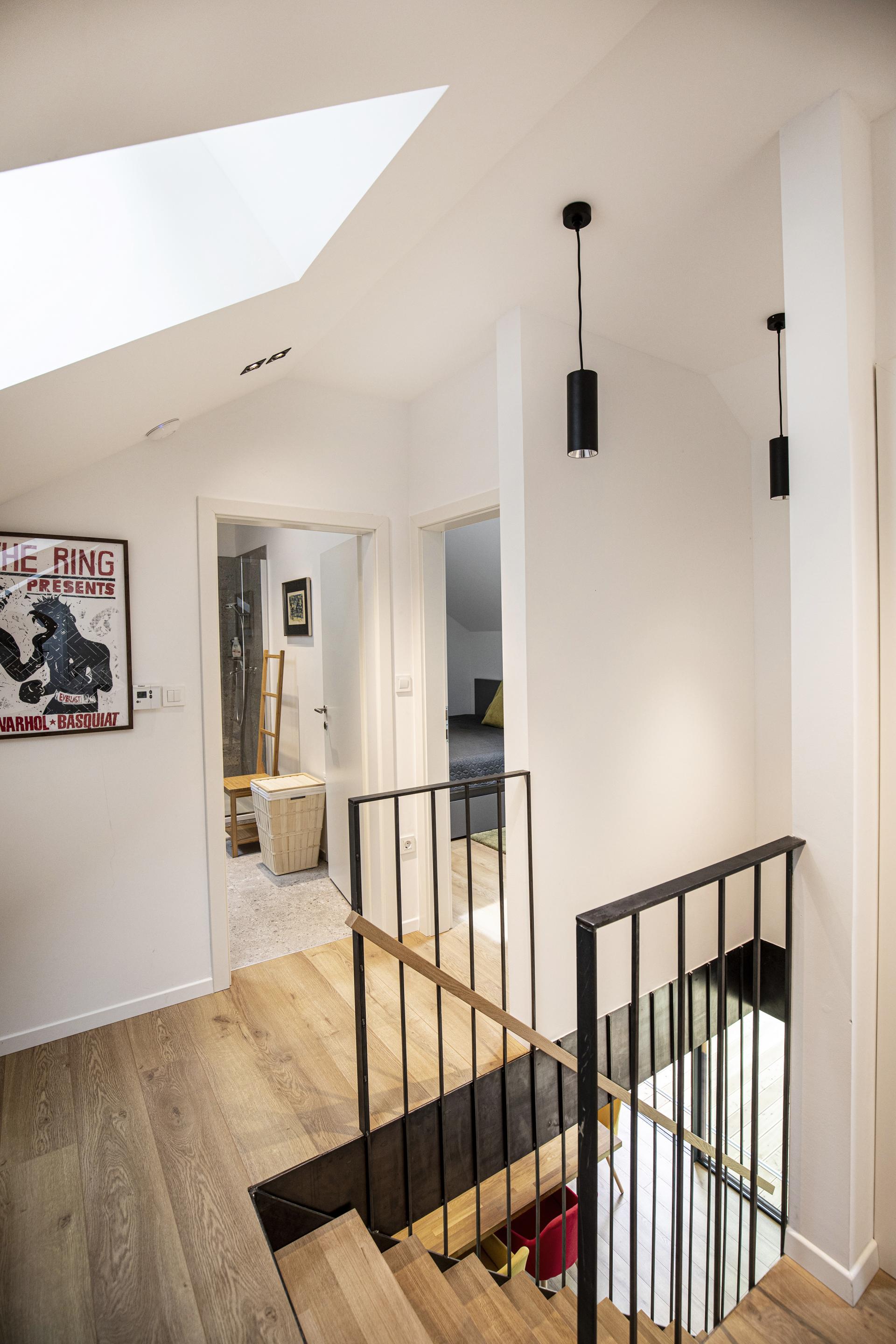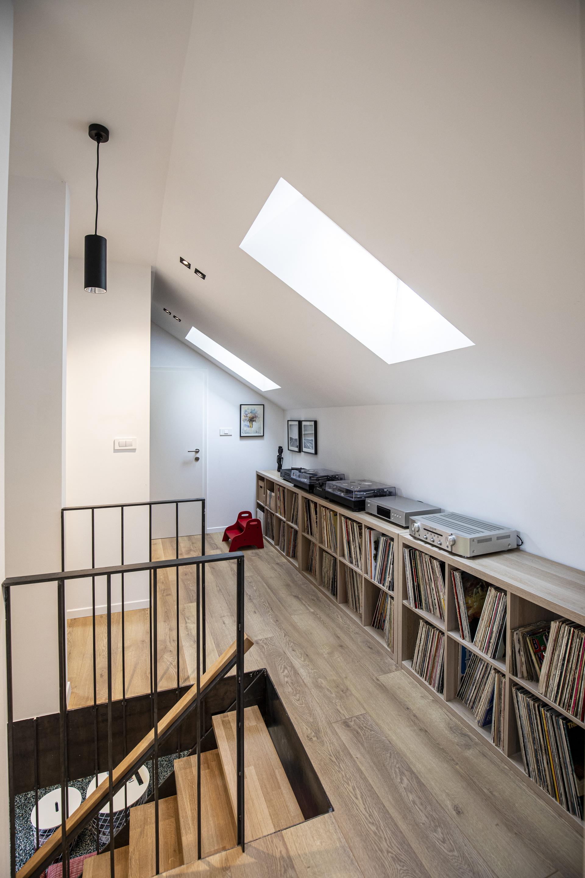 - Dualni odnos prema ambijentu je glavna tema projekta. Fokus cijelog dnevnog dijela u prizemlju je na staklenoj stijeni koja se pruža gotovo cijelom dužinom kuće, preko koje se unutarnji prostor otvara prema livadi i šumi, pružajući spektakularni pogled. Nasuprot tome, spavaći prostori u potkrovlju su introvertni: u njima se veza s okolinom reducirala na pogled na nebo kroz niz krovnih prozora - navodi projektant Mislav Muršić, arhitekt u Urbanim idejama.