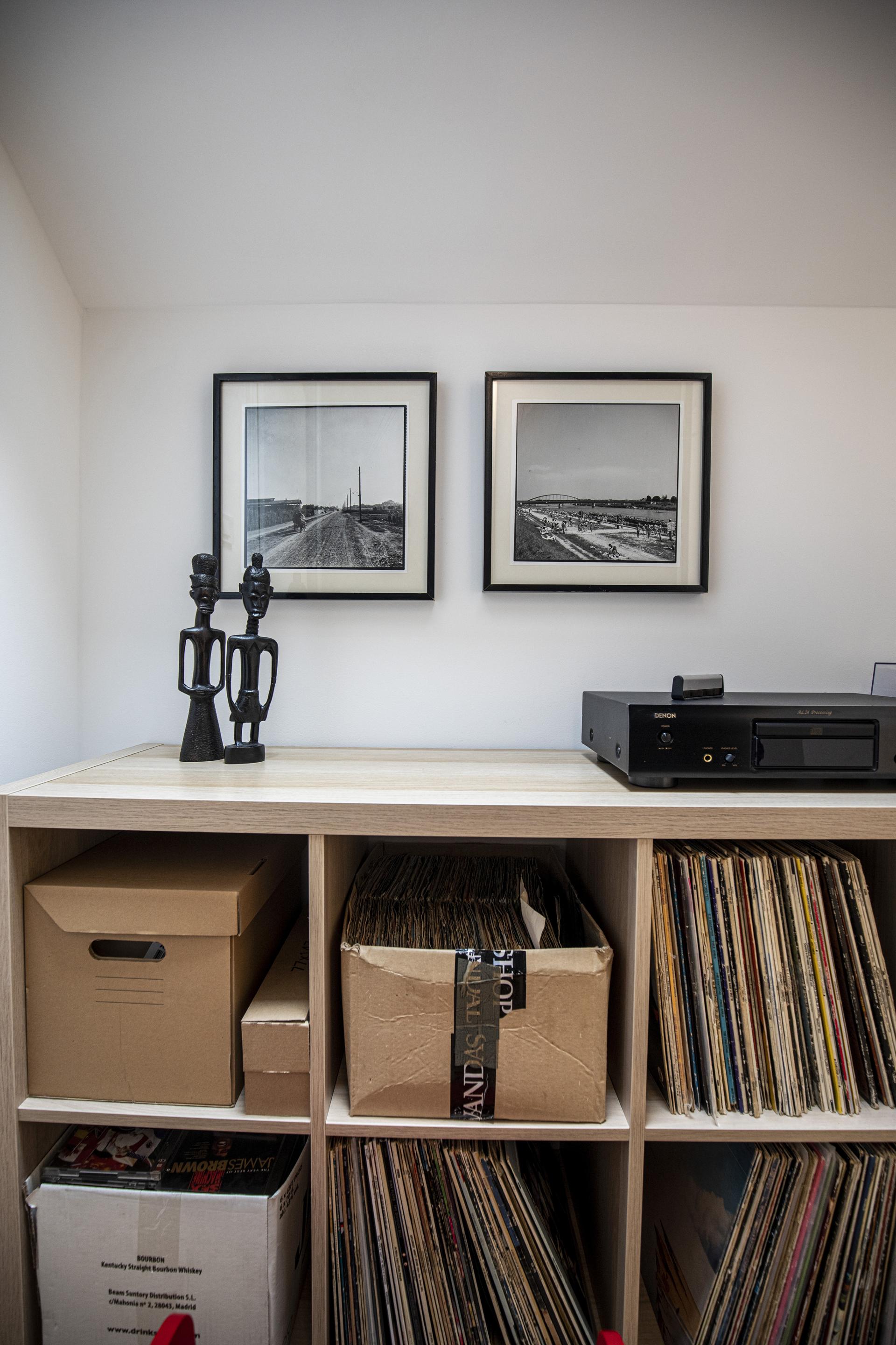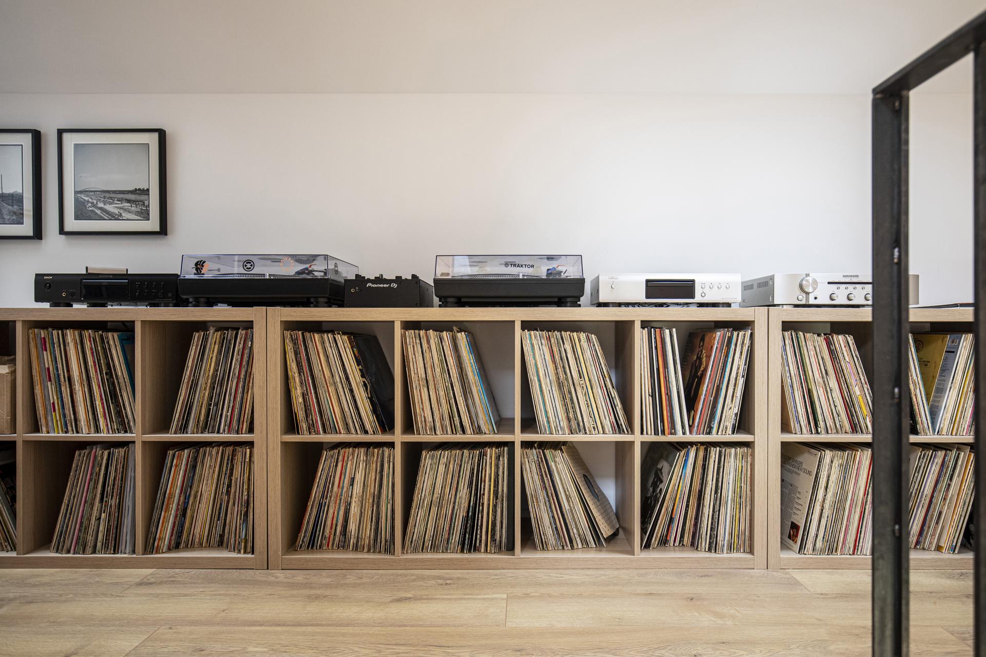 Unutrašnjost je uređena šarmantno, no u urbanom stilu. Nekoliko je zabavnih detalja, kao što je plakat filma “Leon profesionalac” u jednoj spavaćoj sobi, odmah do više od metra visoke skulpture Dartha Vadera. U lounge prostoru gornje etaže nalaze se dugačka polica s kolekcijom ploča i DJ pult. Kuća je ispunjena odličnim fotografijama, kao što su ona Johnnyja Štulića od našeg kultnog fotografa Ivana Posavca i fotografija kamenica u Stonu snimljena iz zraka Davora Rostuhara. U dnevnom boravku ima raznog namještaja, od onog iz Ikee do custome-made stola uz kuhinju i lampe Mikelić Vreš. Ističe se središnje stepenište od crnog željeza u kombinaciji s hrastovim nagaznim plohama.