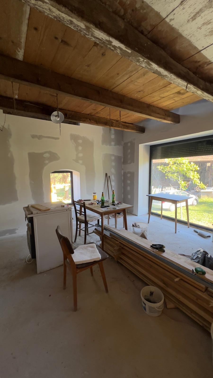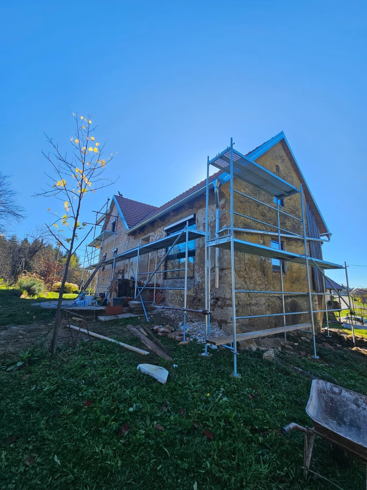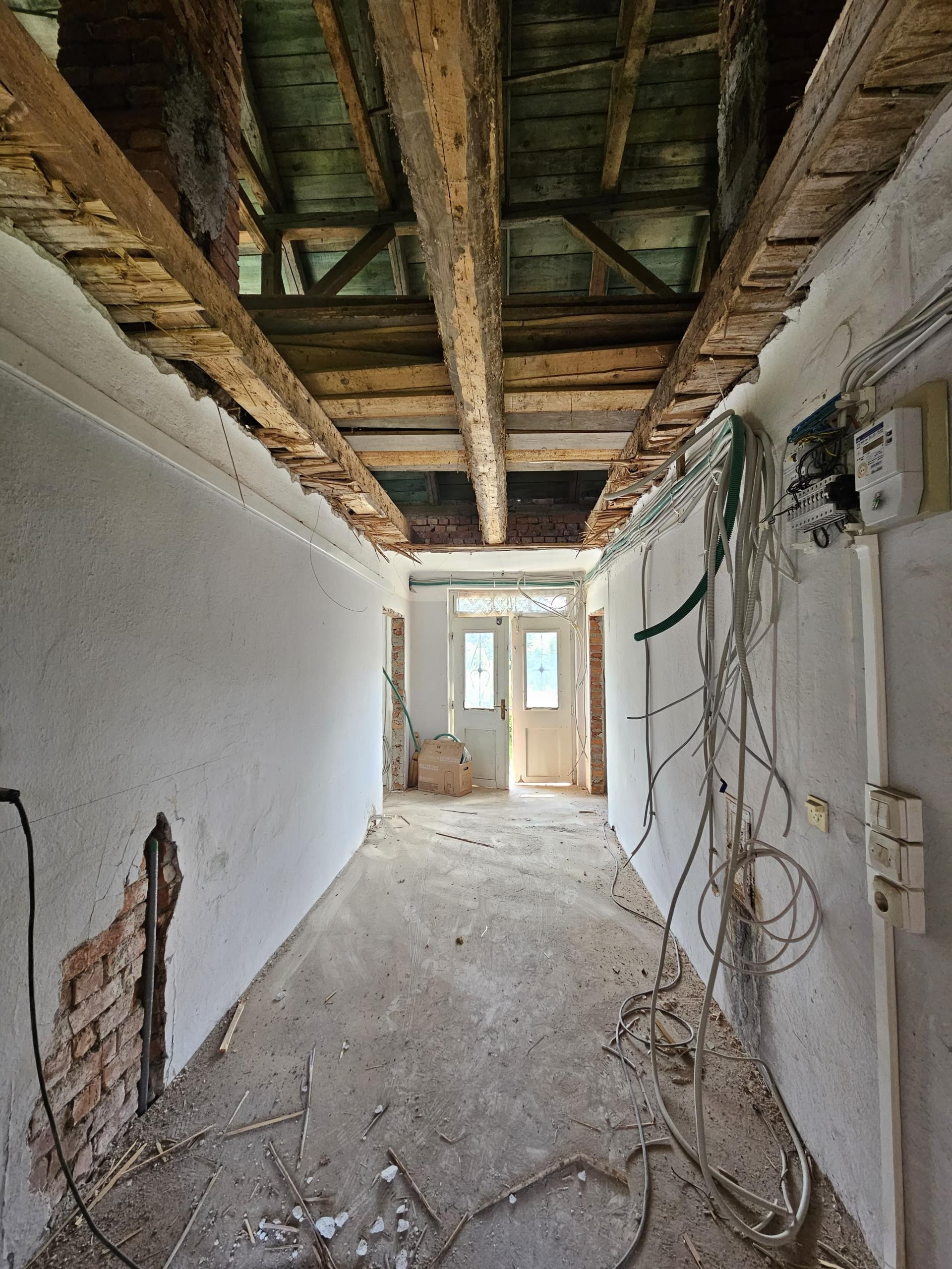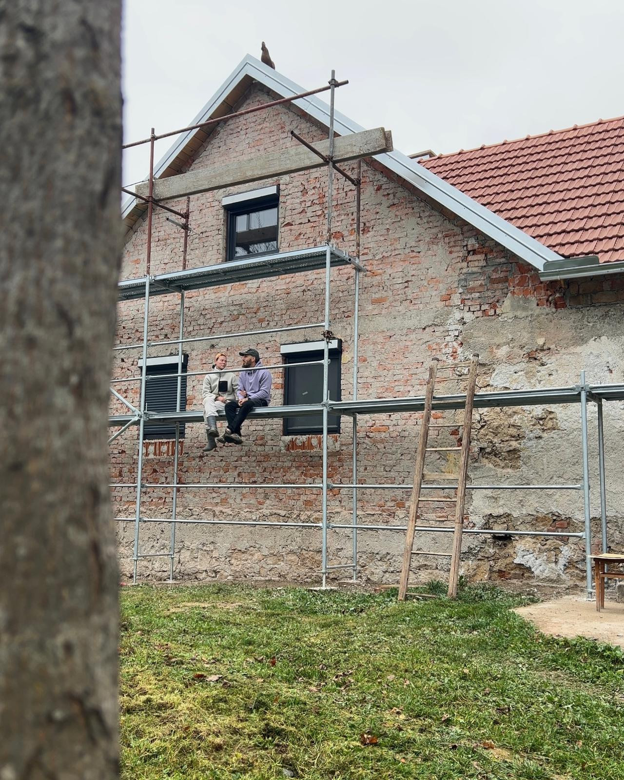 Dosad su odradili gotovo sve "teške" građevinske faze: nova septička i odvodnja; nove instalacije vode, struje i grijanja; statička ojačanja; novo krovište; ugradnja stolarije; glazure; drveni pod u potkrovlju; knauf; iskop dvorišta za provlačenje instalacija do sjenika...