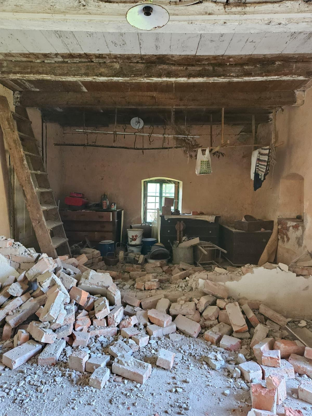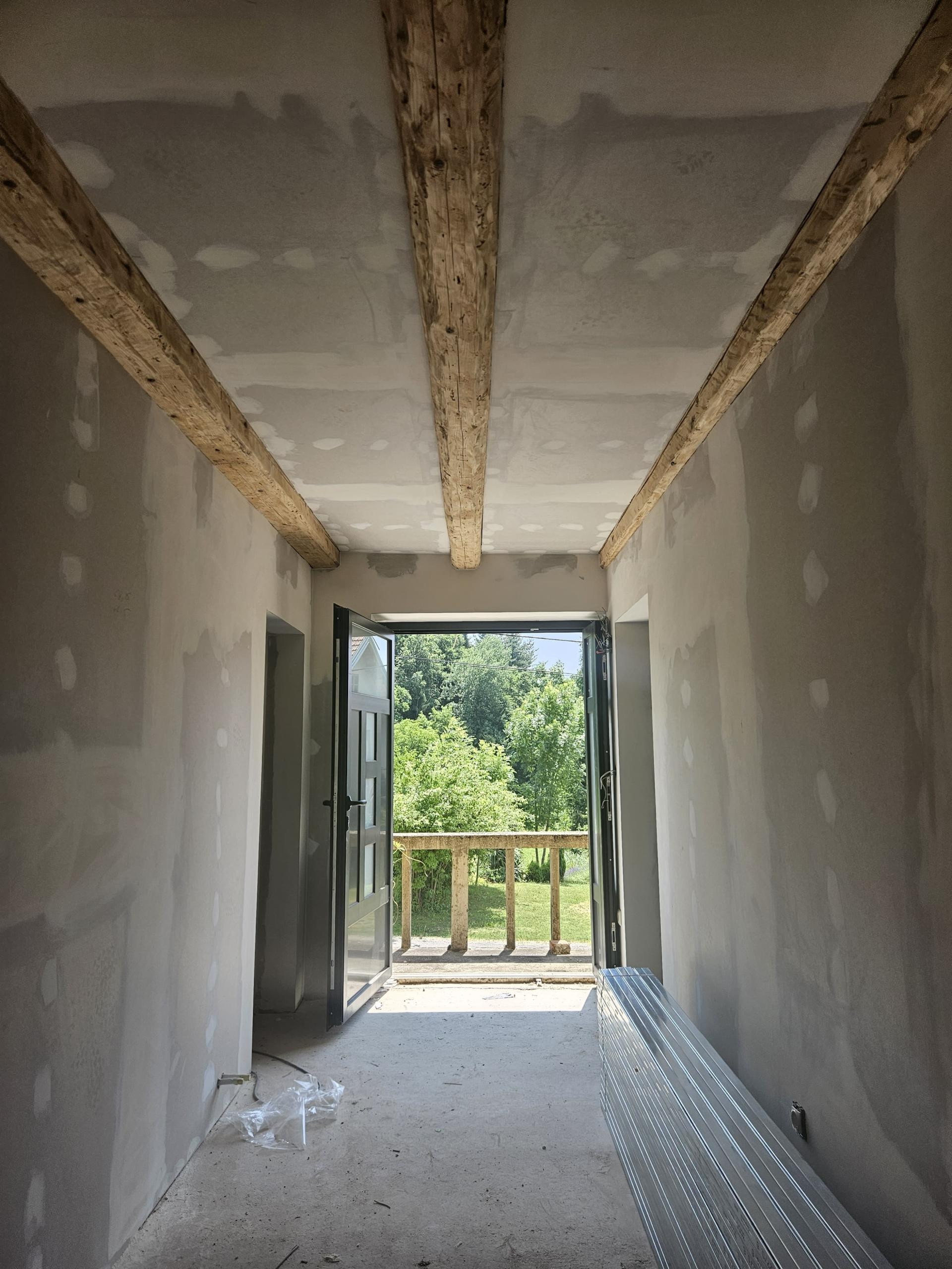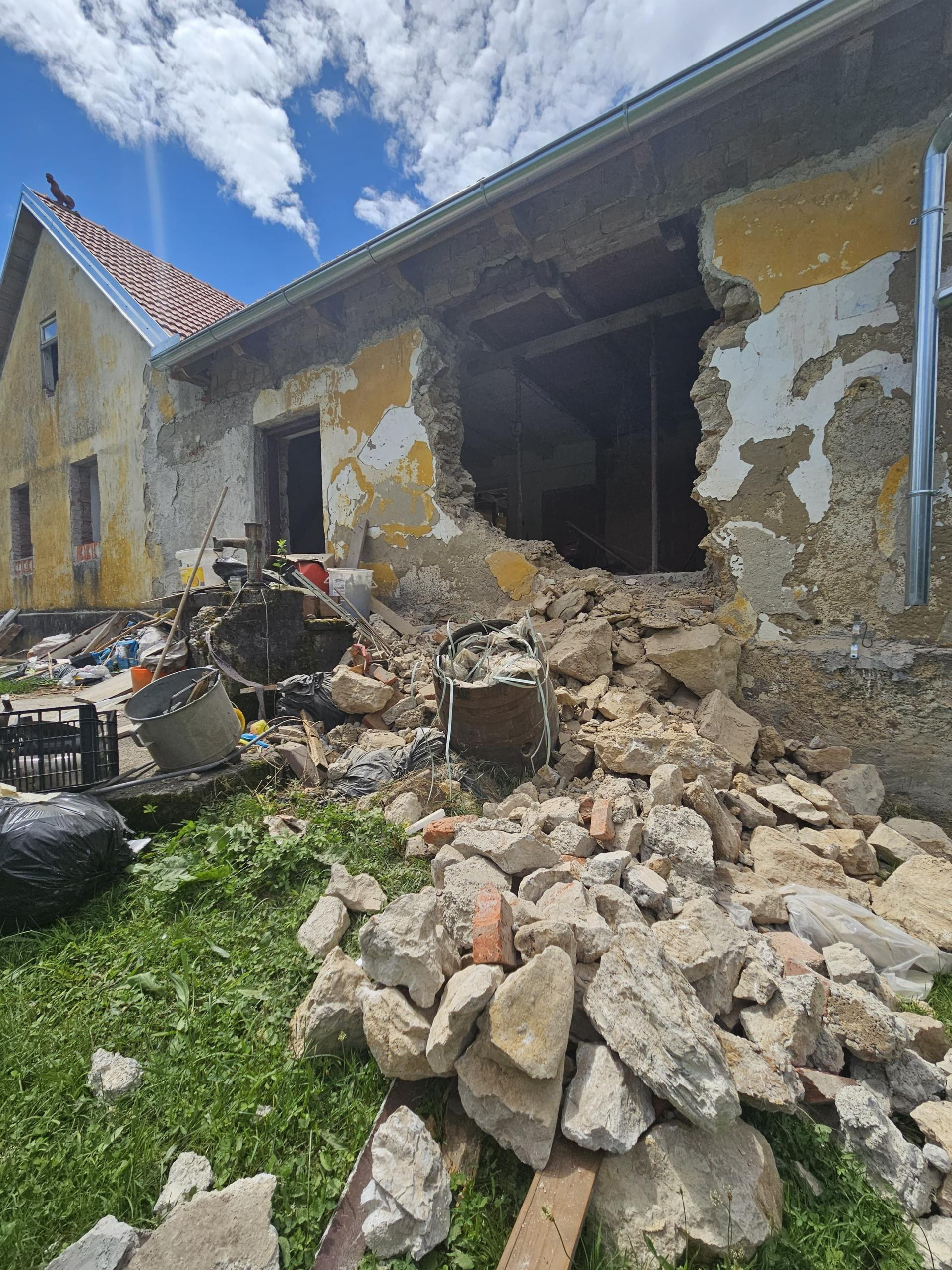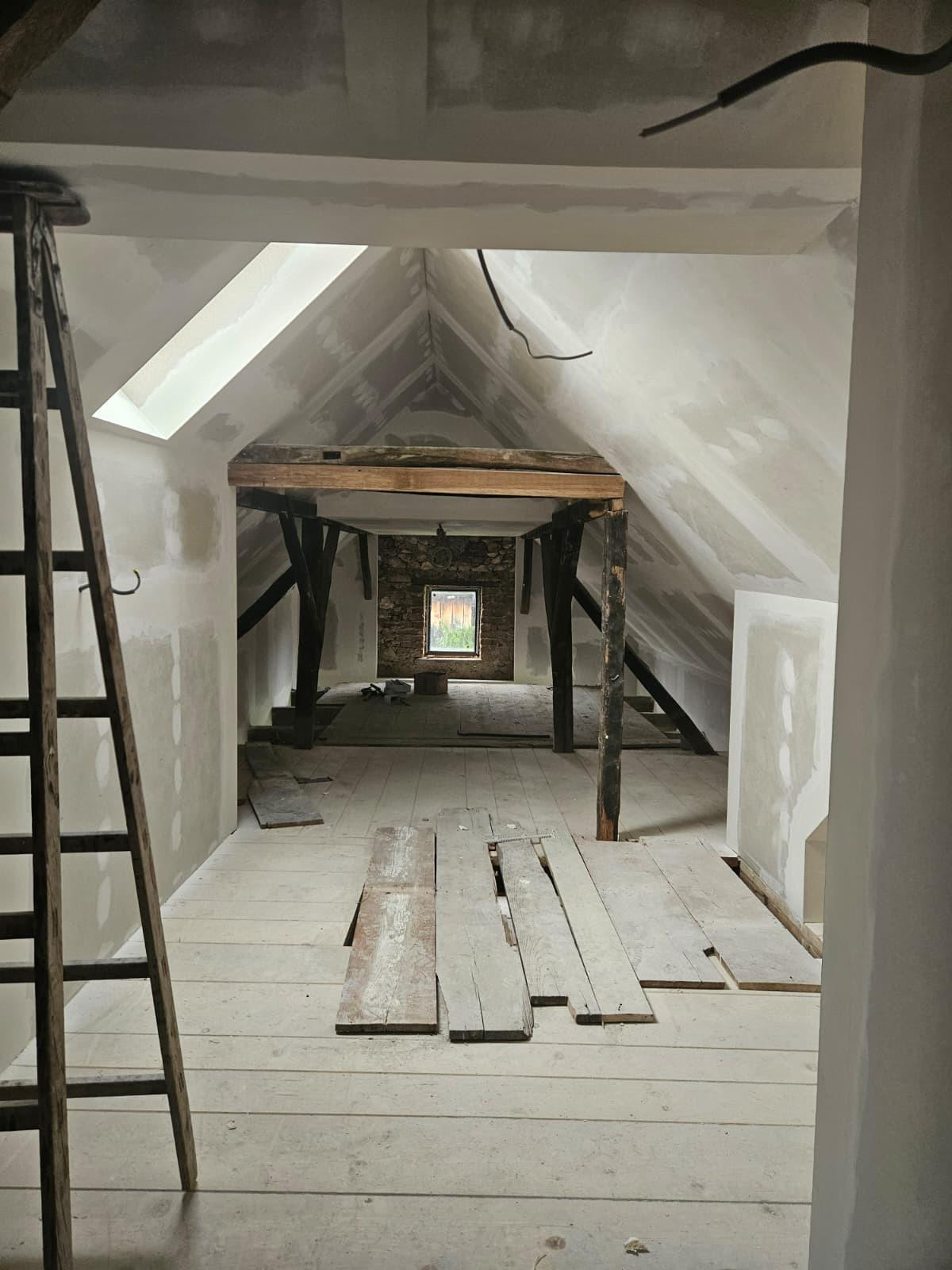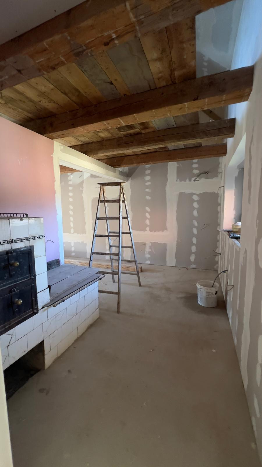 Dosad su odradili gotovo sve "teške" građevinske faze: nova septička i odvodnja; nove instalacije vode, struje i grijanja; statička ojačanja; novo krovište; ugradnja stolarije; glazure; drveni pod u potkrovlju; knauf; iskop dvorišta za provlačenje instalacija do sjenika...