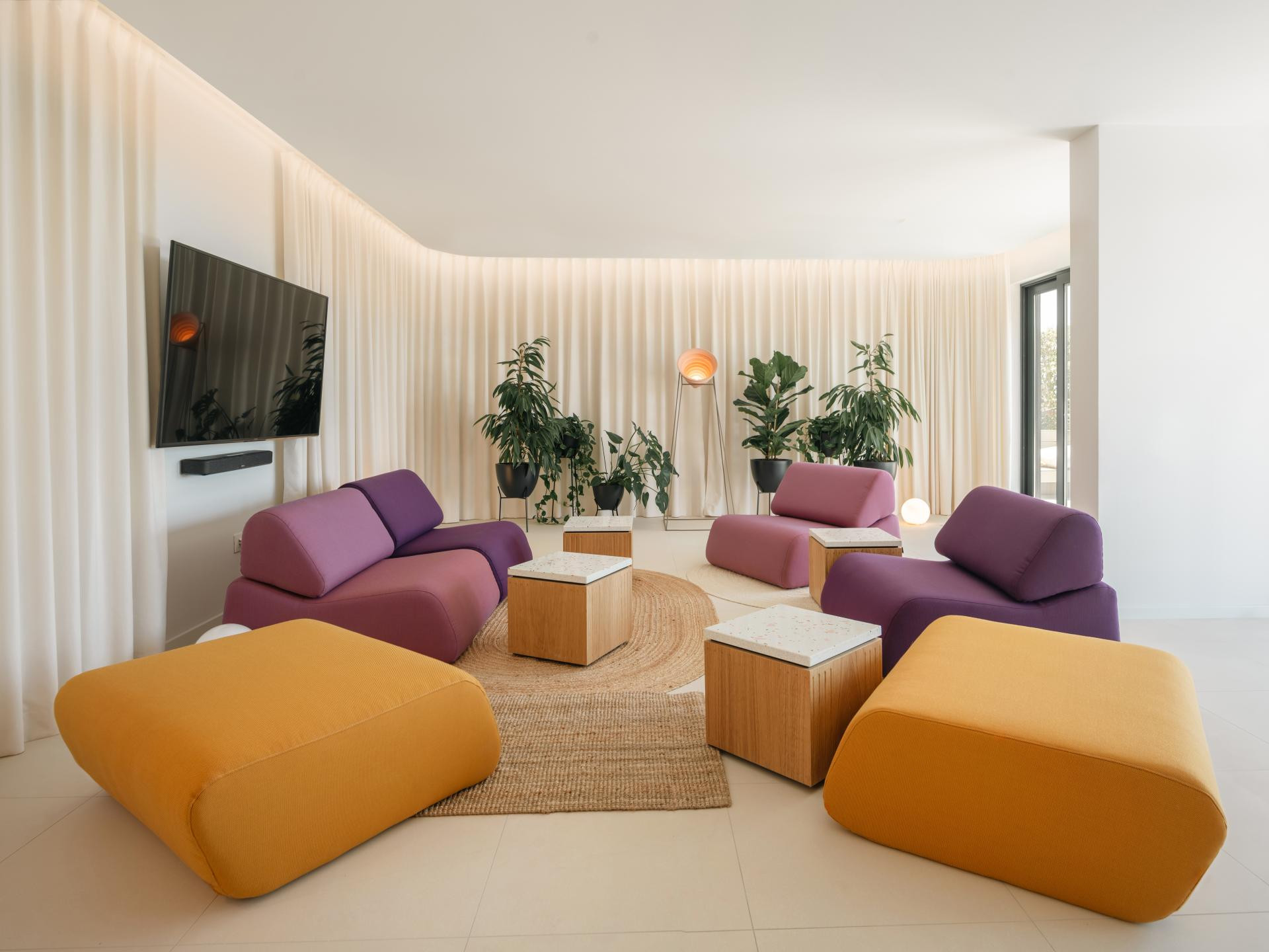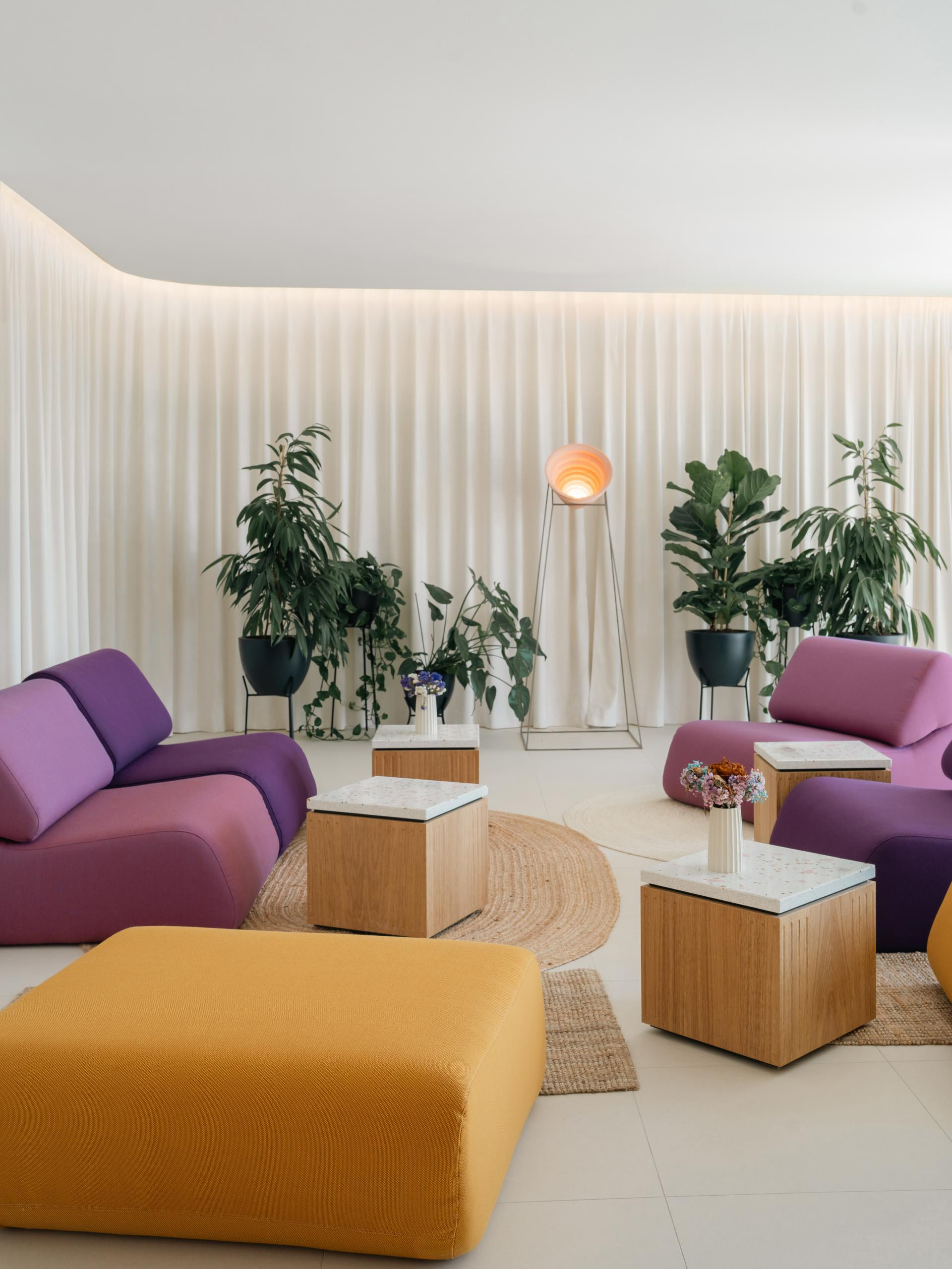 Interijer je inspiriran bujnom dalmatinskom vegetacijom: prevladavaju jarke nijanse ljubičaste, žute i zelene. Jedina boja koju priroda nije ponudila u cvijeću, crvena, korištena je za isticanje ključnih "arheoloških" arhitektonskih elemenata.