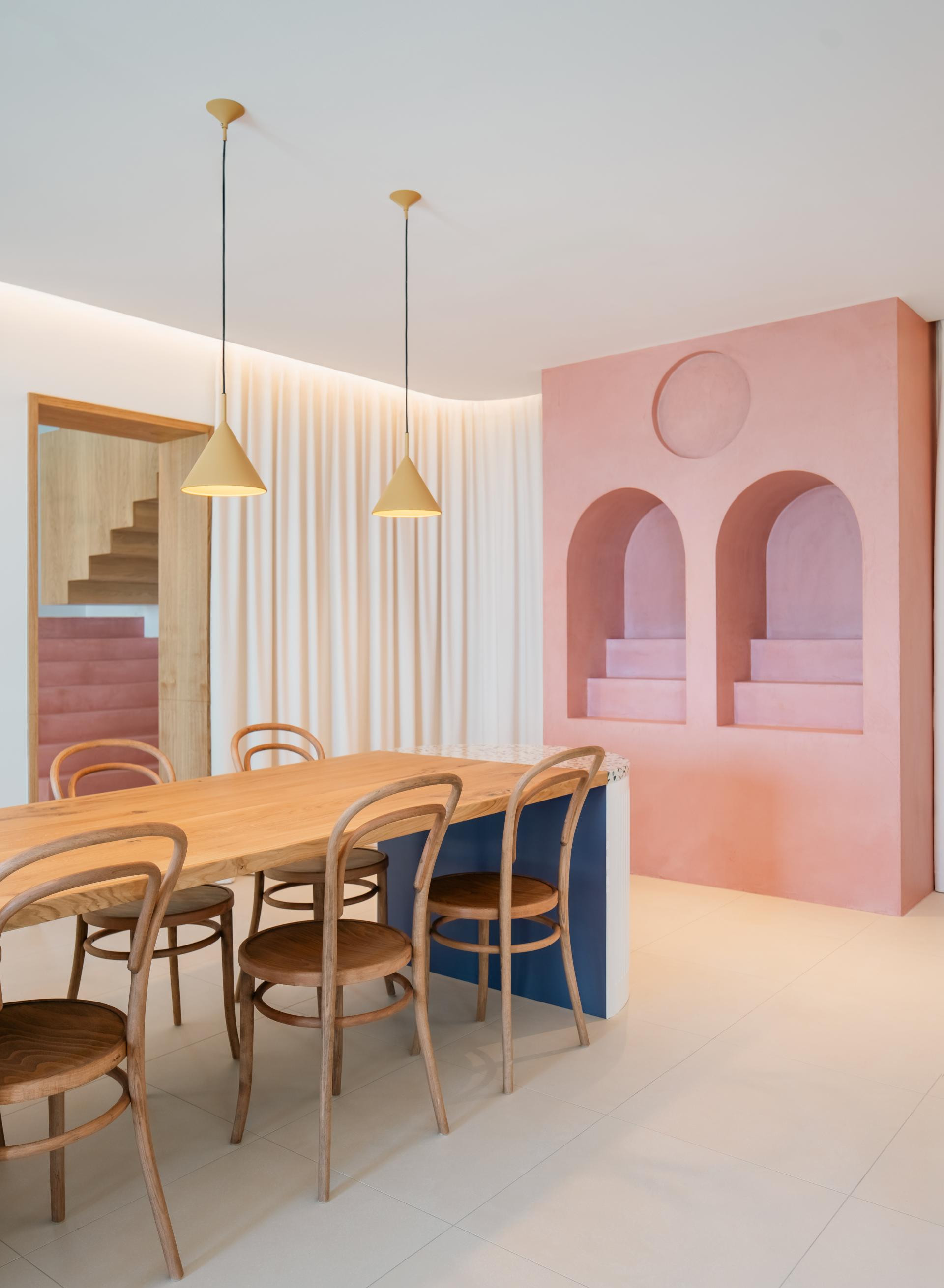 Ako bih morao sažeti prostor u jednoj rečenici, bila bi to: "Igralište za božicu Floru." Ta mi je misao omogućila da se opustim, zaboravim na sva pravila i prepustim nestrukturiranoj igri u interijeru - priča arhitekt Furčić i otkriva da se u kući u prizemlju nalaze kuhinja, blagovaonica, boravak i spa zona dok je na katu pet spavaćih soba, od kojih svaka ima vlastitu kupaonicu. Svaka prostorija je specifična po nečemu.