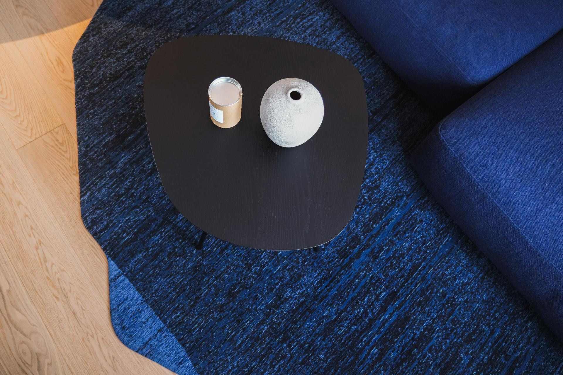 "Mnogi se pitaju zašto plava. Plava je zbog mora, ona nam je u prostor unjela dašak eksterijera, pogled na more sam po sebi definirao je boju, stoga se i za tepih izabrala plava boja, kako bi dobili jednu cjelinu i izbjegli cjepkanje prostora koji sam po sebi nije velik. Tek nepravilna forma tepiha kao i klub stolića daju dašak dinamike."