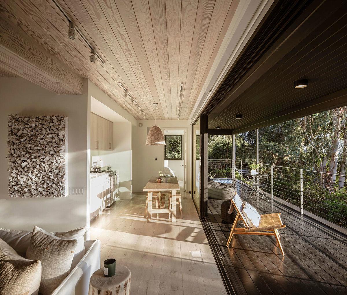 Mogu se proizvesti u tvornici i sastaviti na gradilištu u najkraćem mogućem roku. Danas donosimo priču o jednom takvom projektu u Kaliforniji studija Connect Homes. To je dvokatnica sa stambenim prostorima na gornjoj i garažom na donjoj etaži. Prema ideji klijenata, dizajn interijera spaja prirodnu estetiku japanskog stila i lakoću skandinavskog življenja. Terasa s pogledom na šumu i grad lijep je bonus u ovom vrlo kompaktnom, ali ugodnom domu.
