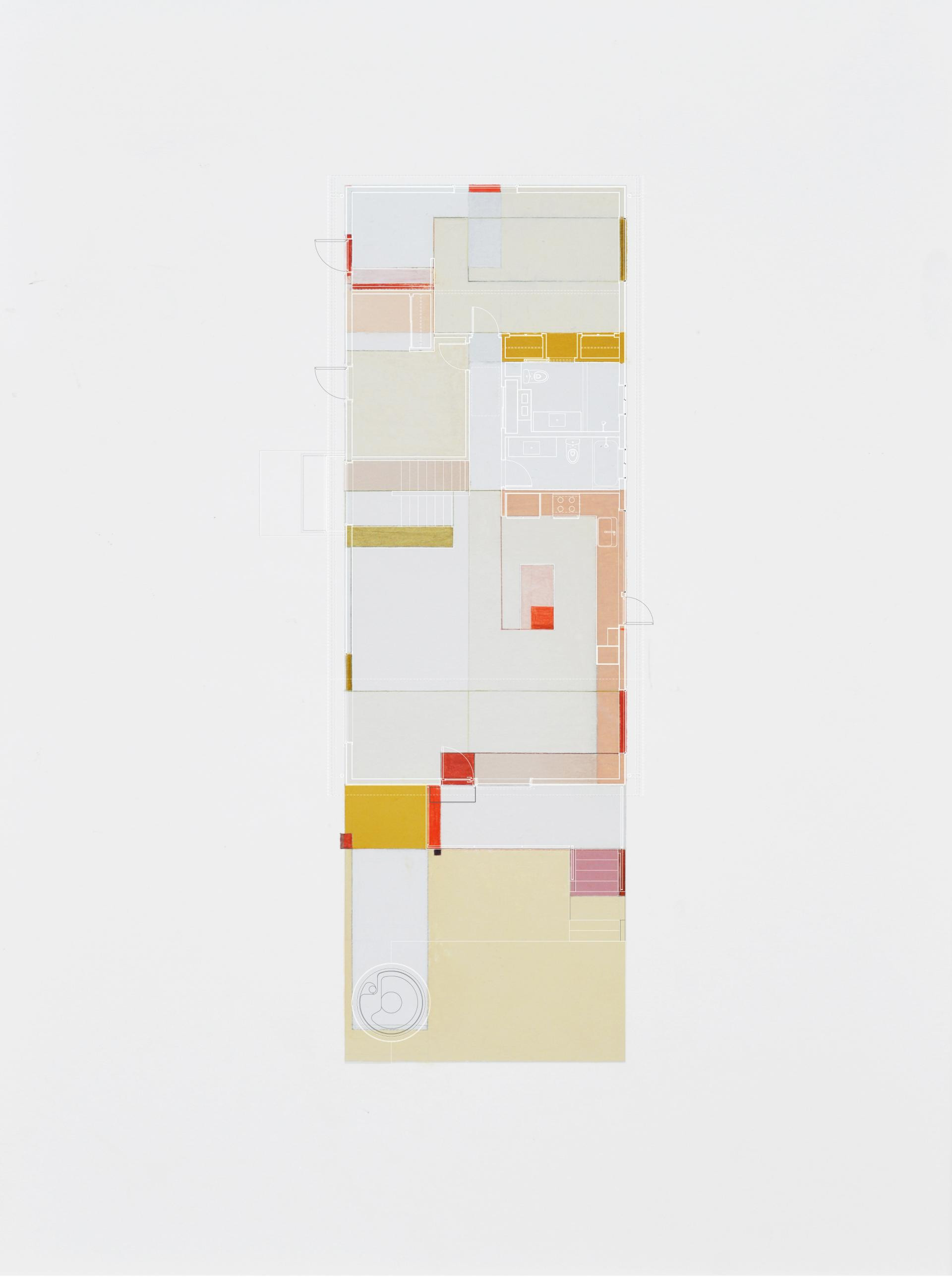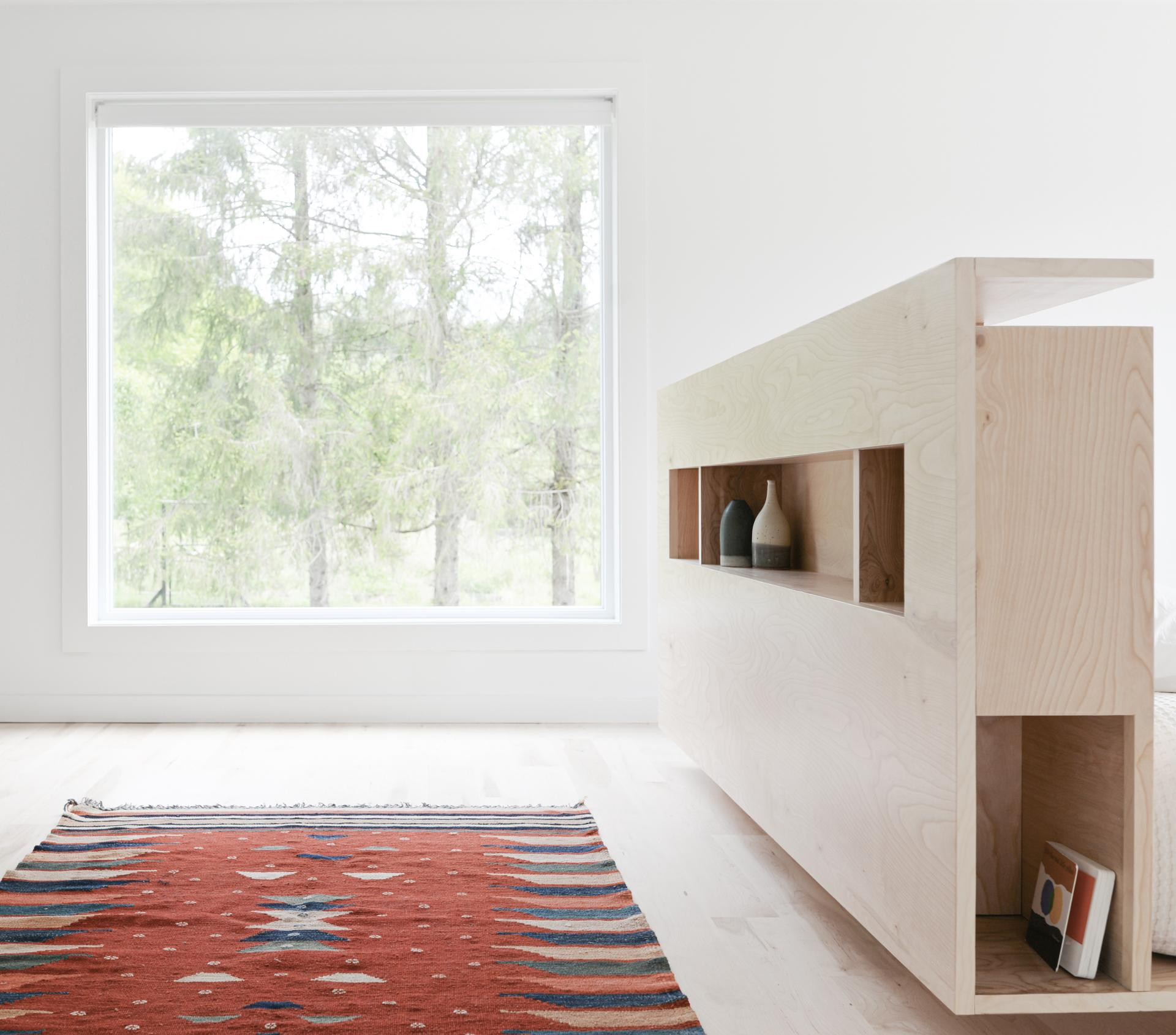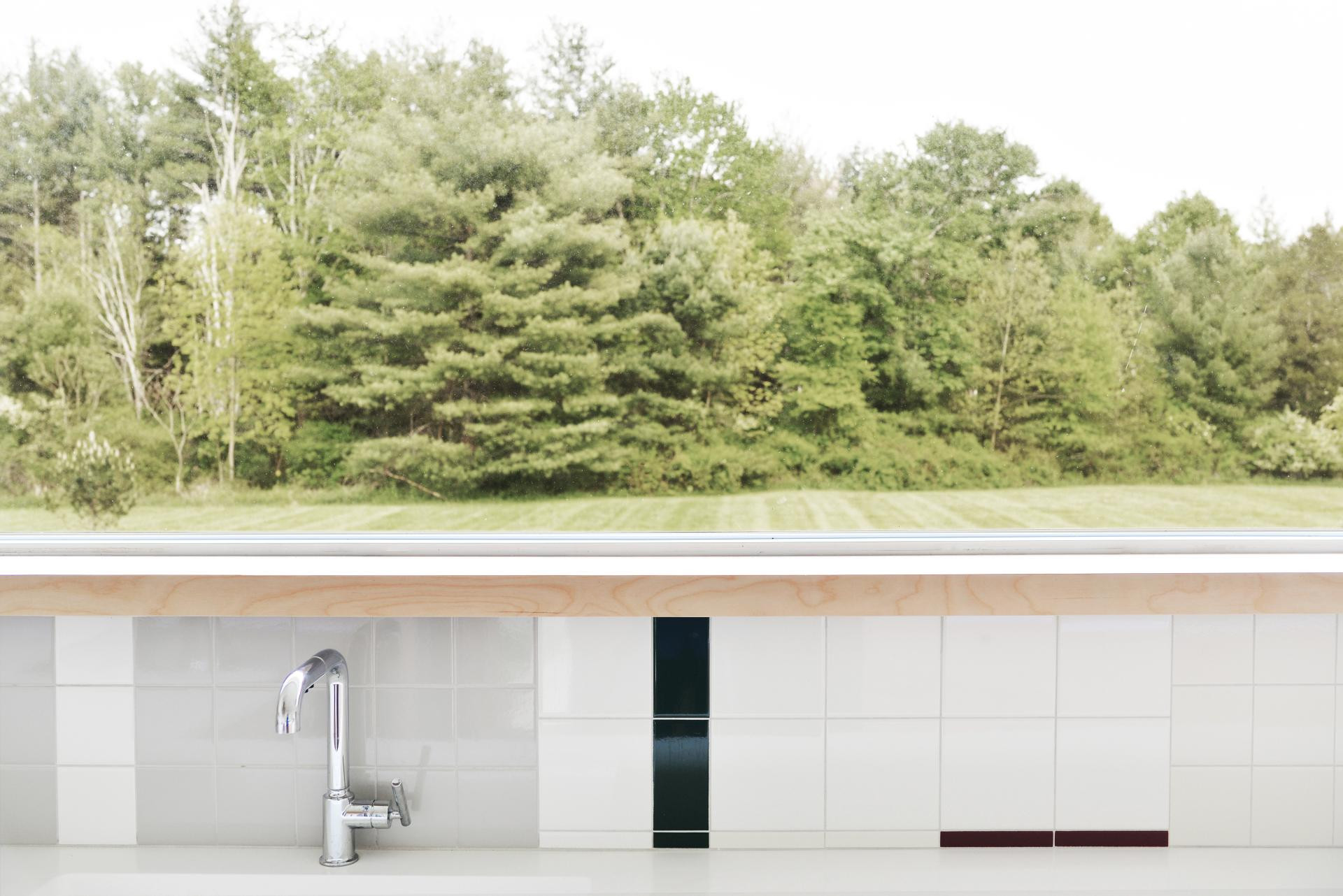 Unutarnji hodnik je skraćen stvaranjem glavne spavaće sobe s pogledom na vrt na istočnoj strani kuće. Posebno dizajnirani krevet strukturira prostor unutar glavne spavaće sobe, održavajući privatnost i urednost u dijelu za spavanje, te otvorenost i protočnost u radnom i garderobnom prostoru. Kuhinja, blagovaonica i dnevni boravak otvoreni su kako bi stvorili veliki fleksibilni društveni prostor koji je vizualno povezan s glavnim obilježjima imanja, poput velikog stabla na zapadu i šumskog ruba na jugu. Uzorak za posebnu keramičku oblogu iza kuhinjskog pulta nastao je kao interpretacija studija tlocrta provedenih tijekom procesa projektiranja.