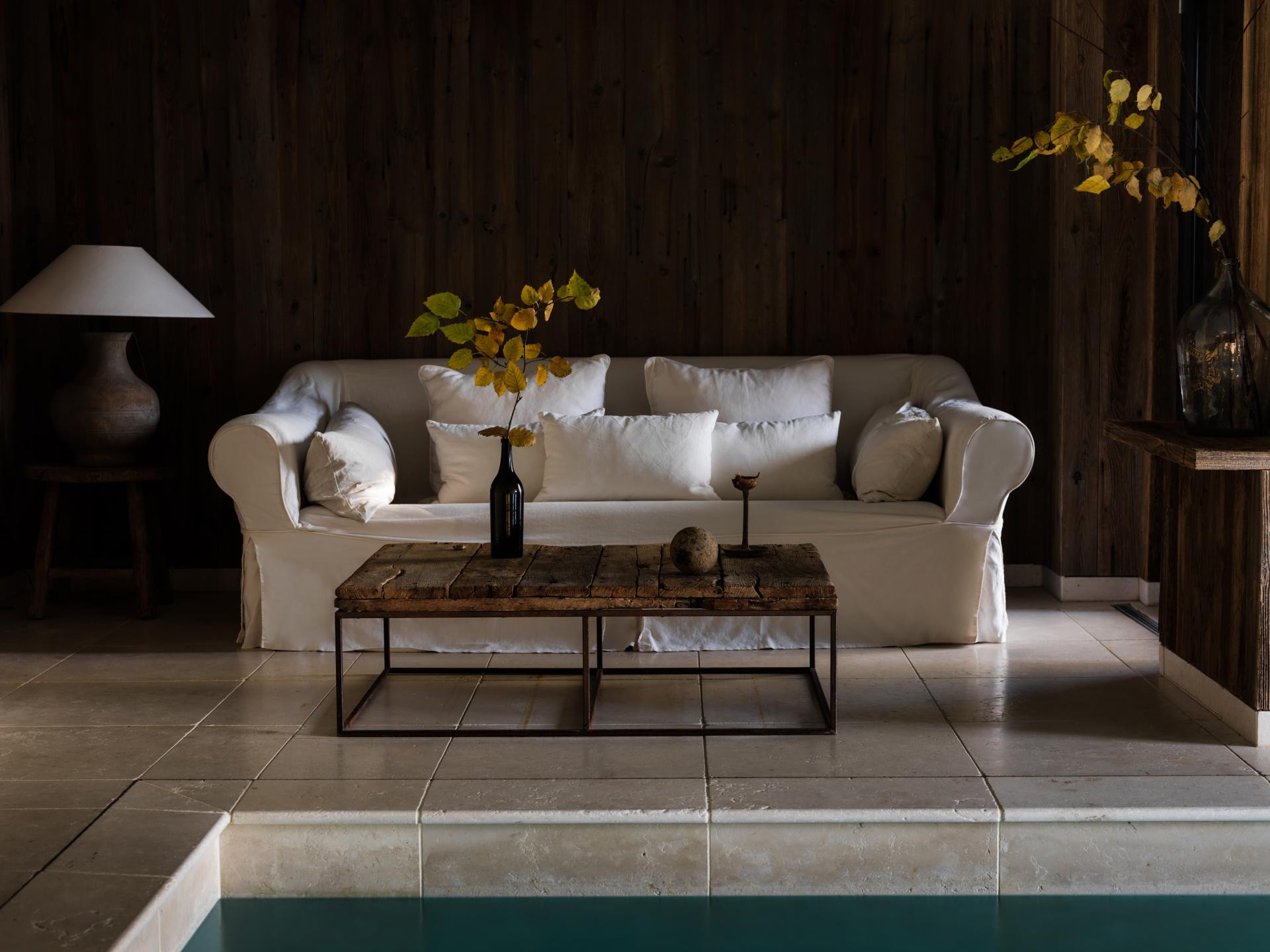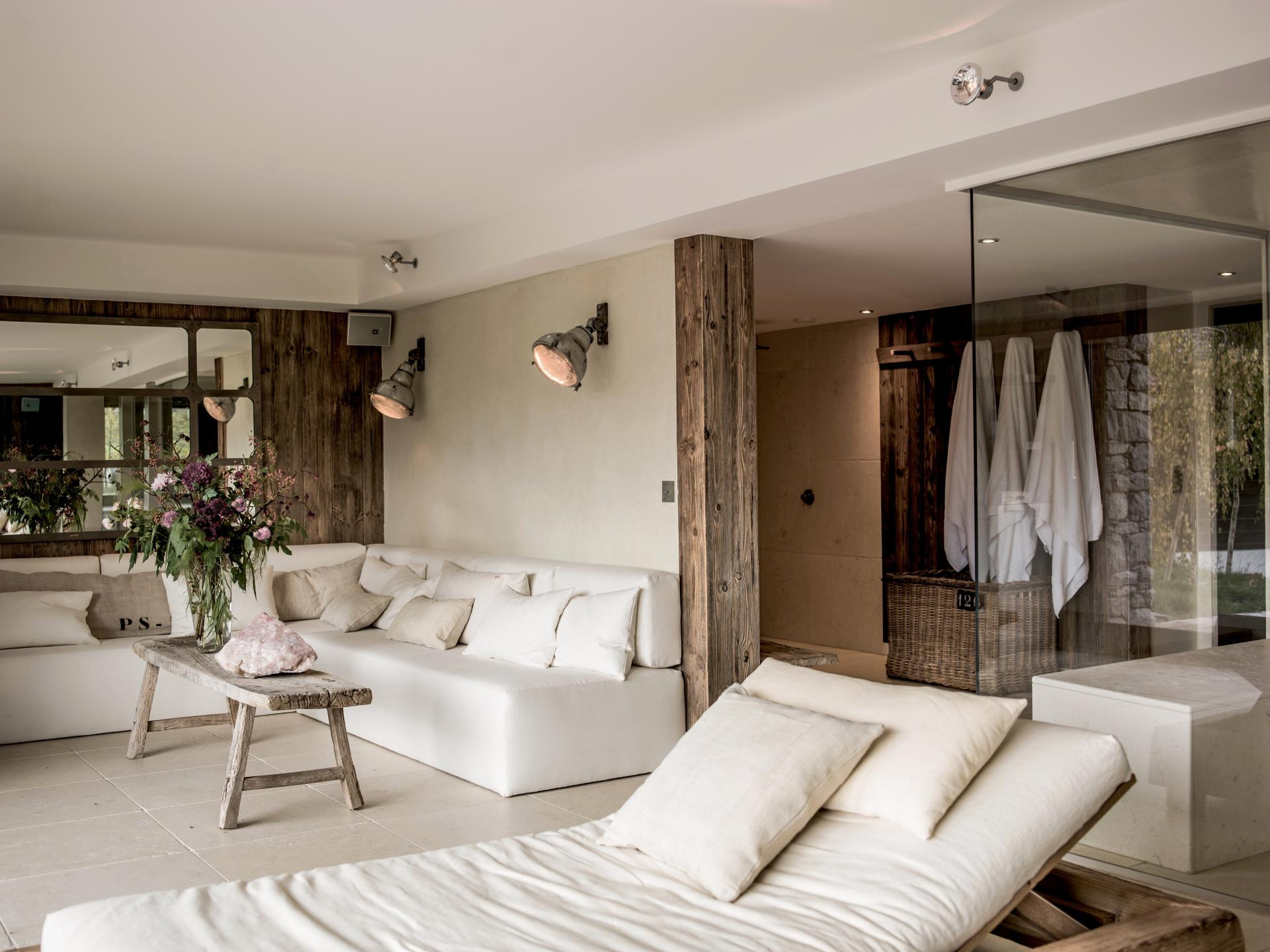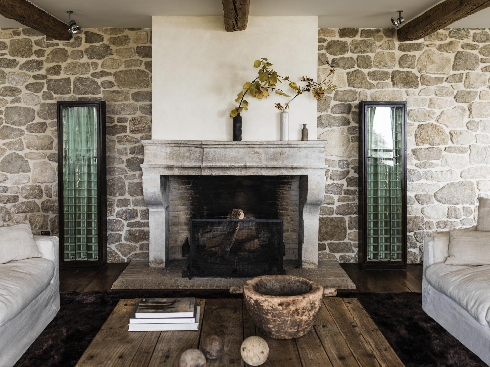 U glavnim dnevnim prostorima nalaze se po mjeri izrađeni kauči od belgijskog lana, kombinirani s klub stolićima izrađenima od obnovljenog drva. Kamini iz prošlih stoljeća pažljivo su restaurirani i ponovno ugrađeni s istom namjenom. U blagovaonici, stari cinkani oluk iz poljoprivredne namjene prenamijenjen je u efektan viseći rasvjetni element iznad drvenog stola impozantne dužine od 4,5 metra.