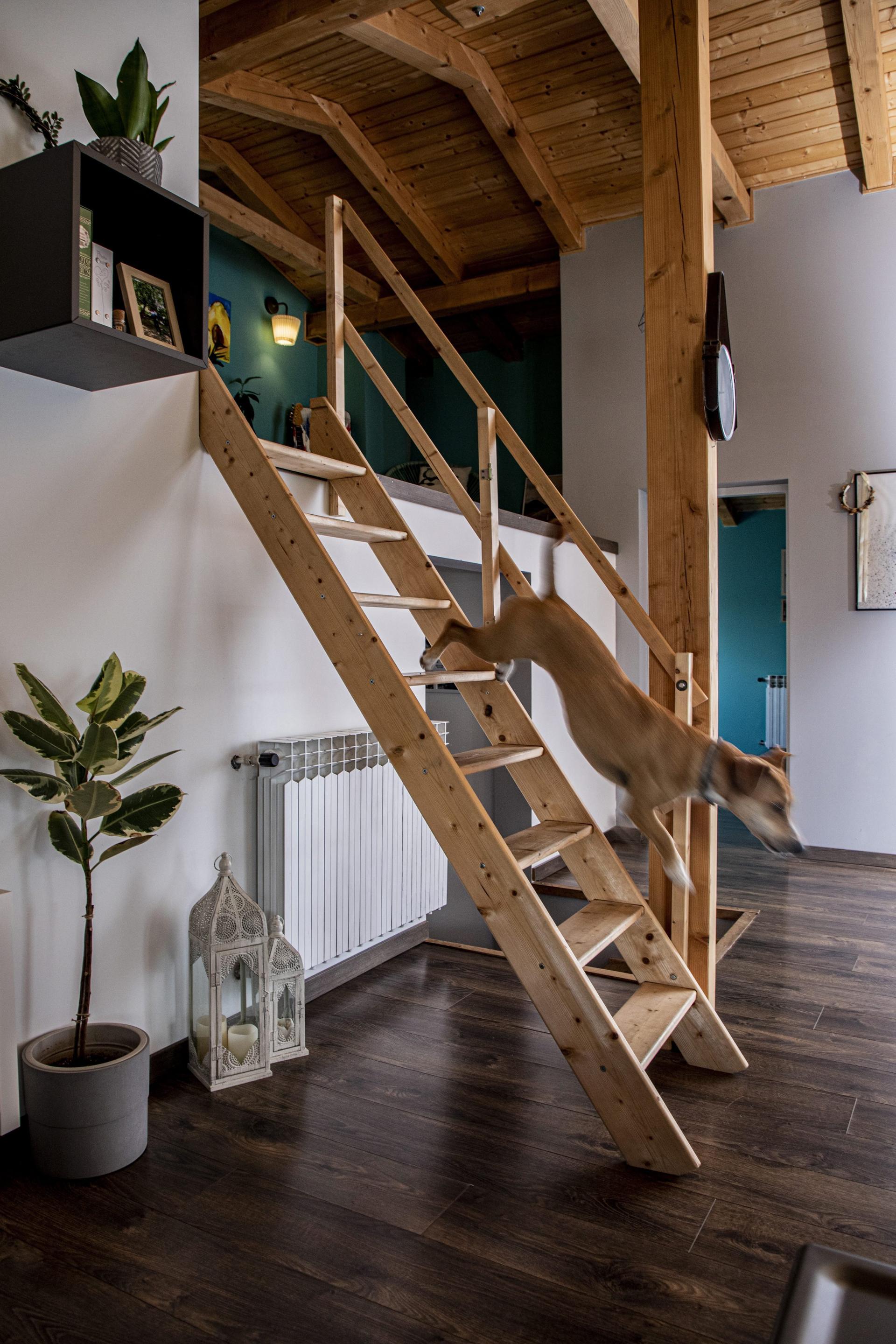 - Ovo je nekadašnja kuća Mislavove prabake u kojoj je njegov otac imao autoradionicu, tako da su dvorište i tavanski prostor, koji smo preuredili u naš dom, služili kao odlagalište automobilskih dijelova. Prvo smo tri mjeseca samo čistili i čistili, iznosili automobilske gume i ostale autodijelove s tavana u dvorište, a tek kad smo raskrčili dvorište, mogla je doći građa za krov. Tavanski prostor bio je otvorenog tipa s jednim nosivim zidom, bez instalacija, a od njega su ostala samo postojeća četiri zida. Demontirali smo staro krovište s azbestnim pločama i povisili ga u odnosu na zatečeno stanje za metar i pol, na visinu od četiri metra. To nam je dalo mogućnost i galerijskog prostora, iako on prvotno nije bilo u planu - kaže Adriana, dodajući kako je Mislav vješt s alatom pa su puno toga i sami izveli.