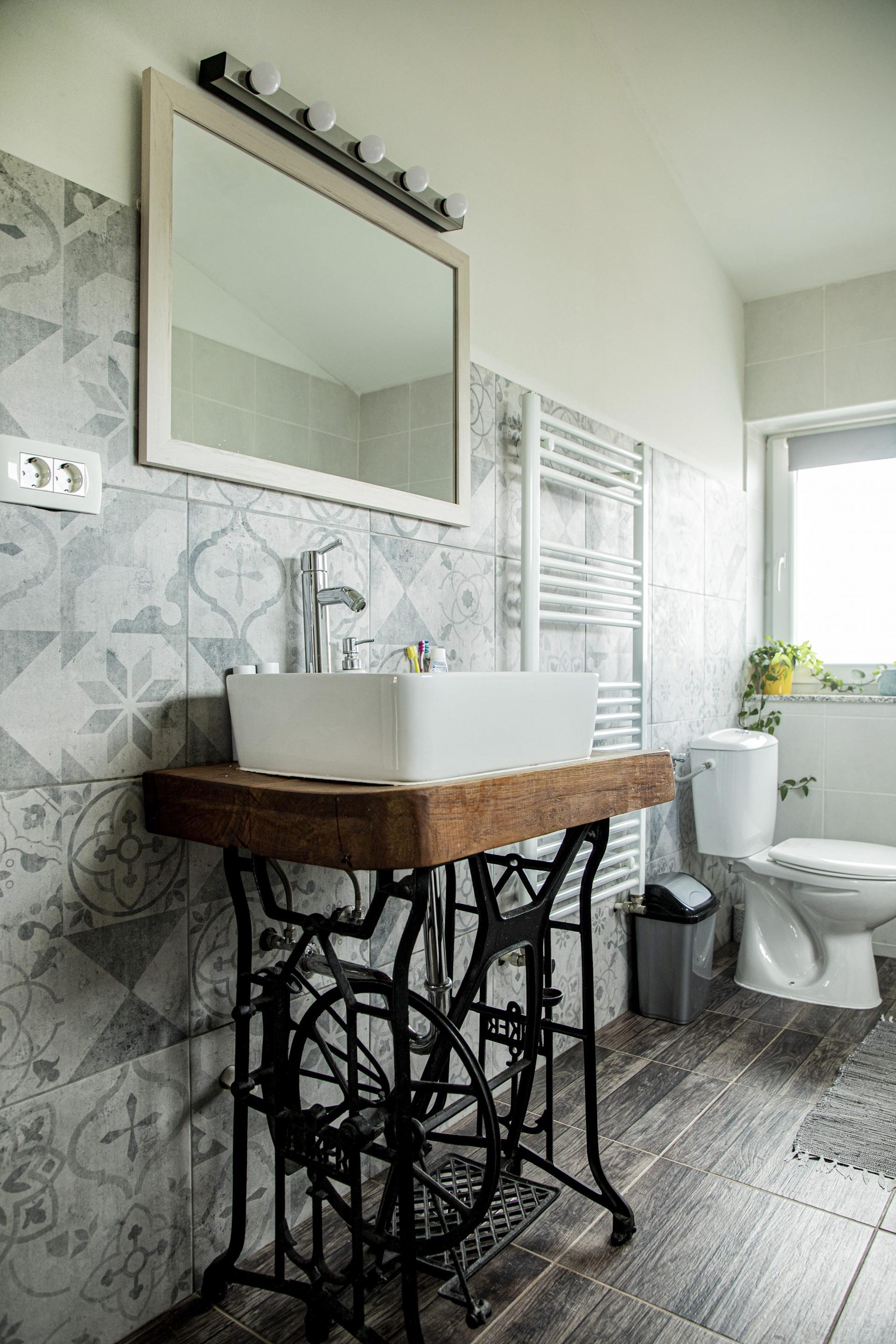 - Kutna kuhinja je rađena od medijapana u dužini 3,5 x 3 metra, a veliki otok se pokazao izvrsnim kao skladišni prostor jer da nema njega, kuhinja bi nam bila premala - kažu, dodajući kako se dobrom odlukom pokazalo i postavljanje pločica u zoni kuhinje zbog prolijevanja, dok je u ostatku stana laminat. Dio namještaja, poput blagovaonskog stola i kutne garniture u boravku, donijeli su iz prijašnjeg stana u kojem su živjeli. Komodu retro dizajna na galeriji dobili su na poklon za vjenčanje, a riječ je o izložbenom komadu koji je nekad krasio izlog jedne trgovine. U kupaonici bez tipičnog kupaonskog namještaja, s kadom i tuš-kabinom, ističe se stara singerica koja je iskorištena kao postolje umivaonika.