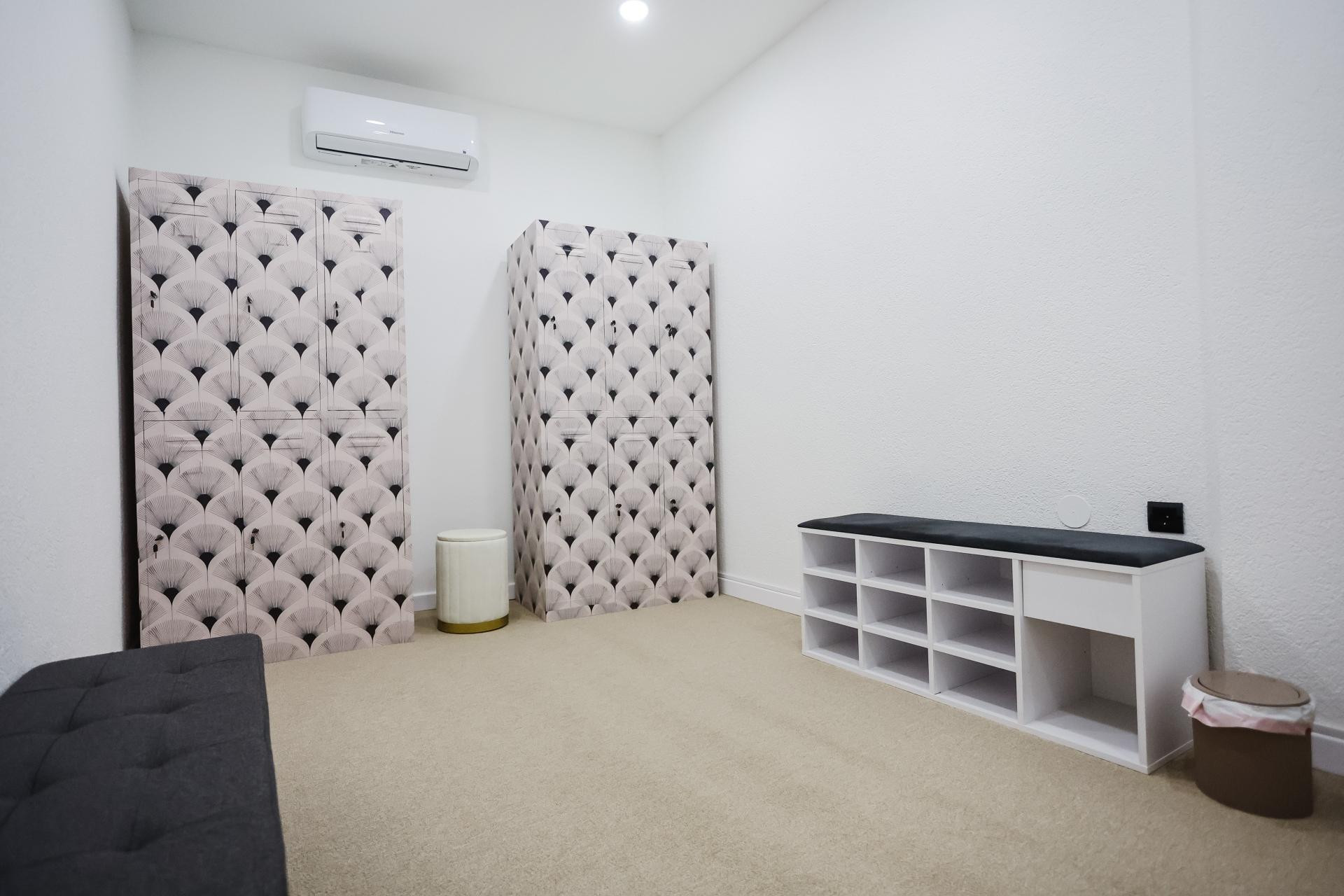 Ističe se i promišljeno oblikovana zona za pomoćnu opremu s loptama, utezima, trakama, obručima i slično: materijali, volumeni i boje pažljivo su usklađeni tako da ne narušavaju mirnoću prostora.