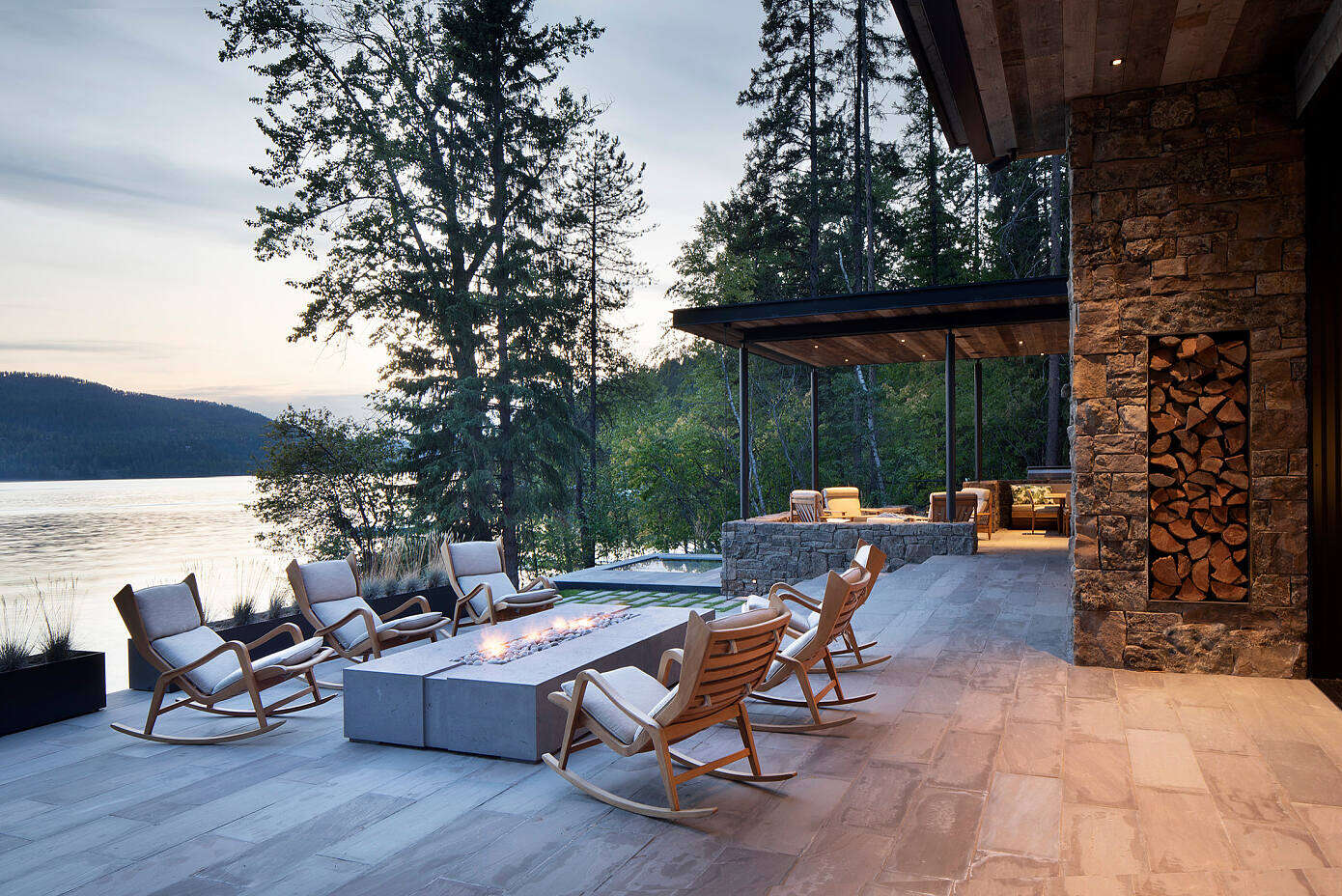 Zanimljiv je i sam eksterijer koji, osim dakako predivnog pogleda na jezero, ima i popločeno dvorište te prostranu terasu za opuštanje nakon napornog dana.