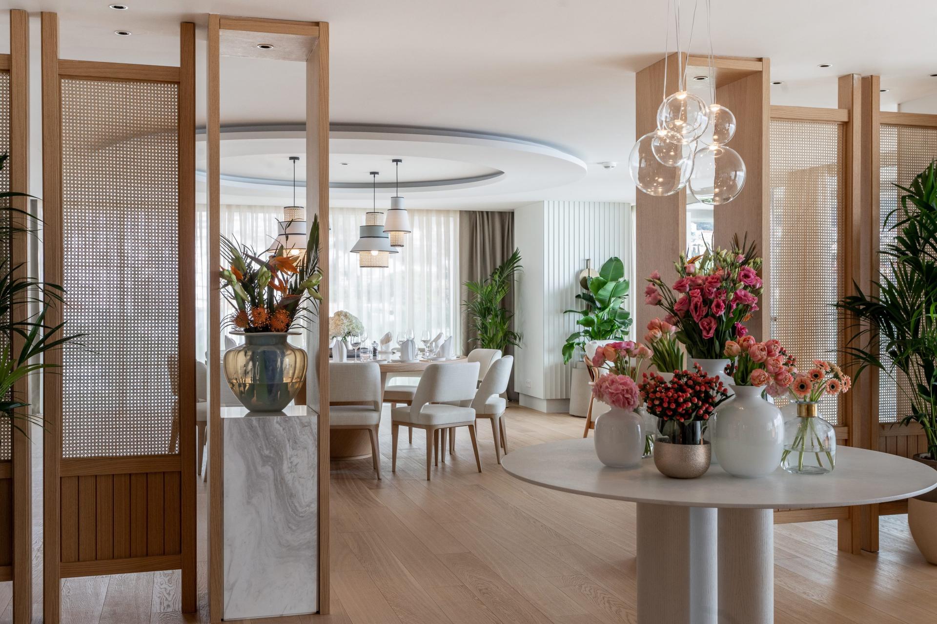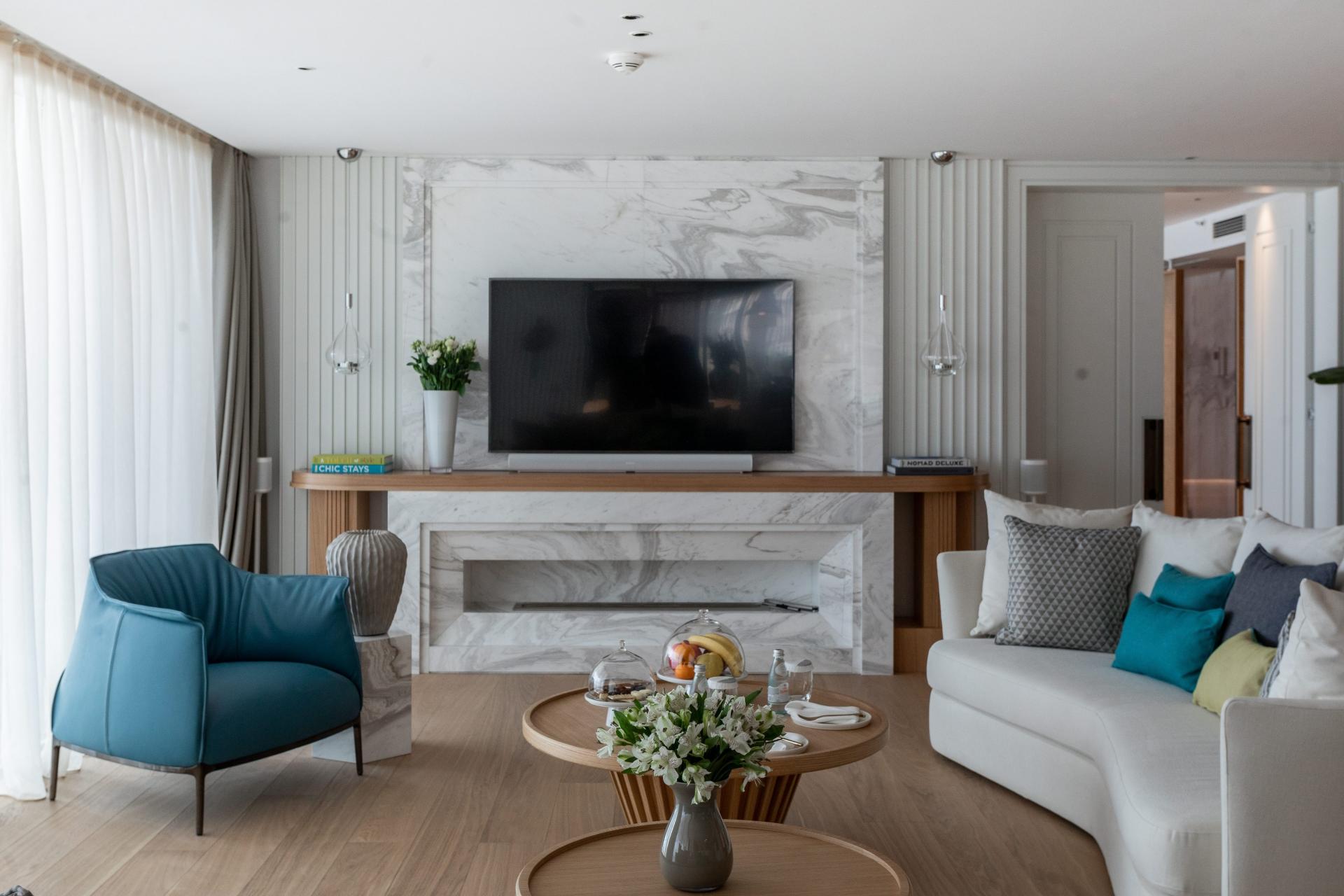Podovi apartmana su u mramoru i parketu, namještaj je luksuzan, ali s dozom mjere i elegancije. Shema boja poigrava se svijetlim i toplim bojama prirodnog okružja Dubrovnika. Prevladavaju nijanse svijetlih boja u bijeloj, bež, jadranskoplavoj, zlatnožutoj i zelenoj.