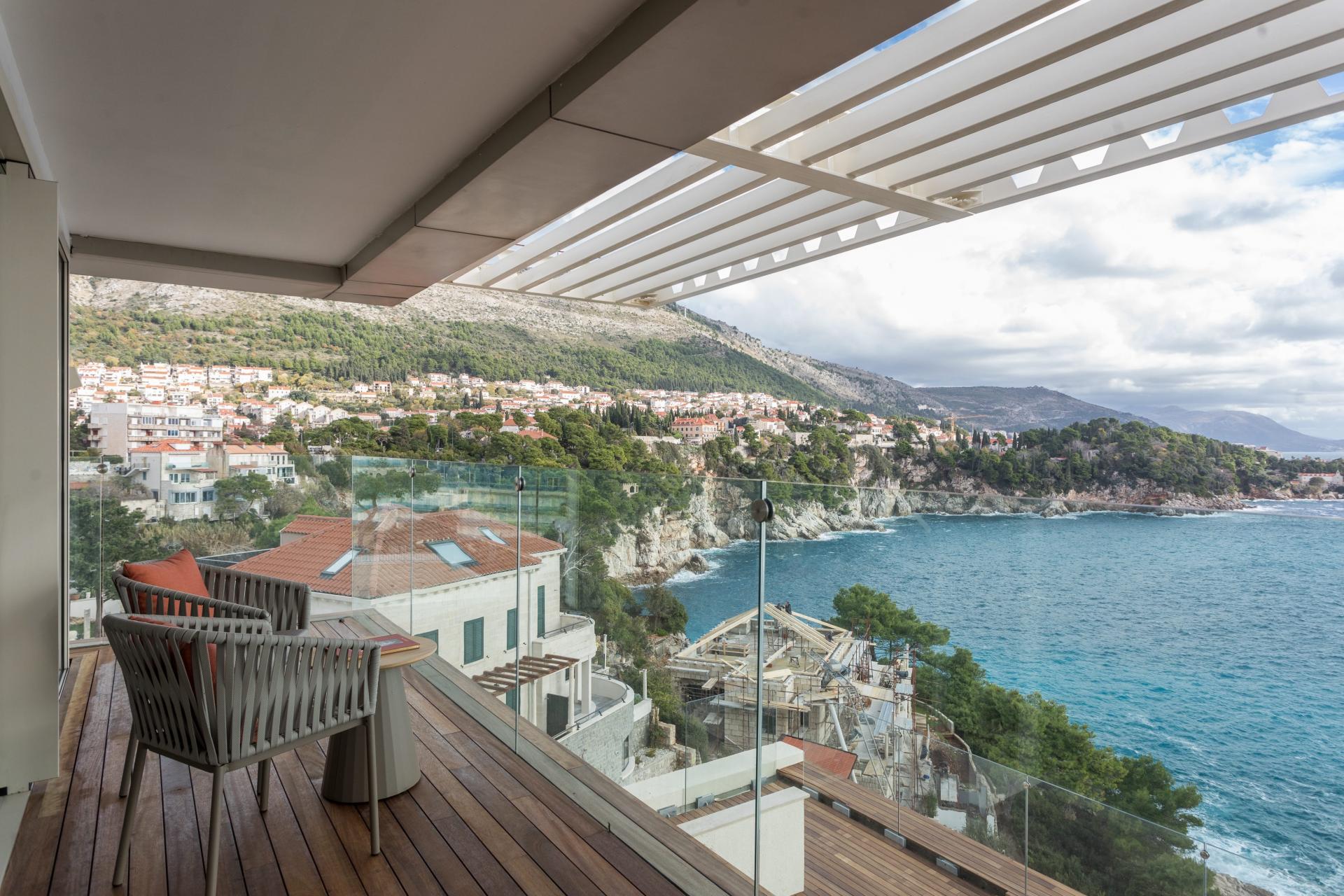 Apartman sadrži jednu spavaću sobu s king size krevetom i garderobom, dnevni boravak s kaminom, blagovaonicu, čajnu kuhinju, uredski prostor, kupaonicu s finskom saunom i prostrani balkon s pogledom na Jadransko more. Upravo vizure iz apartmana jedan su od njegovih najvećih aduta.