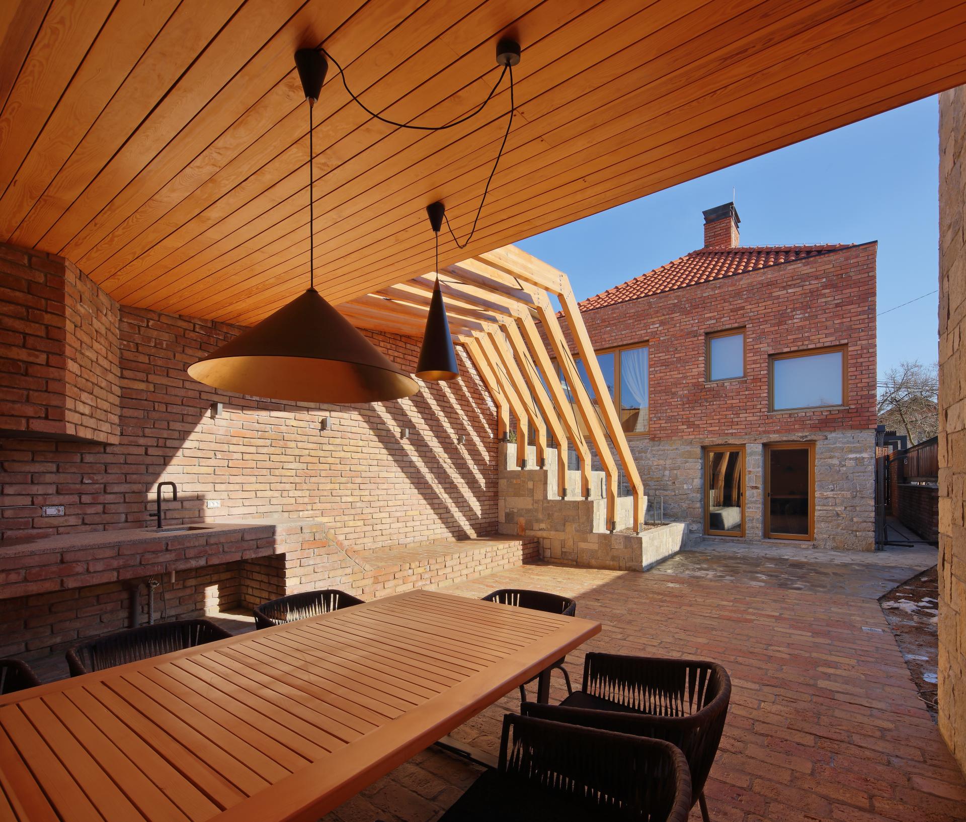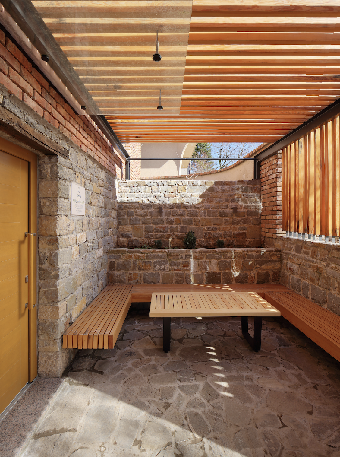 - Stare, a opet nove, prvobitna ideja, rekonstrukcija stare, male obiteljske kuće, sagledavanjem stanja i analizom, otišla je u sasvim nekom drugom smjeru. Ispostavilo se da je kuća u takvom stanju da se objekt mora srušiti i na njegovu mjestu napraviti novi - nadovezuju se arhitekti iz dobro poznatog bosanskog studija Entasis, koji su bili zaduženi za rekonstrukciju, i nastavljaju: - Počinjemo analizom stare bosanske kuće i njezinih osnovnih načela od bogumila pa nadalje. Jedna prostorija, centralno ognjište, dimaluk, četverovodni krov. Zajedno s razvijanjem rješenja, paralelno se objekt rušio te se u tom procesu otkrilo da postojeća magaza, odnosno spremište može biti zadržano, jer se ispod žbuke otkrio vrlo zdrav kamen. Sva opeka iz zidova, zvana još austrougarska opeka, sačuvana je, ali na novom objektu ona je dobila ulogu omotača fasade. Sačuvane su i stare grede, hrastove, i ispuna između greda, kao i nadprozornici i nadvratnici. Tipološki, kuća ostaje u istim dimenzijama, a po uzoru na tradicionalnu bosansku kuću, dobiva 'mušku' - prednju avliju i 'žensku' - zadnju avliju. Muška avlija je javna, s prednje strane kuće. Ženska je intimna, privatna, relaksirajuća, s vodom i cvjetnim mirisom - opisuje glavna i odgovorna arhitektica Vedina Babahmetović.