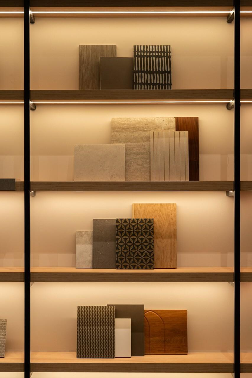 Prostor predstavlja pažljivo kurirane talijanske brendove: BLUINTERNI (vrata), CP PARQUET (parketi), KRONOS CERAMICHE (keramika), FLAMINIA i FANTINI (sanitarije i armature), kao i selekciju komada izrađenih od keramičkih materijala. Fokus je na iskustvu, taktilnosti i realnom doživljaju materijala koji pomažu u donošenju odluka kod uređenja interijera.
