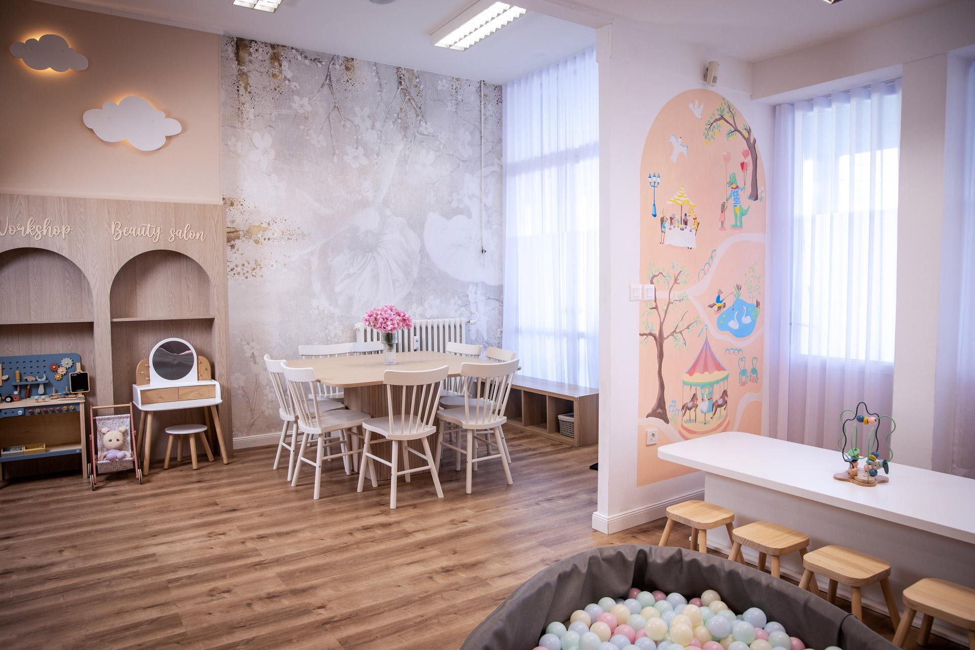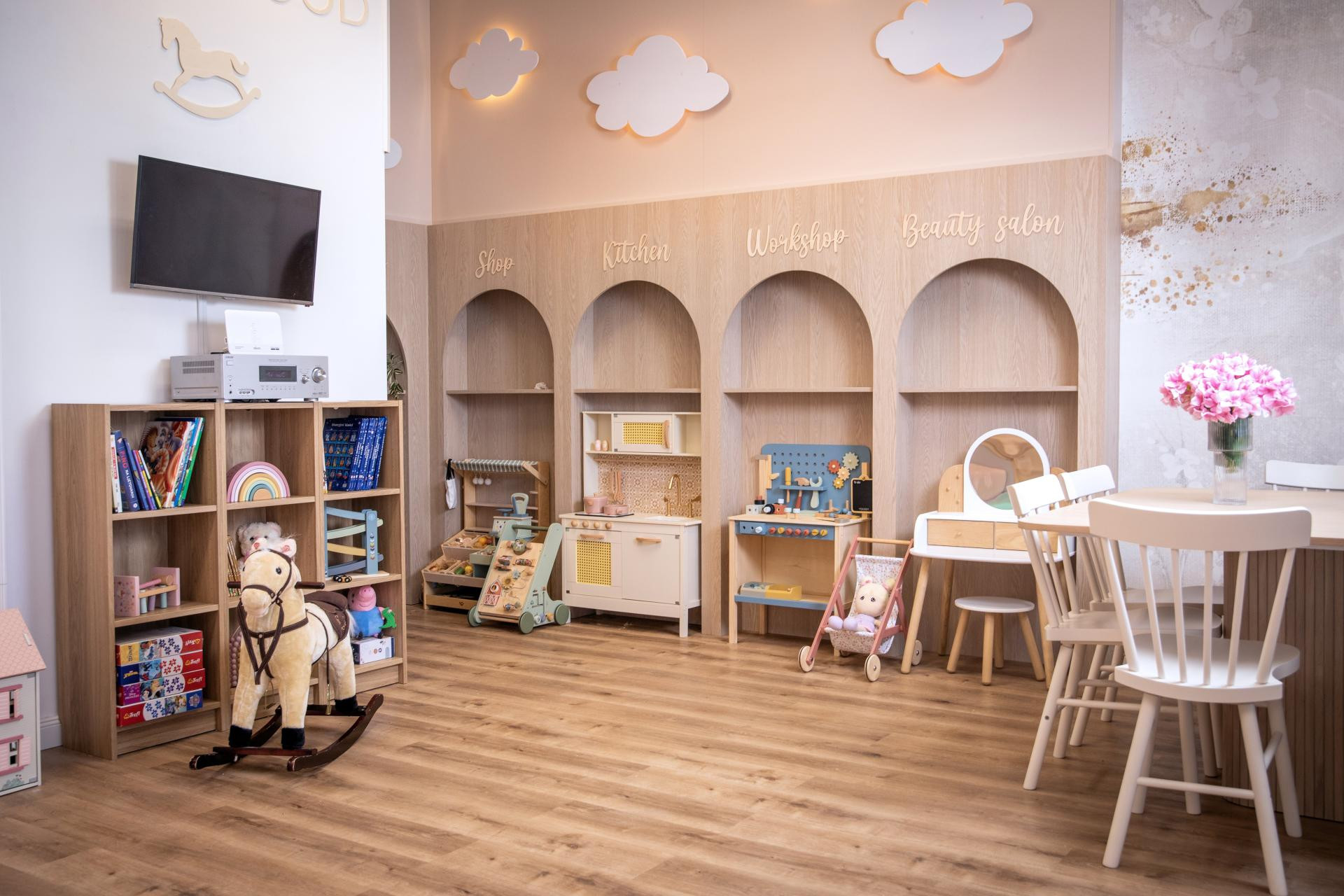 I upravo su to postigle jer se uređenje rođendaonice Rosewood može opisati kao spoj topline, funkcionalnosti i bajkovitih te pamtljivih detalja. Nježne pastelne nijanse, prirodni materijali i pažljivo odabrane dekoracije stvaraju ugođaj koji smiruje, ali istovremeno potiče igru i maštu.